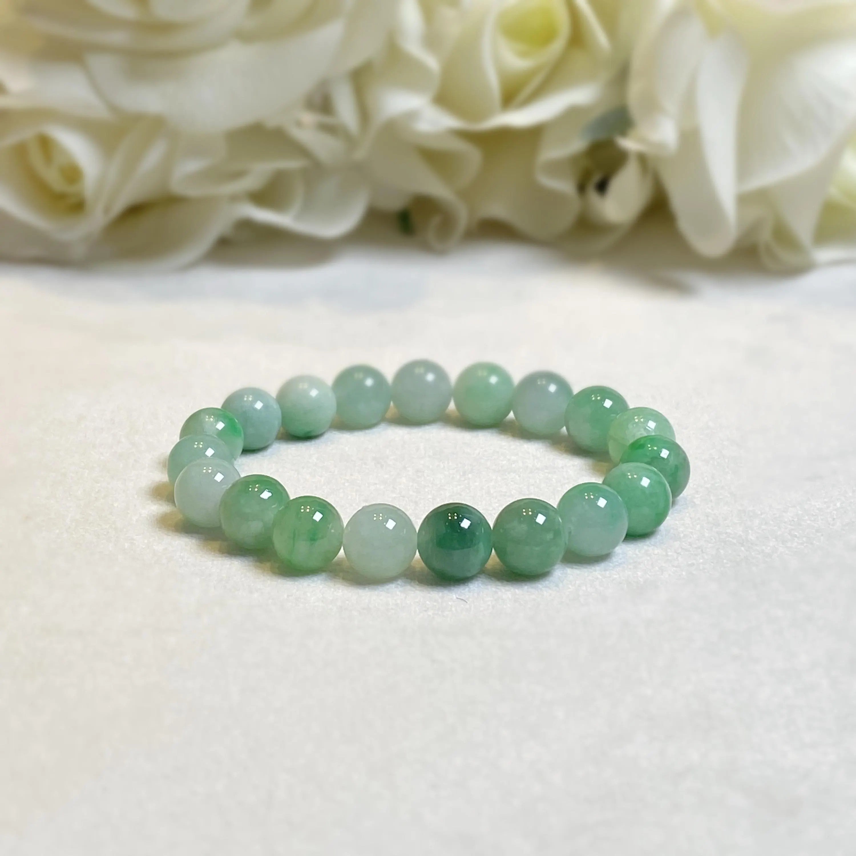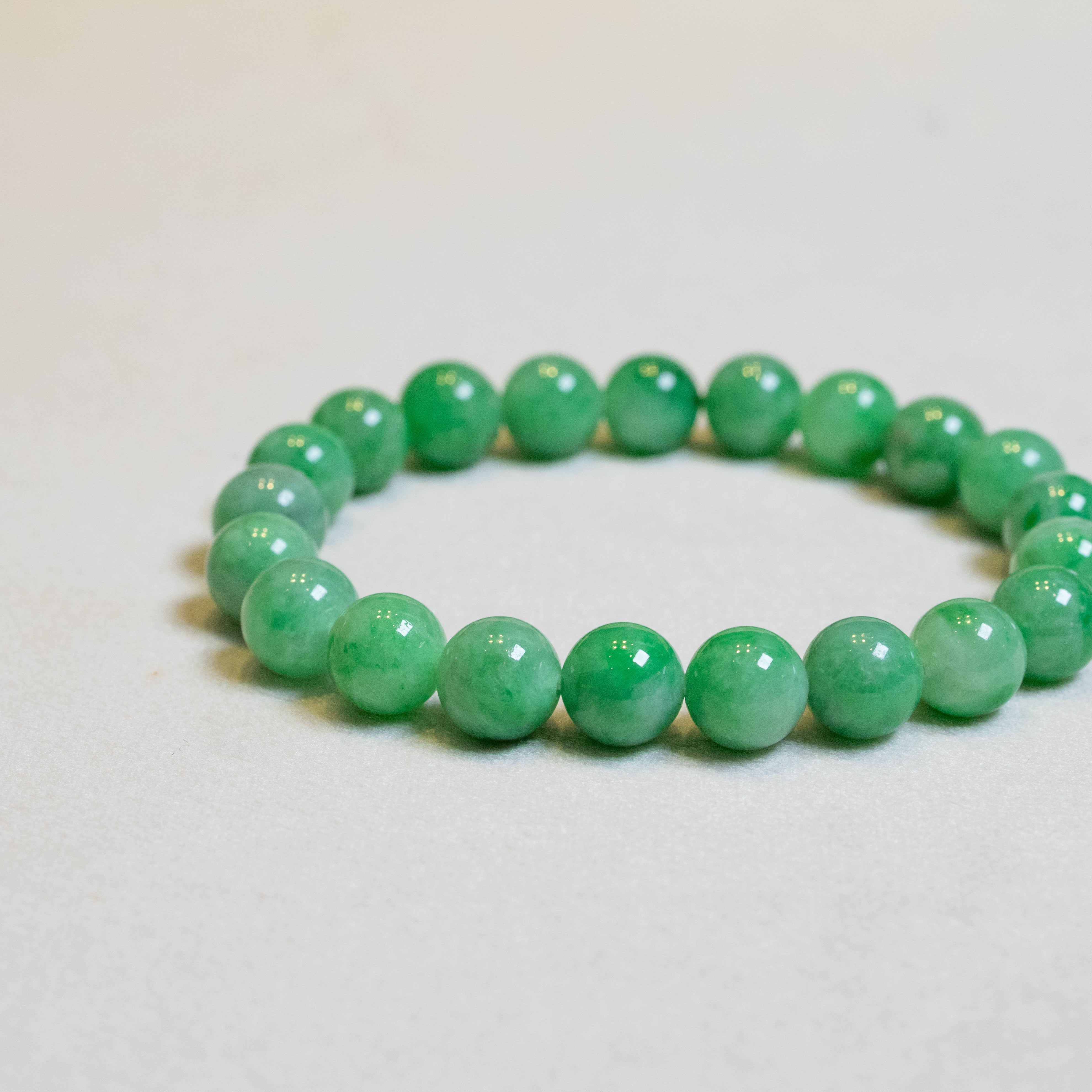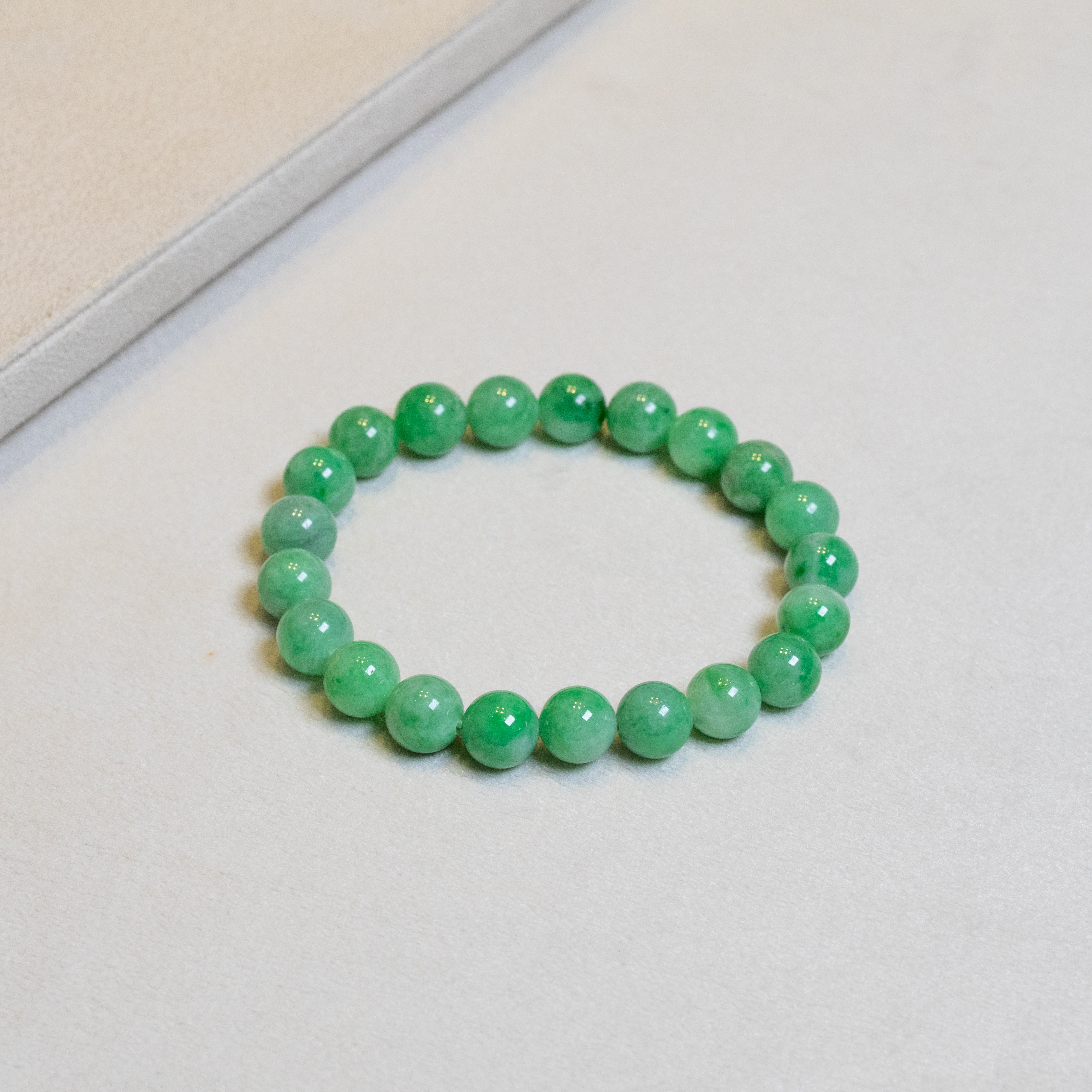 Imperial Green Jade Bead Bracelet – Natural Burmese Jadeite