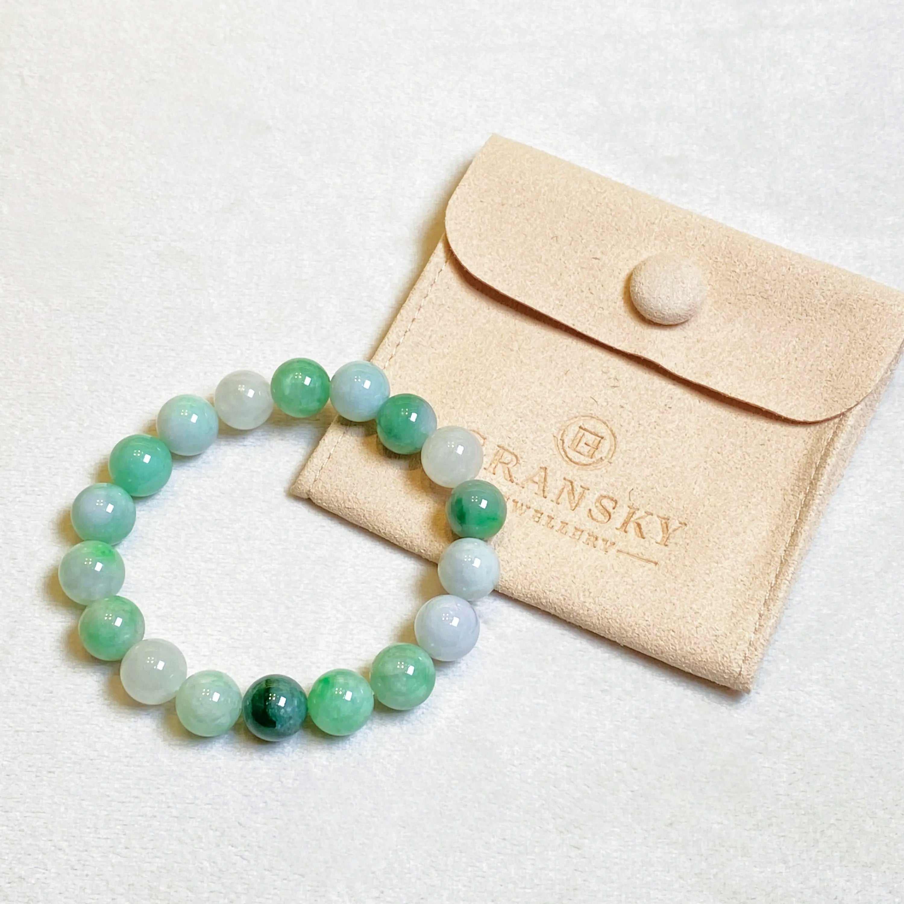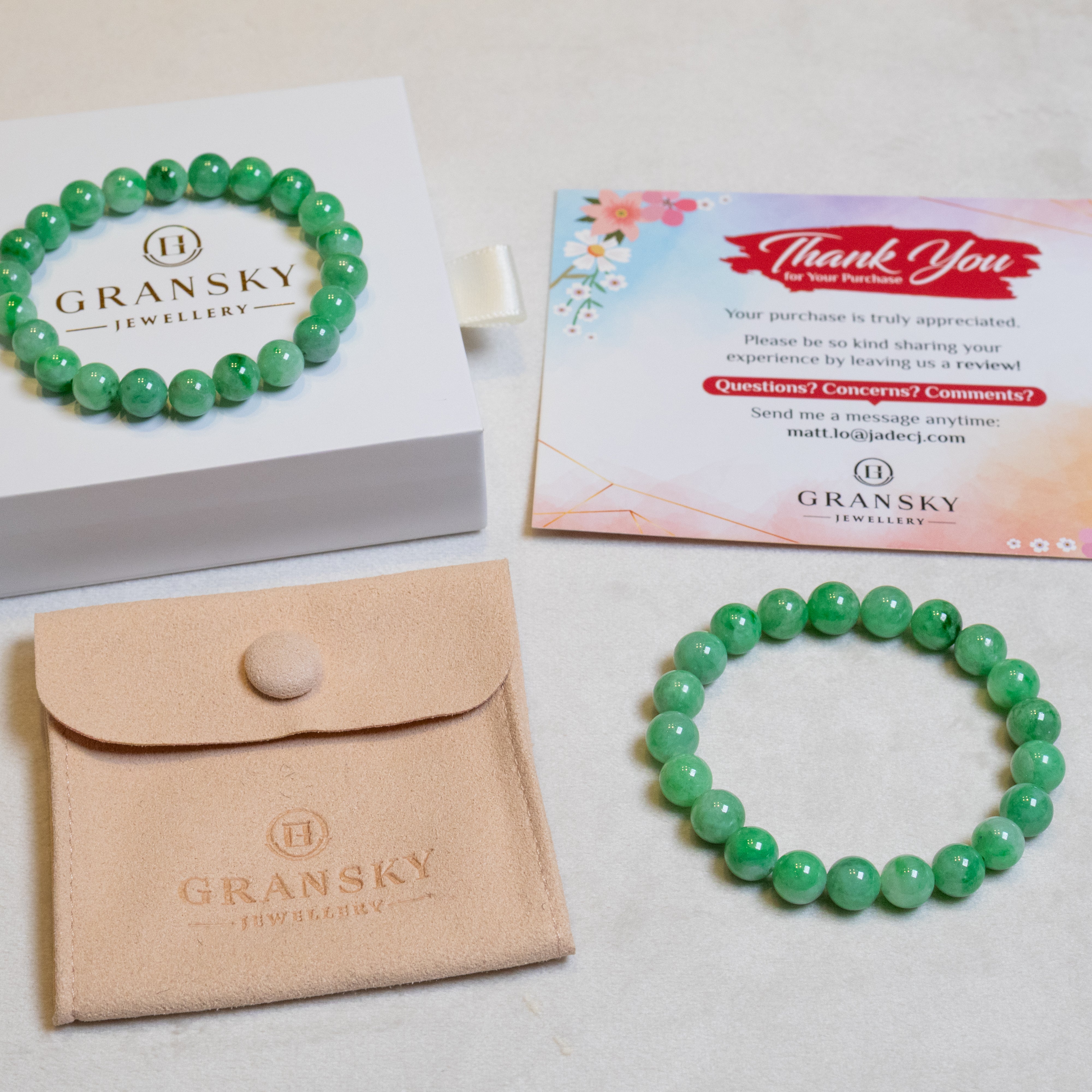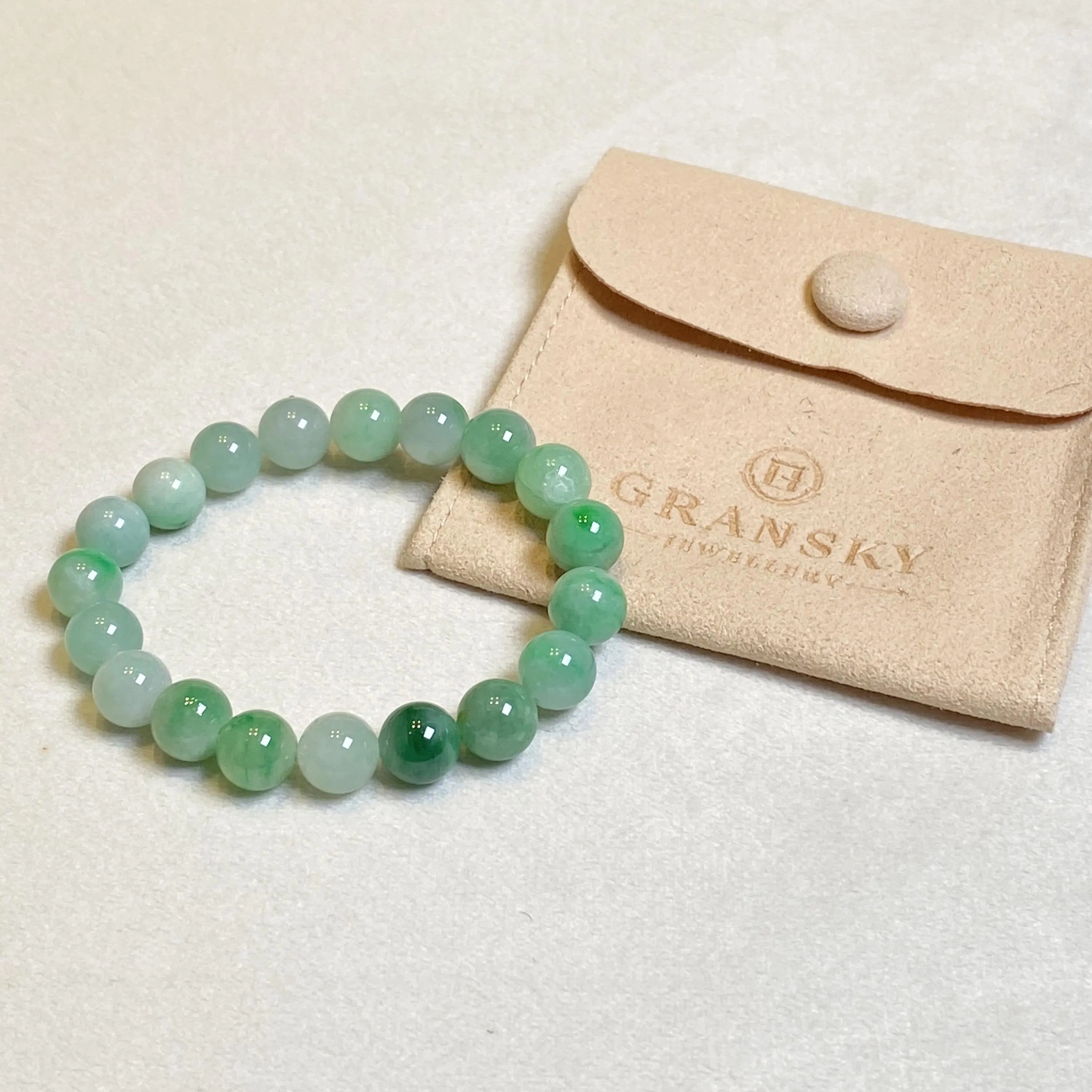 Imperial Green Jade Bead Bracelet – Natural Burmese Jadeite