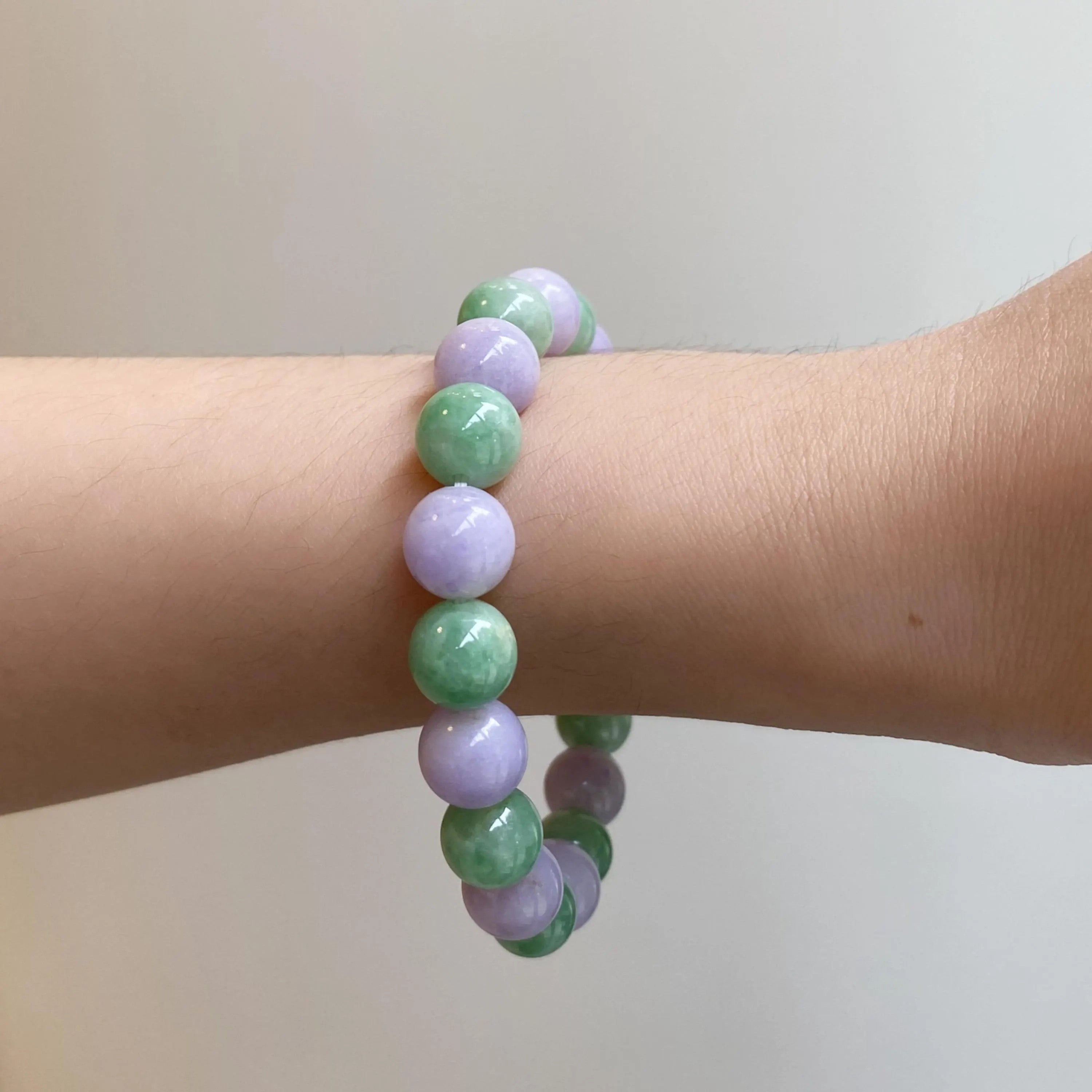 Jade Beads Bracelet, Purple and Green Jadeite Beaded Bracelet, 12mm Beaded Jade, Type A Jadeite