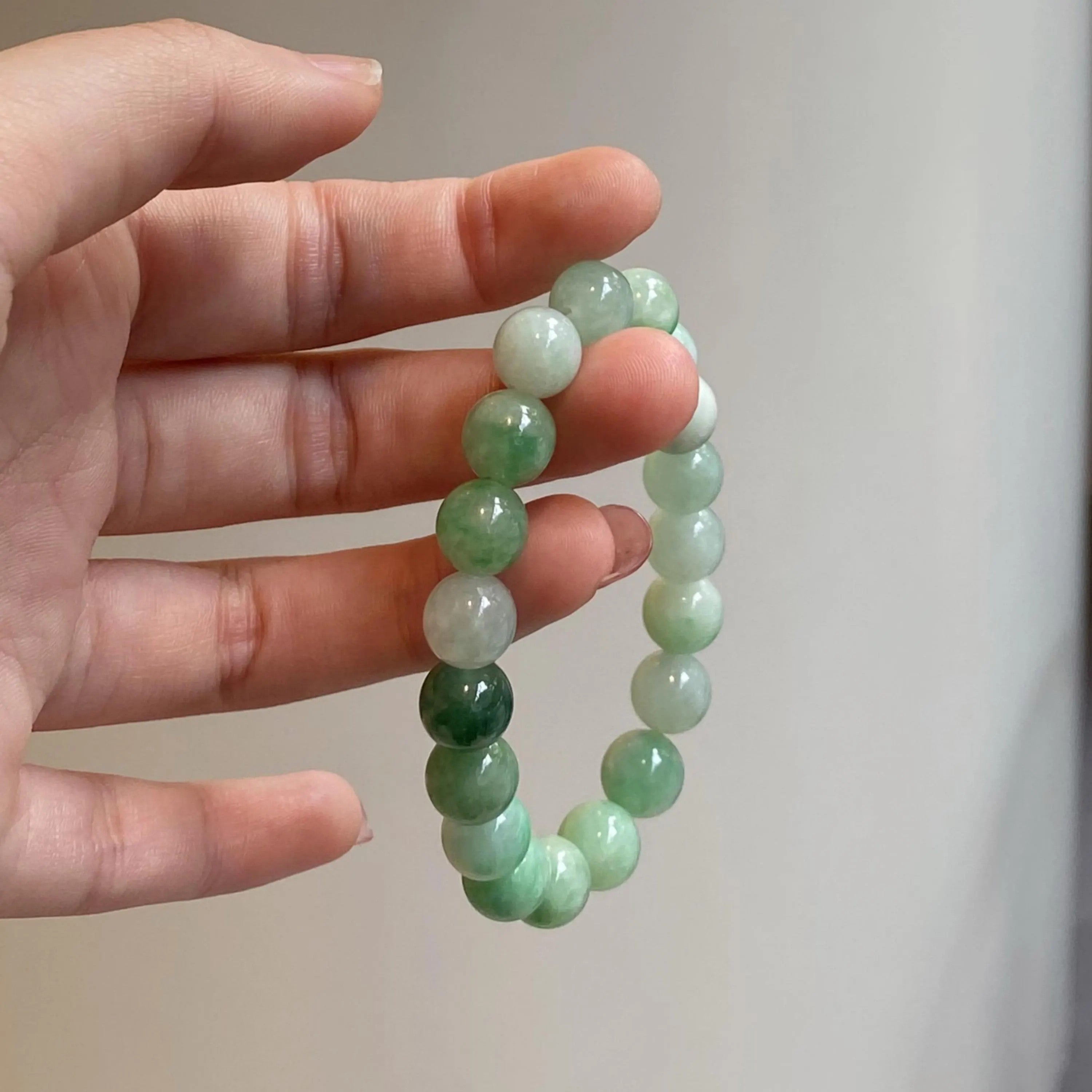 Green and White Jade Beaded Bracelet Natural Type A Burmese Jade