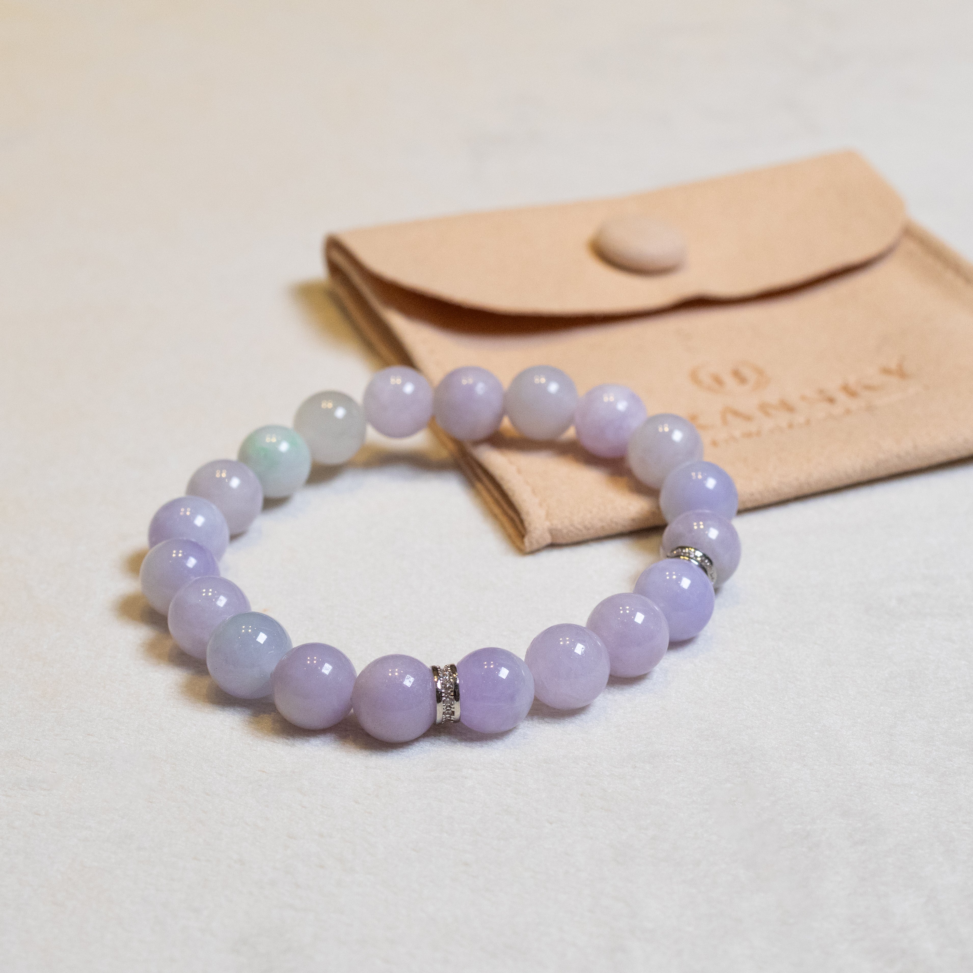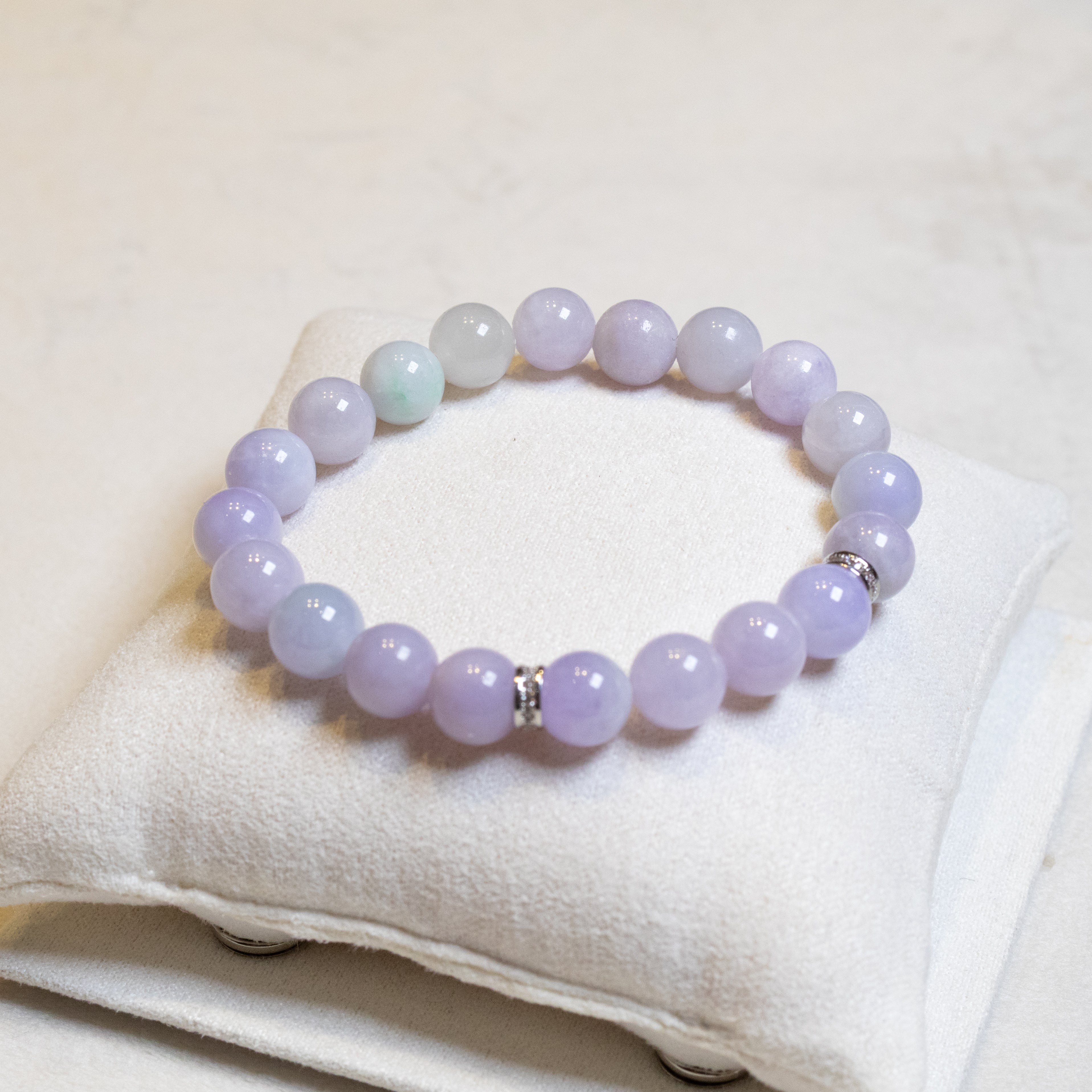 Lavender Jade Beaded Bracelet 18mm – Natural Type-A Burmese Jadeite