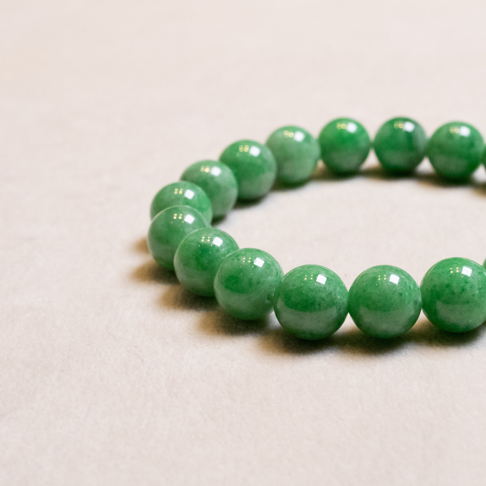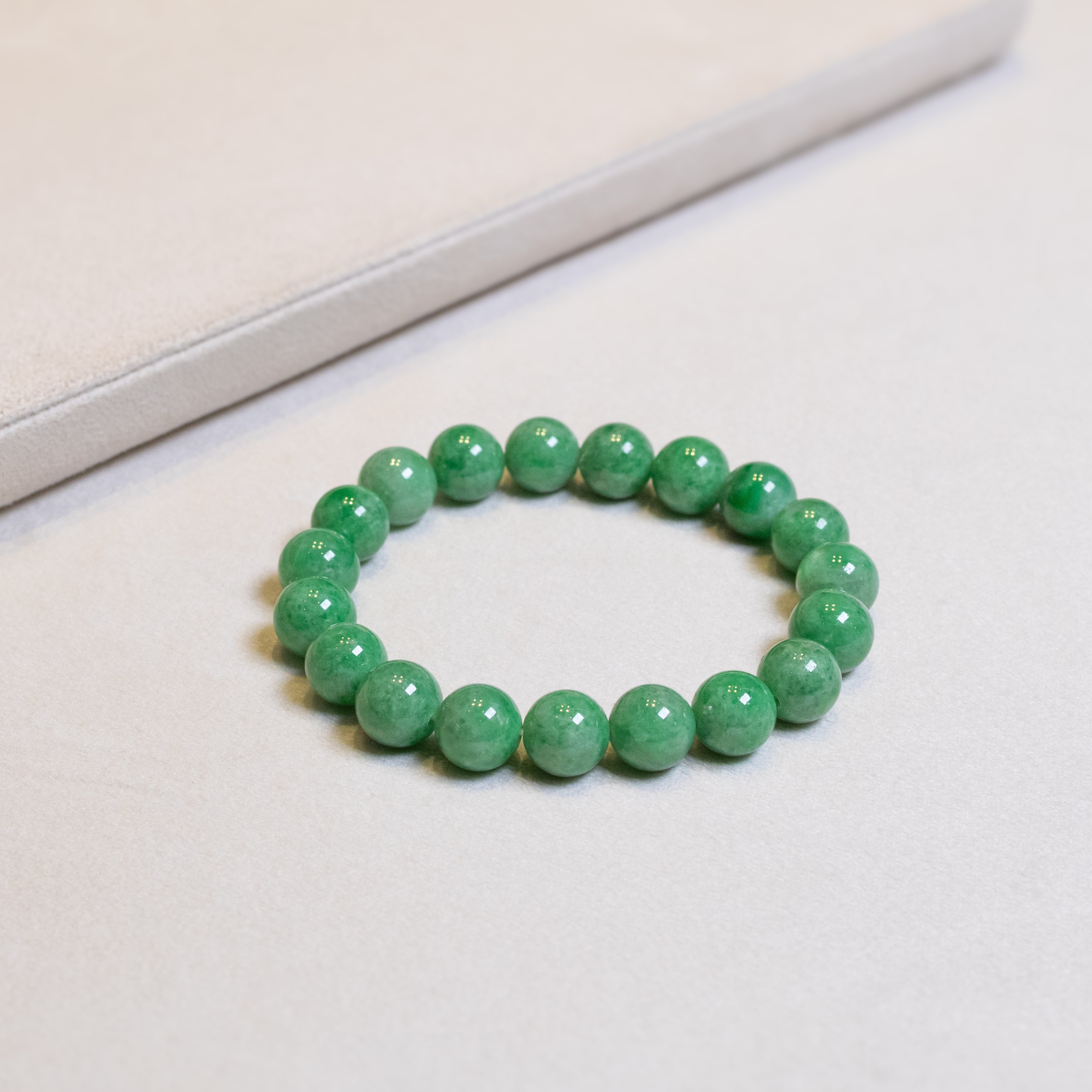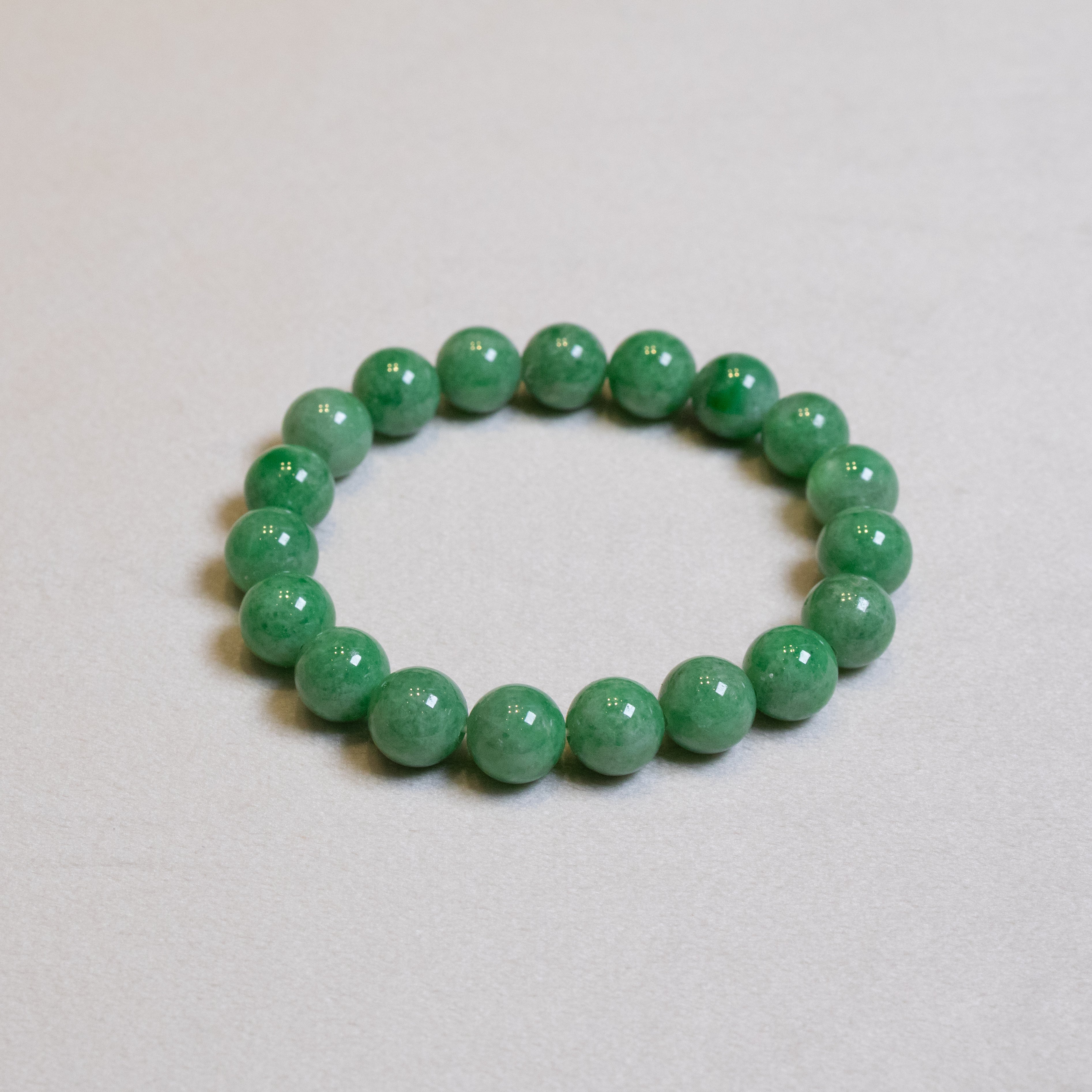 ✅Our Classic Intense Green Jade Beaded Bracelets, crafted from premium Type A natural Burmese jadeite, offer a stunning addition to your everyday style. Three distinct styles, each with a unique intensity and hue of vibrant green, showcase uniformly sized 9.5mm gemstone beads for a refined, elegant look. Two bracelets measure 18cm in length with both featuring a stretchy elastic band for easy wear and lasting comfort. These charm bracelets, perfect as standalone pieces or paired with our matching jadeite collections, combine timeless beauty with modern versatility. Your ideal green jade bracelet awaits to enhance your collection!