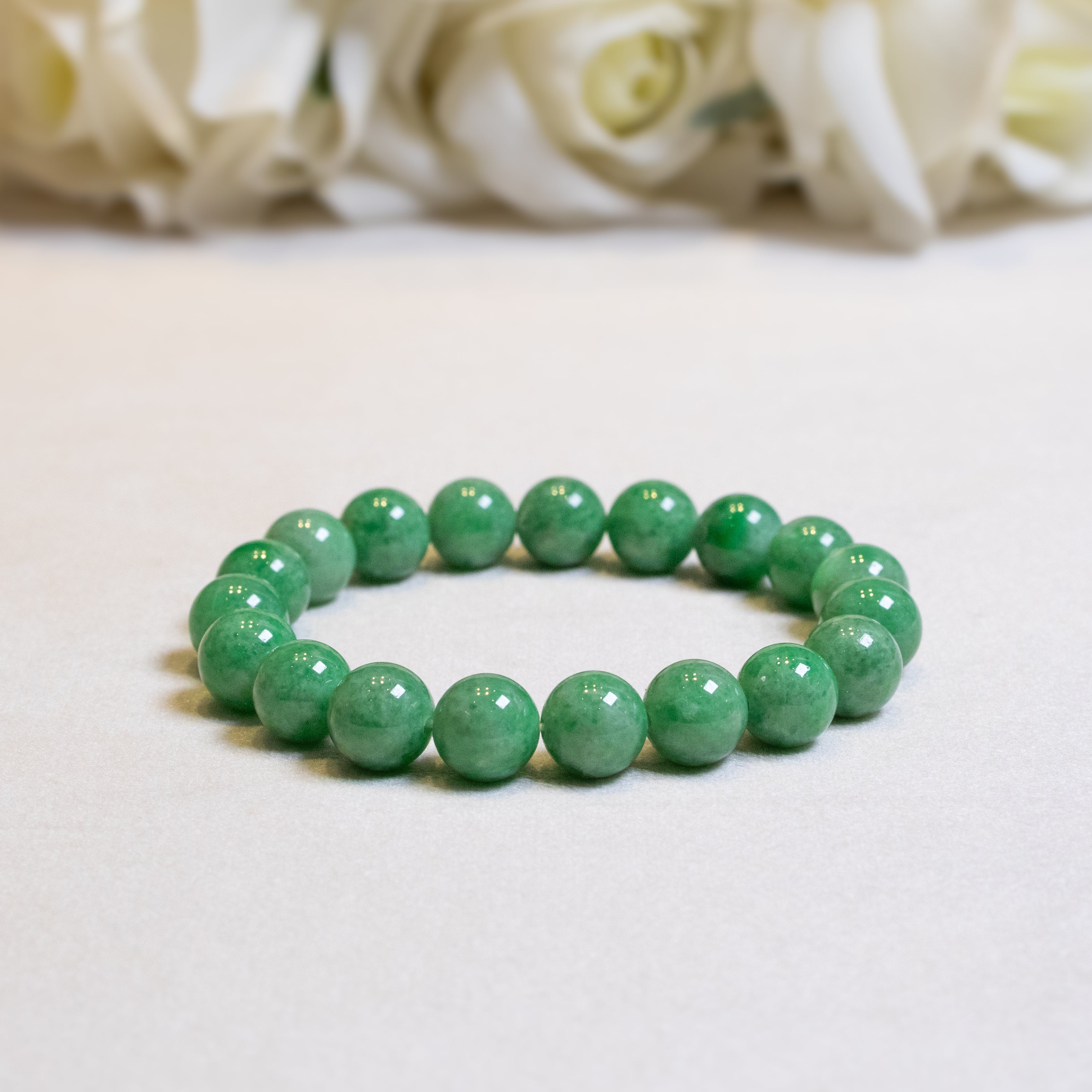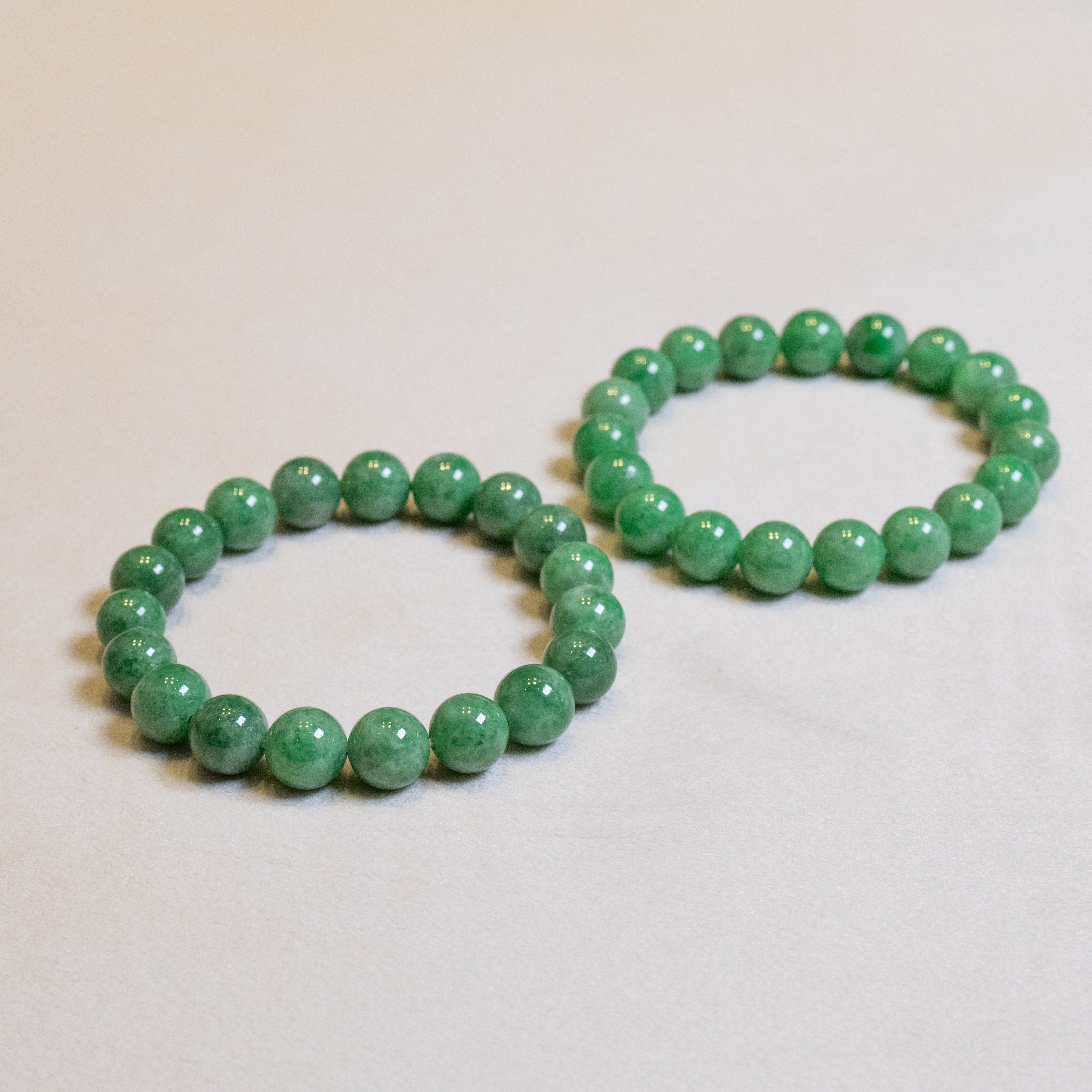 Classic Intense Green Jade Beaded Bracelets - Natural Type A Burmese Jadeite 18cm