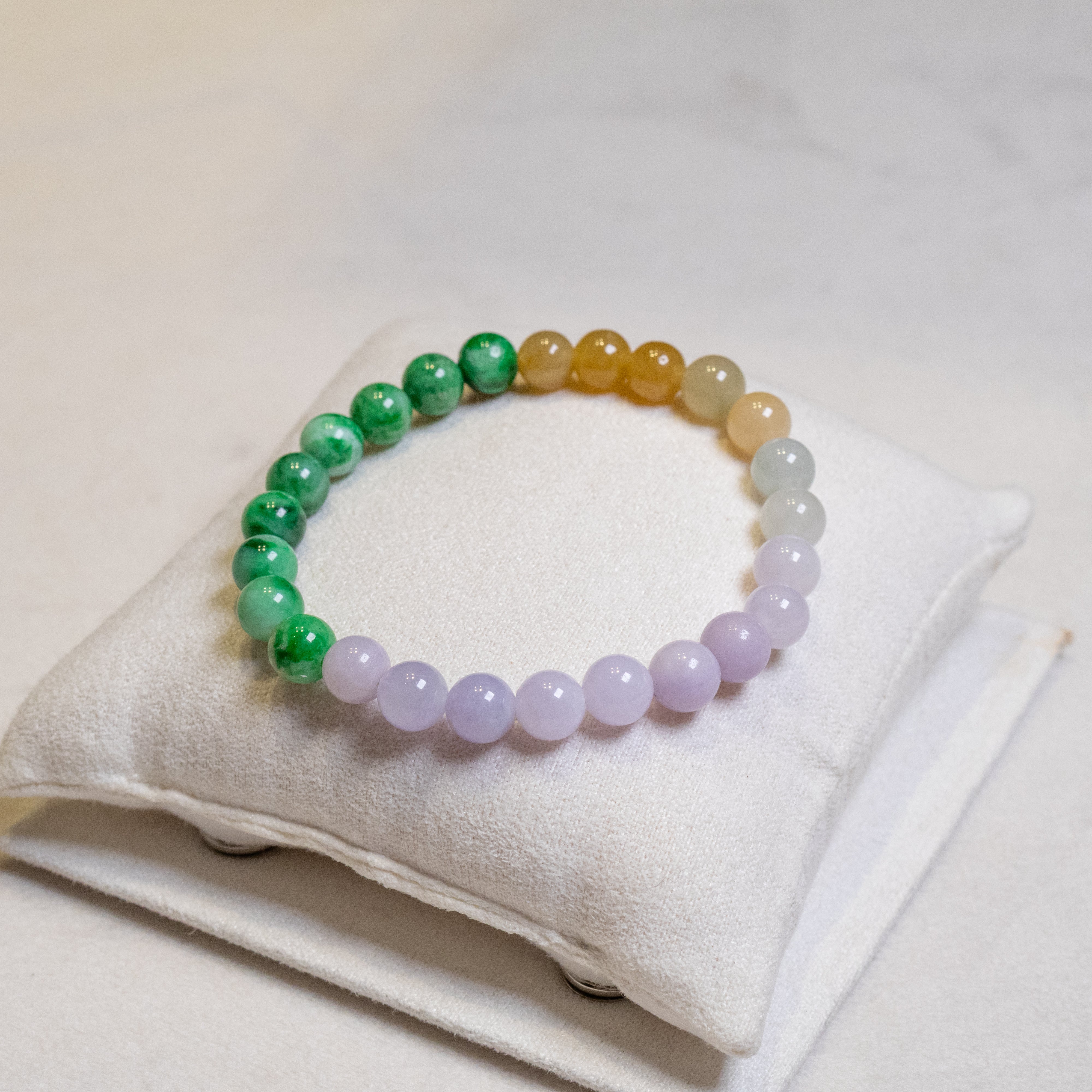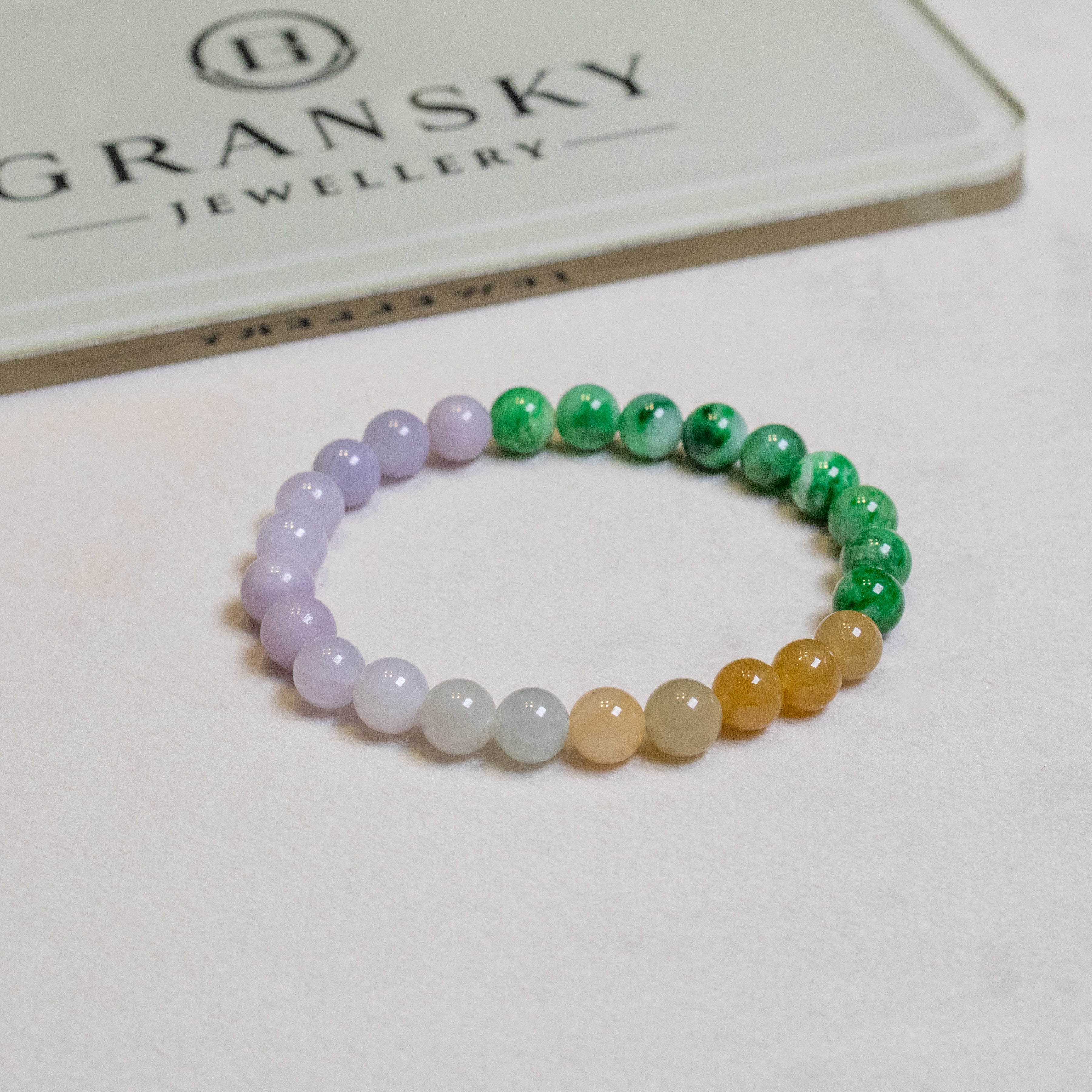 Multi-Color Jade Beaded Bracelet 17.5cm – Natural Type A Burmese Jadeite