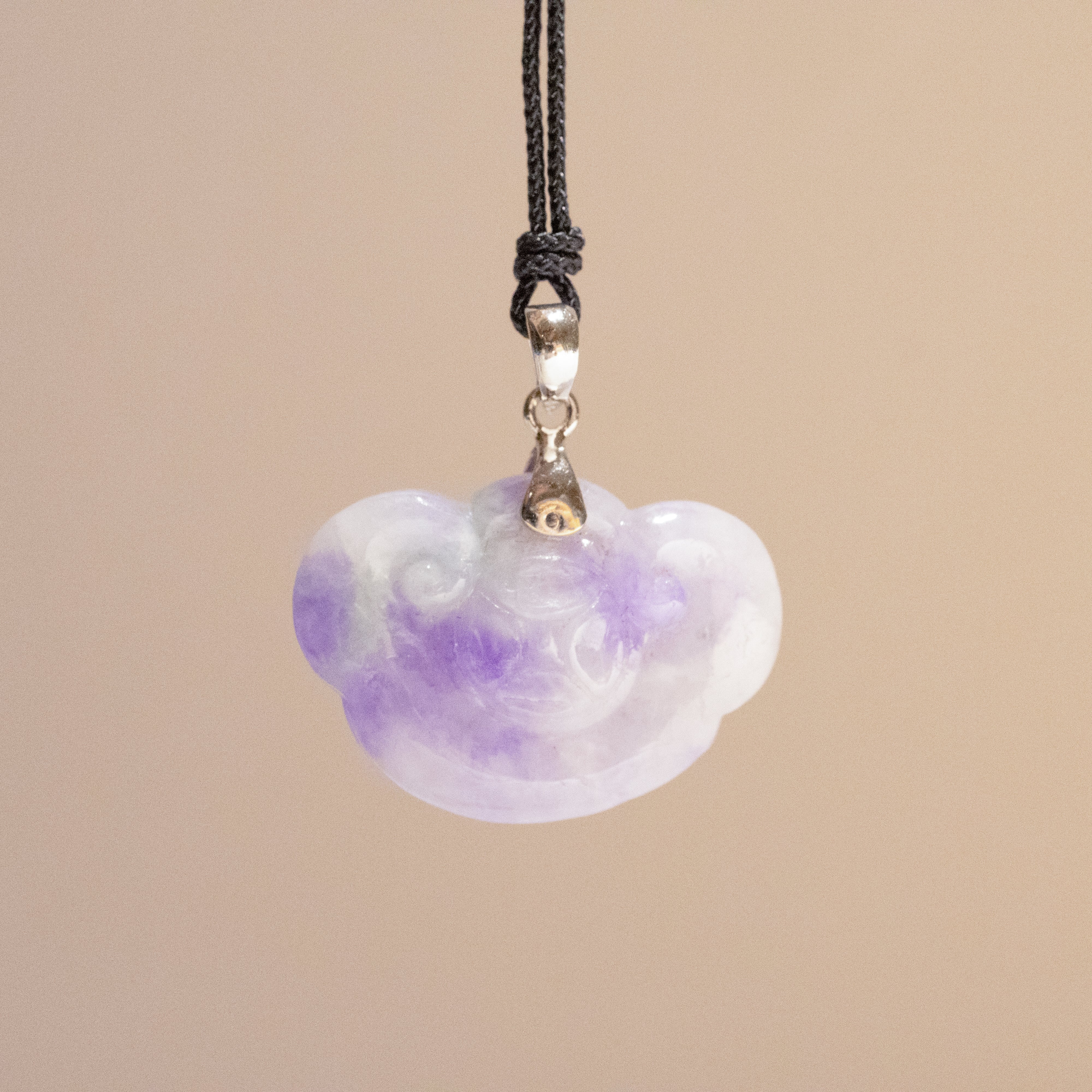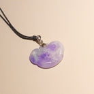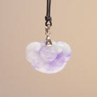 Handmade Carved Burmese Purple Ruyi Jade Pendant 18k Gold Bail