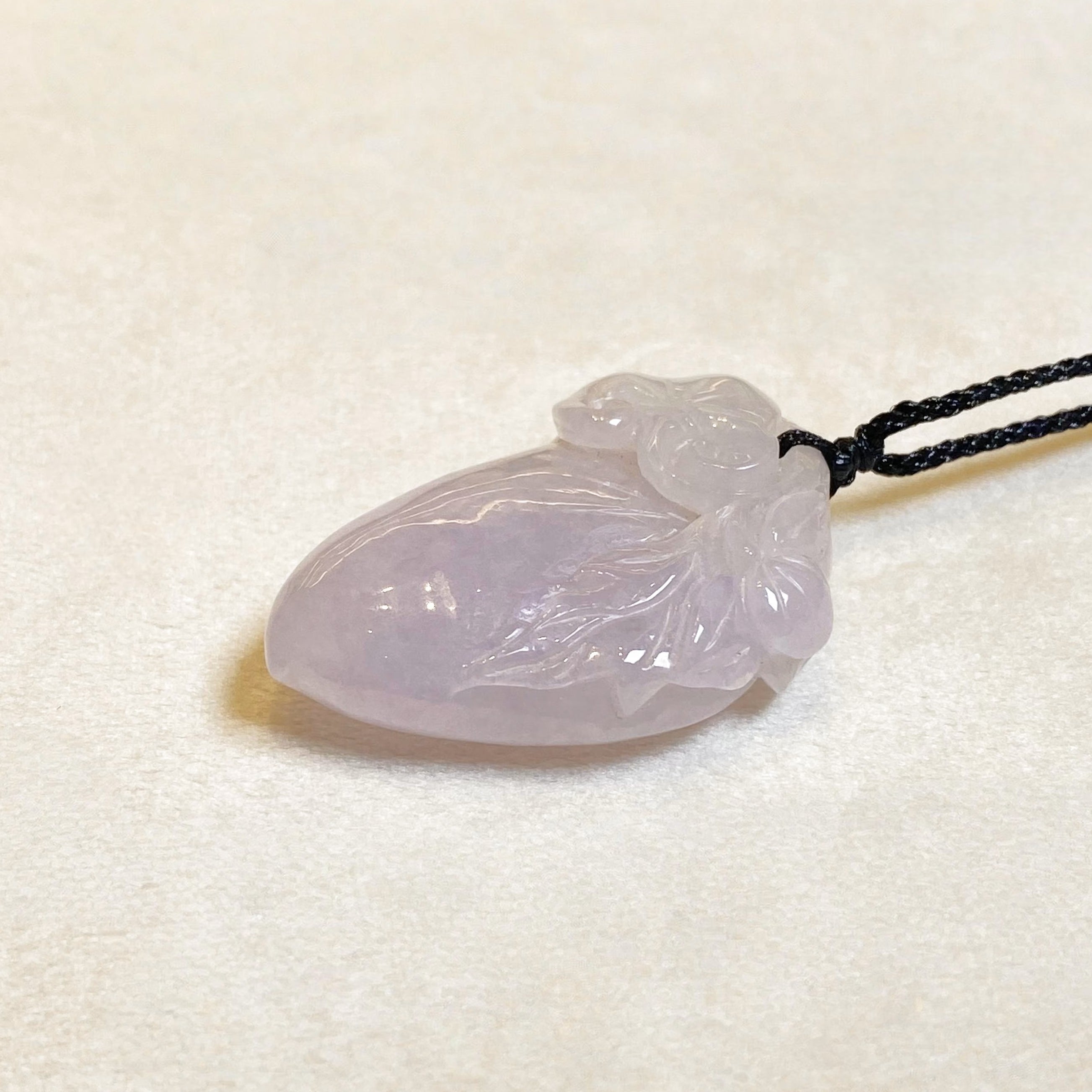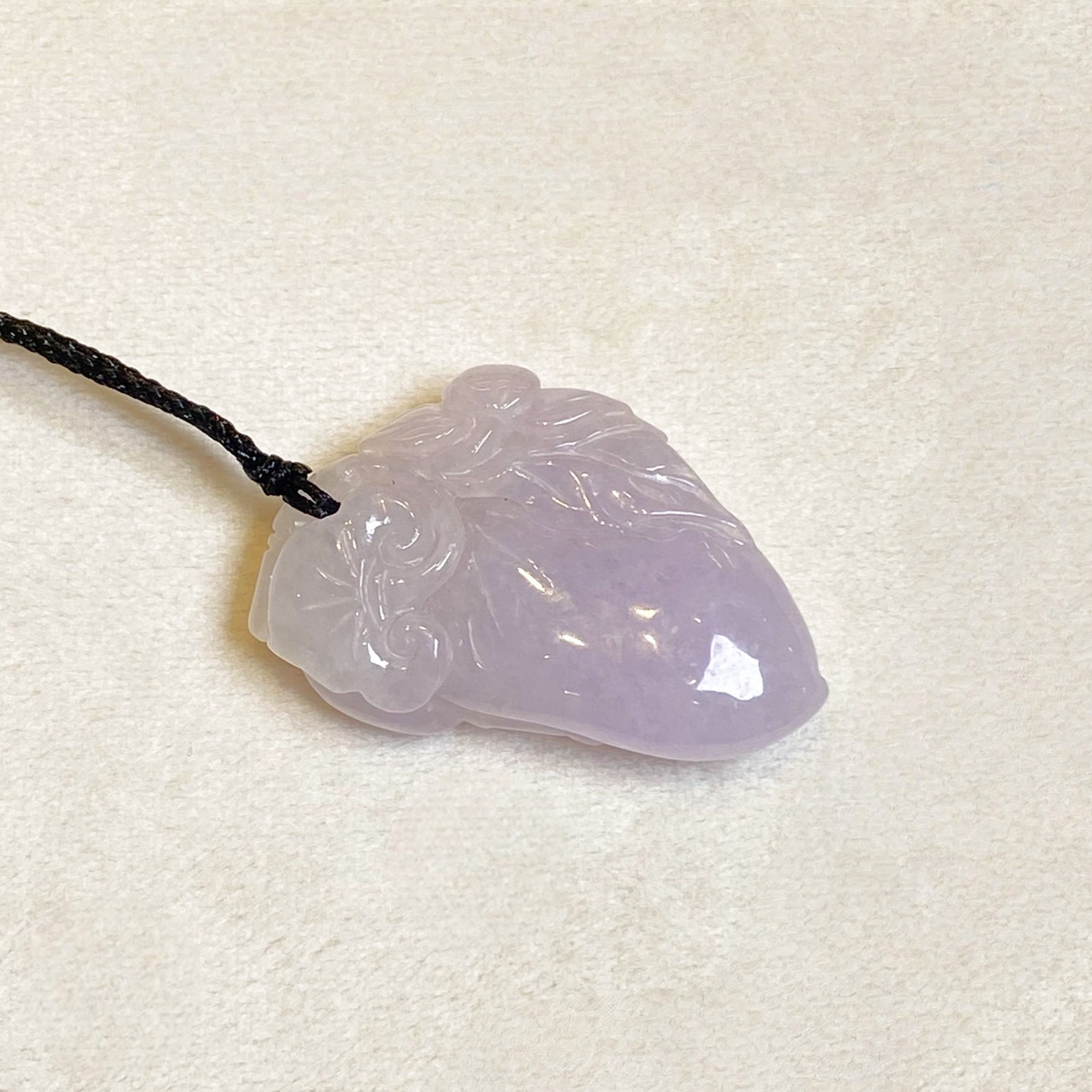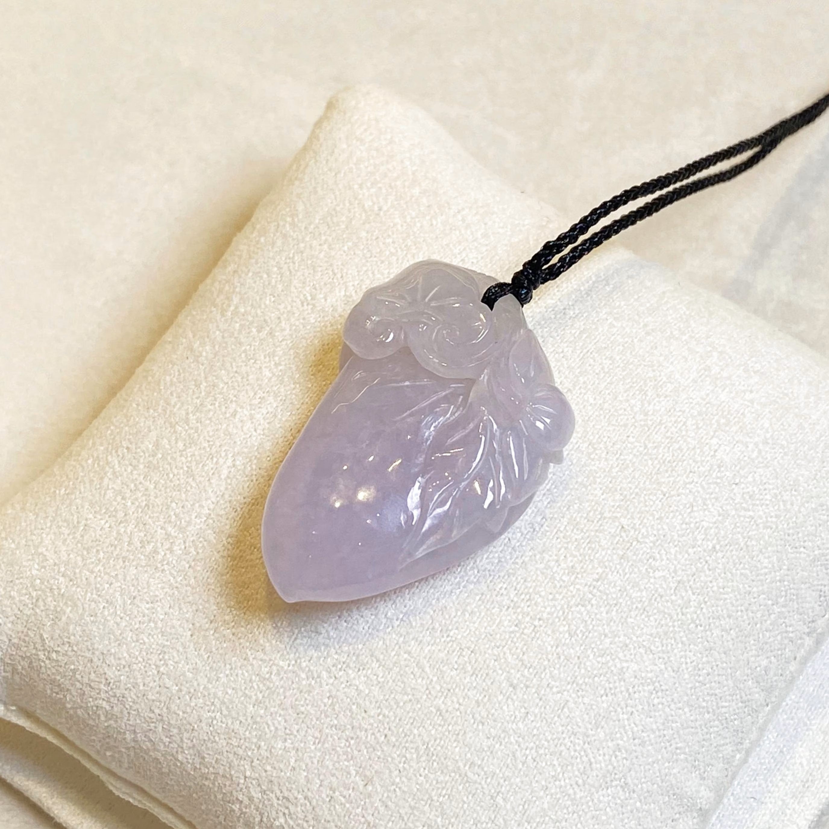 Purple Peach Carved Jadeite Pendant Necklace - Natural Type-A Jade