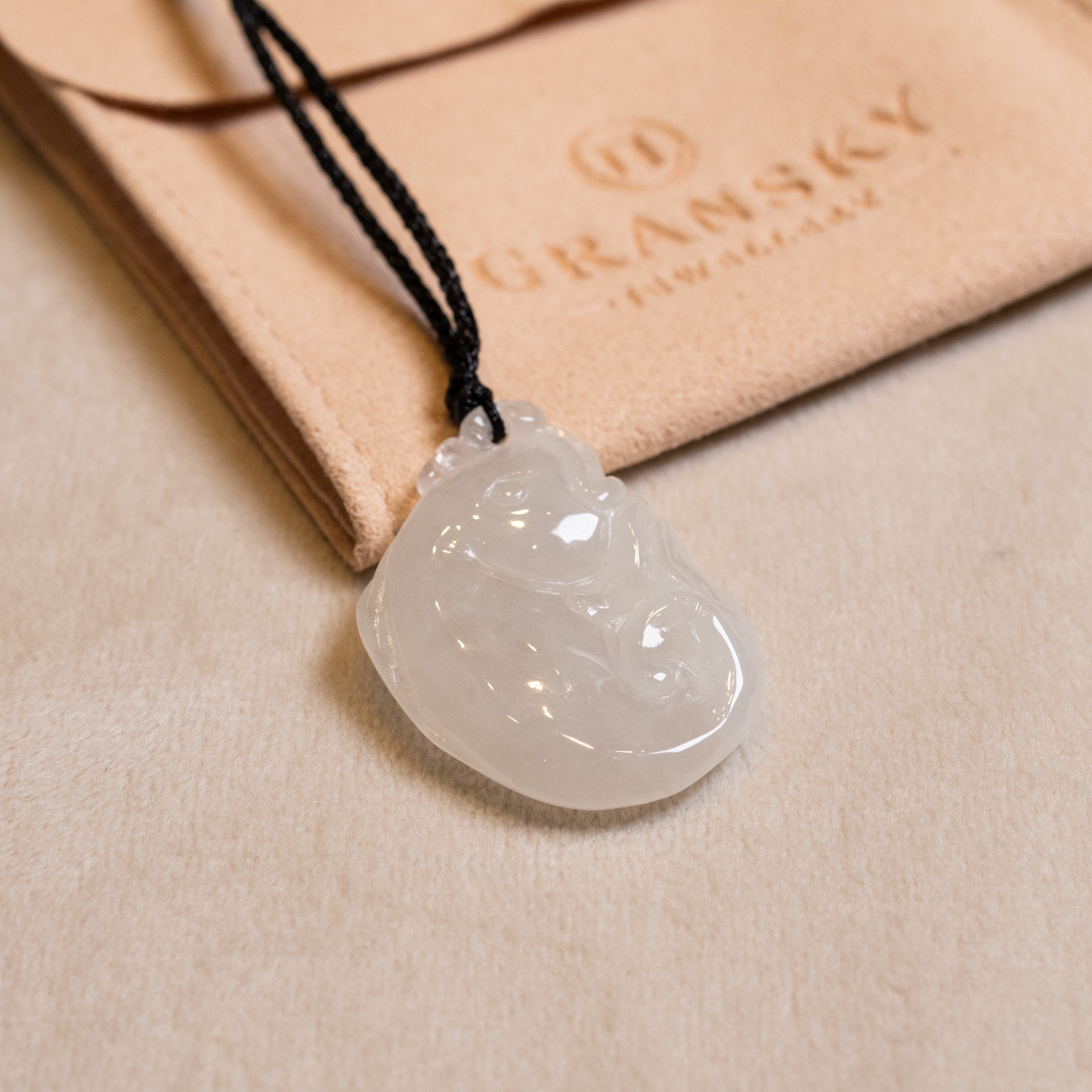 Ruyi White Jade Pendant Necklace – Natural Burmese Jadeite