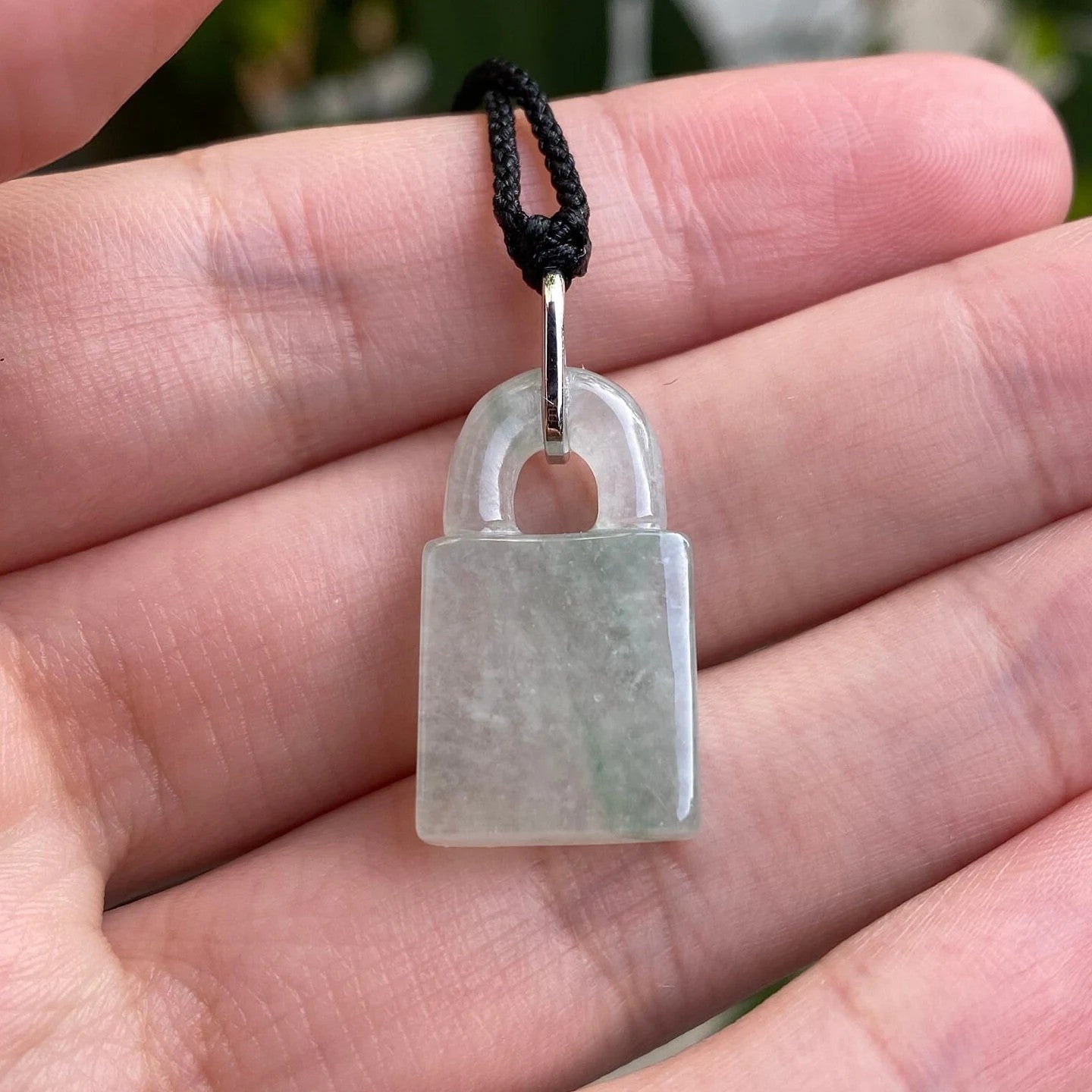 ✅ This handcrafted jade charm pendant necklace features a lock design carved from natural Type-A Burma jadeite. Its bluish-white ocean blue color is evenly distributed across the gemstone, set in an 18k white gold bail. With a delicate size of 24.3mm wide, 29.1mm high (including bail), and 5mm thick, it blends luxury and tradition. Perfect for daily wear or gifting, this serene ocean-blue jade pendant elevates any collection with its artisanal elegance.