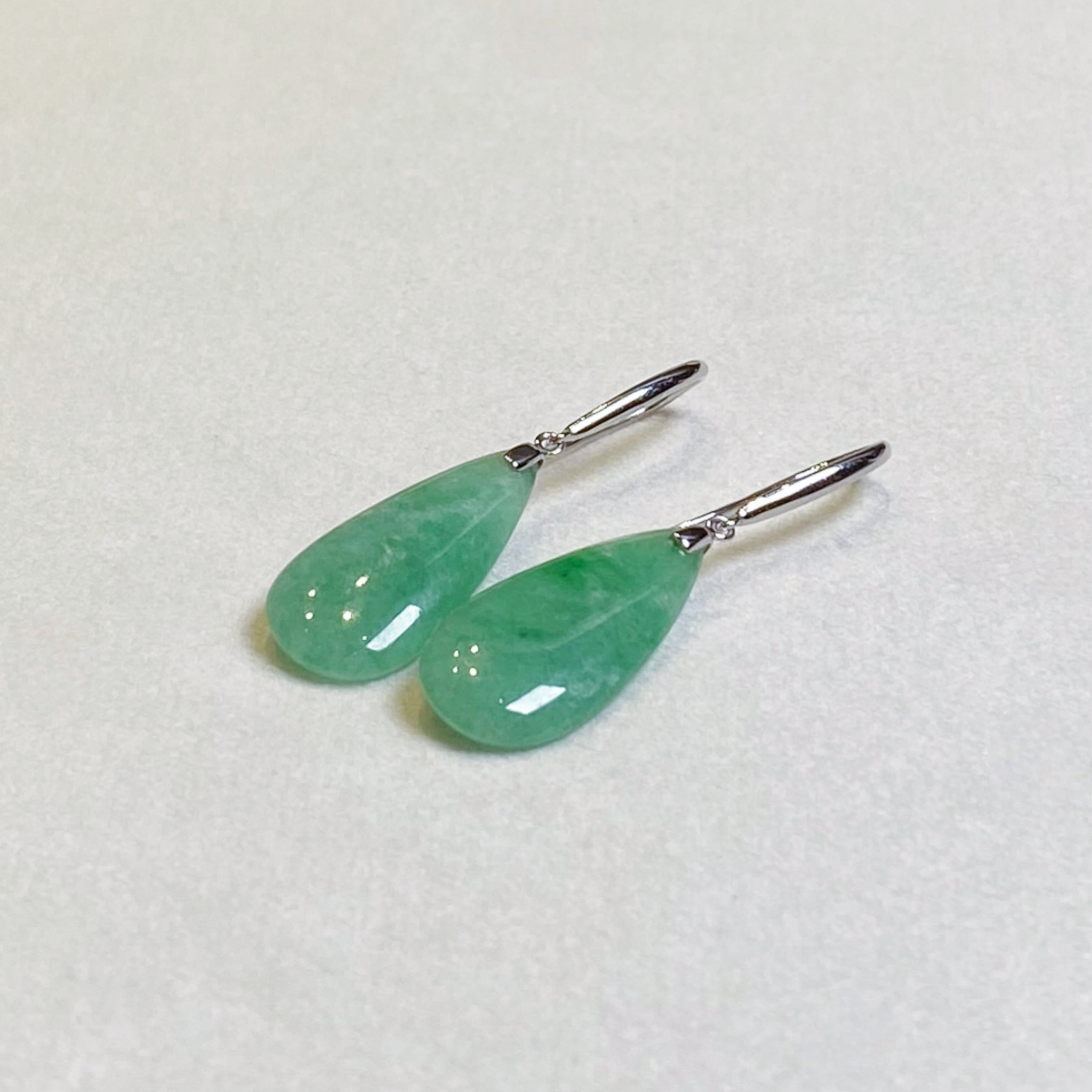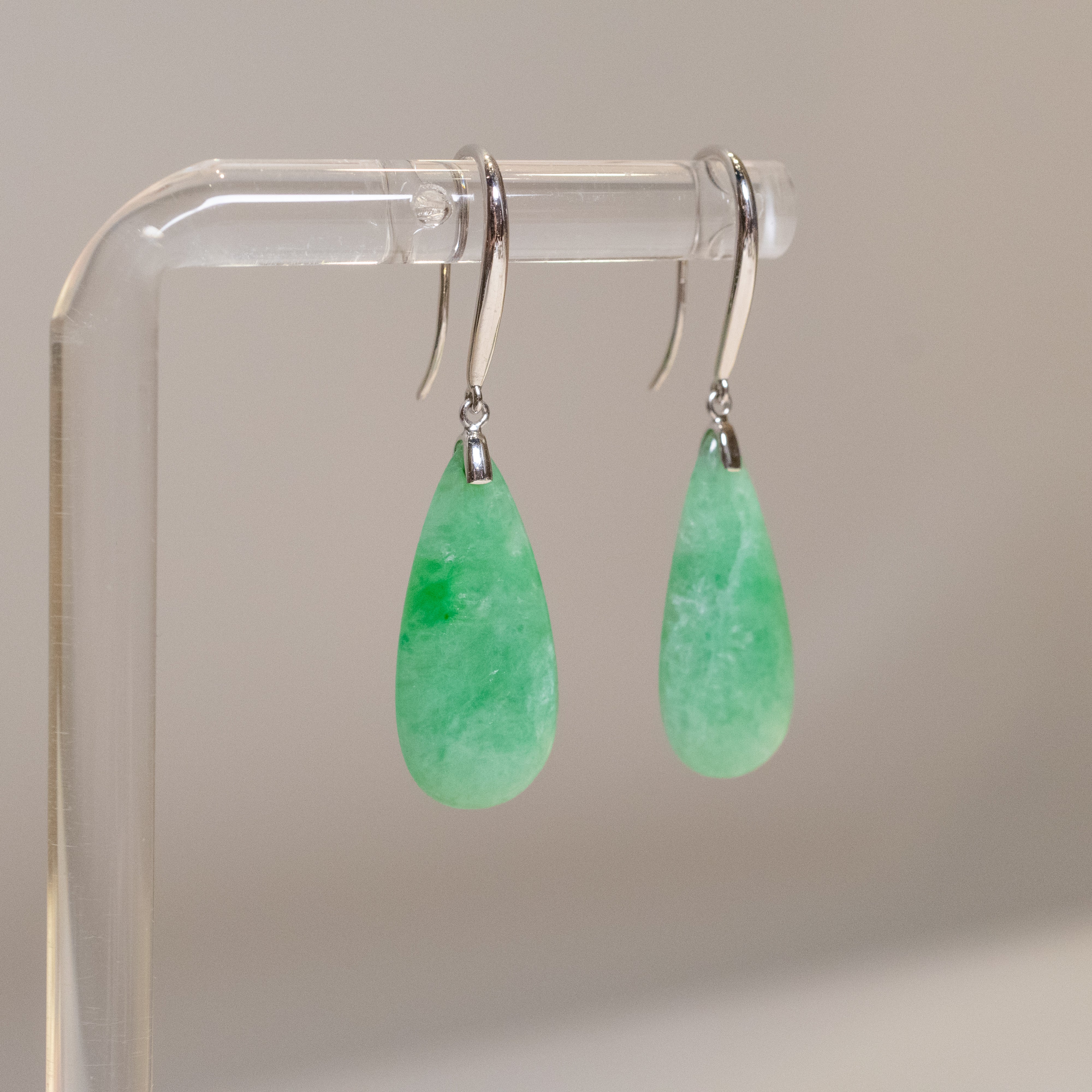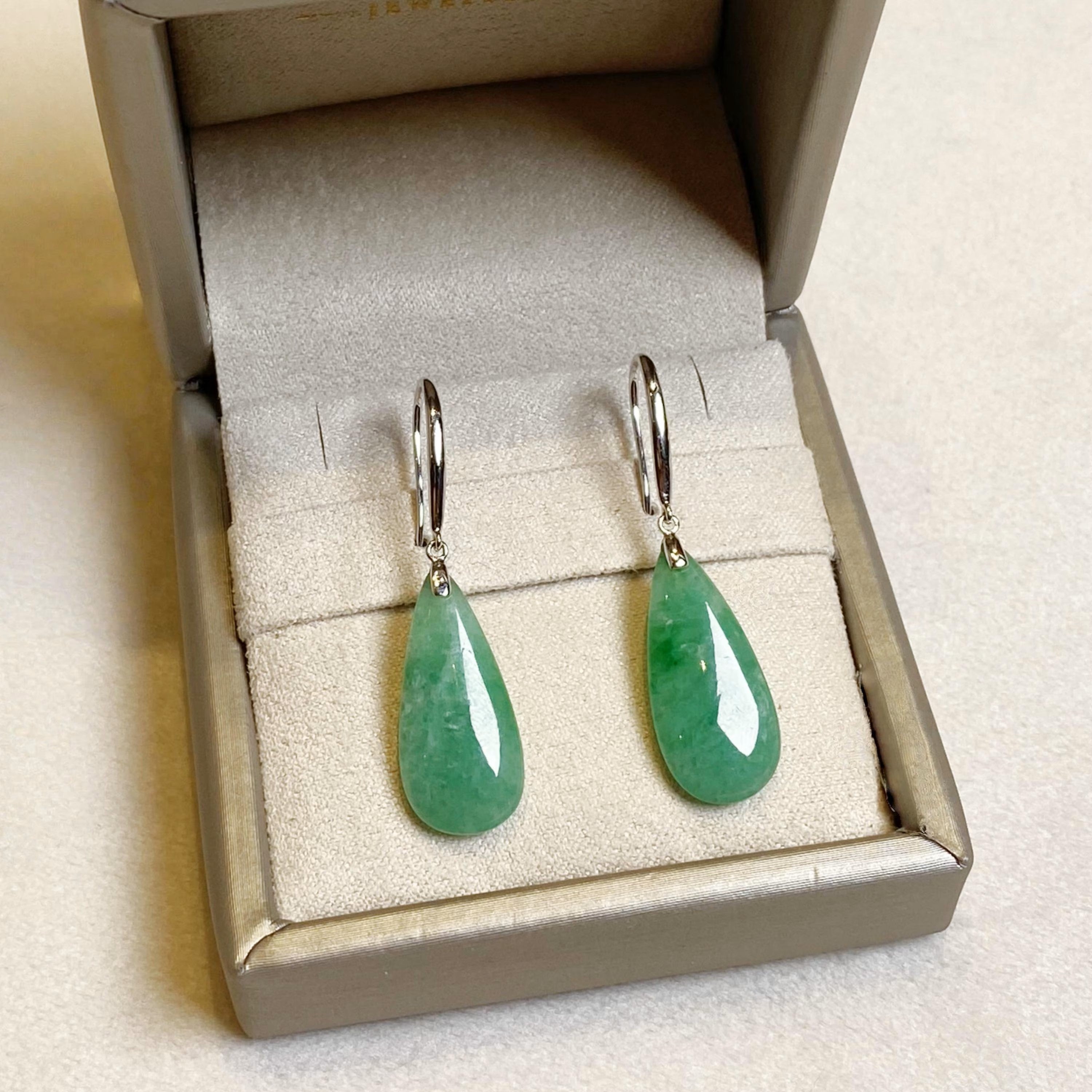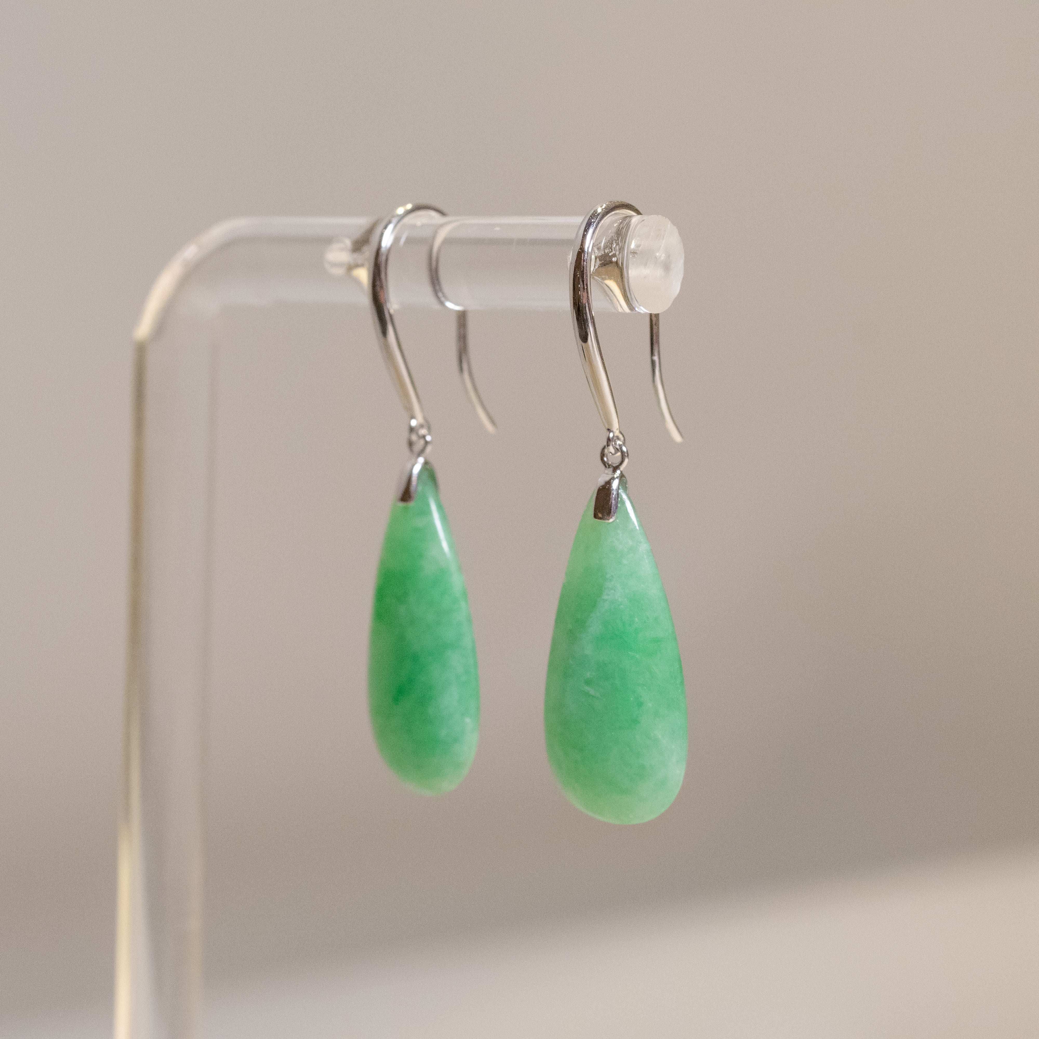 Apple Green Pear-Shaped Drop Jade Earrings in 18k White Gold