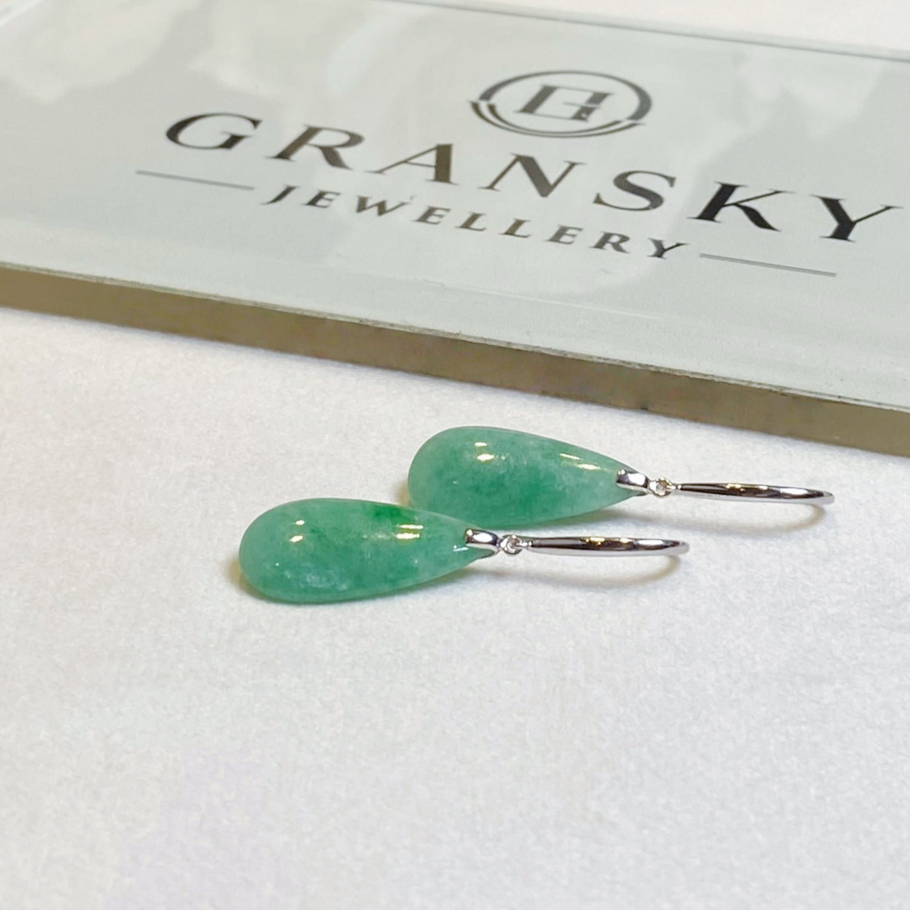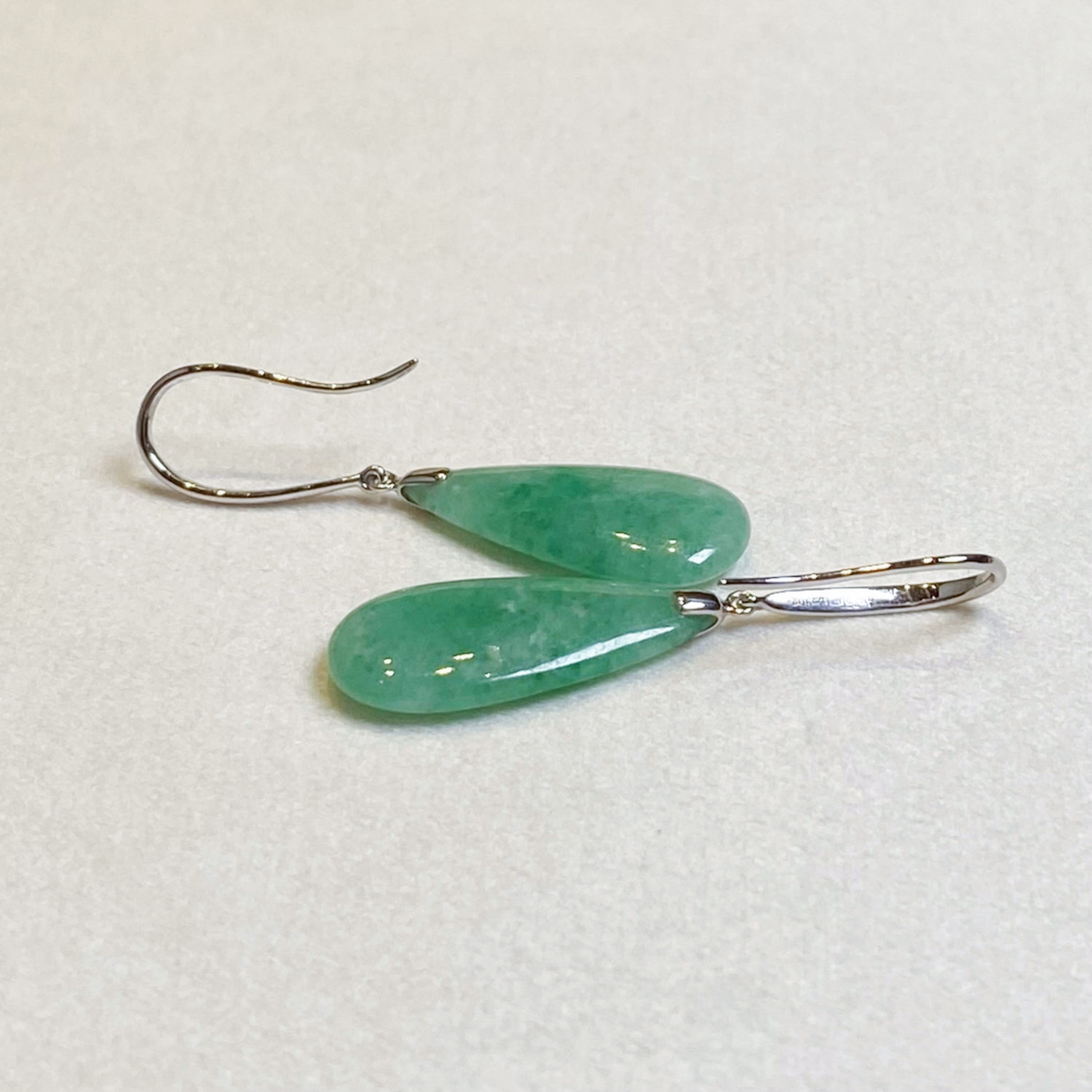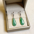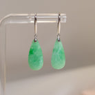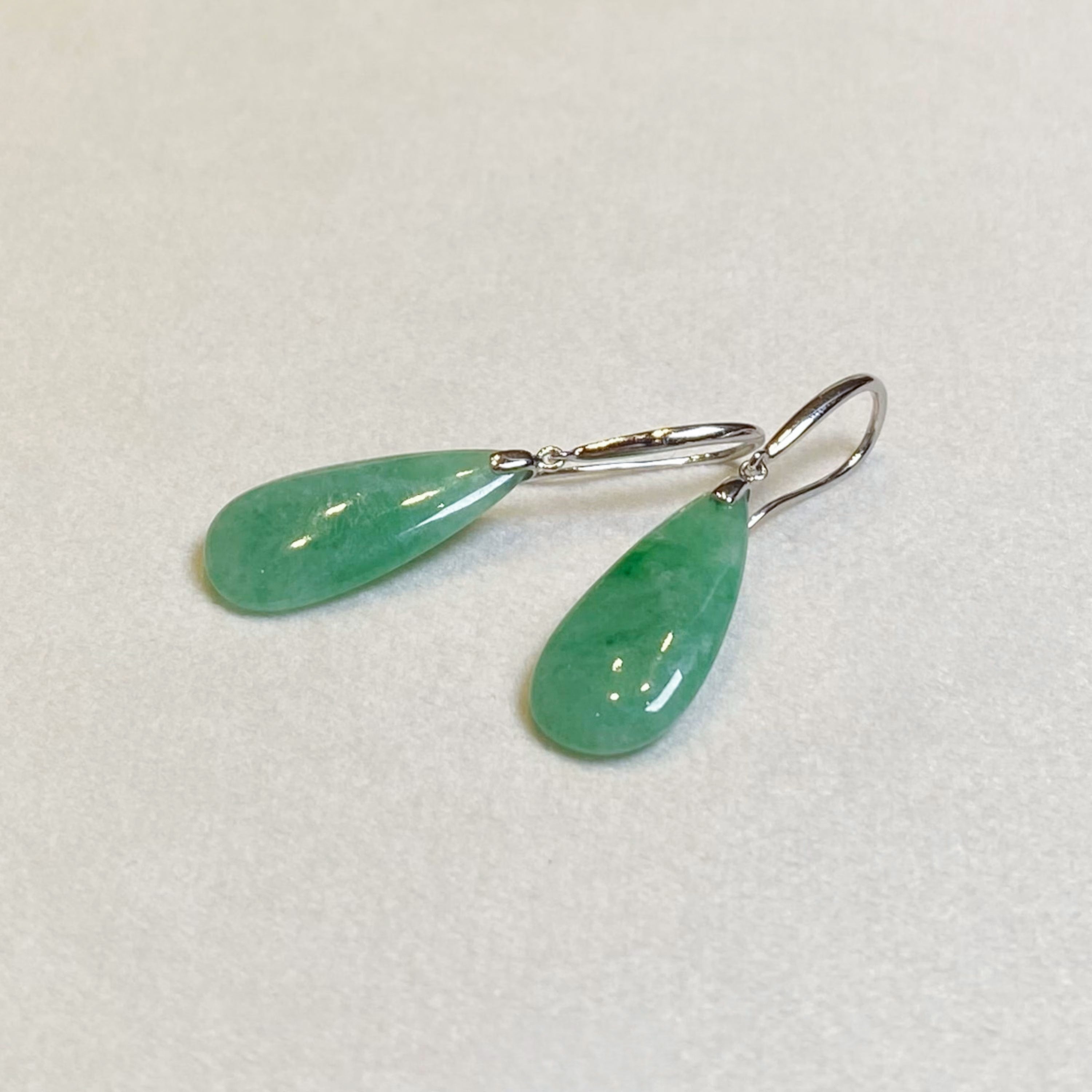 Apple Green Pear-Shaped Drop Jade Earrings in 18k White Gold