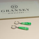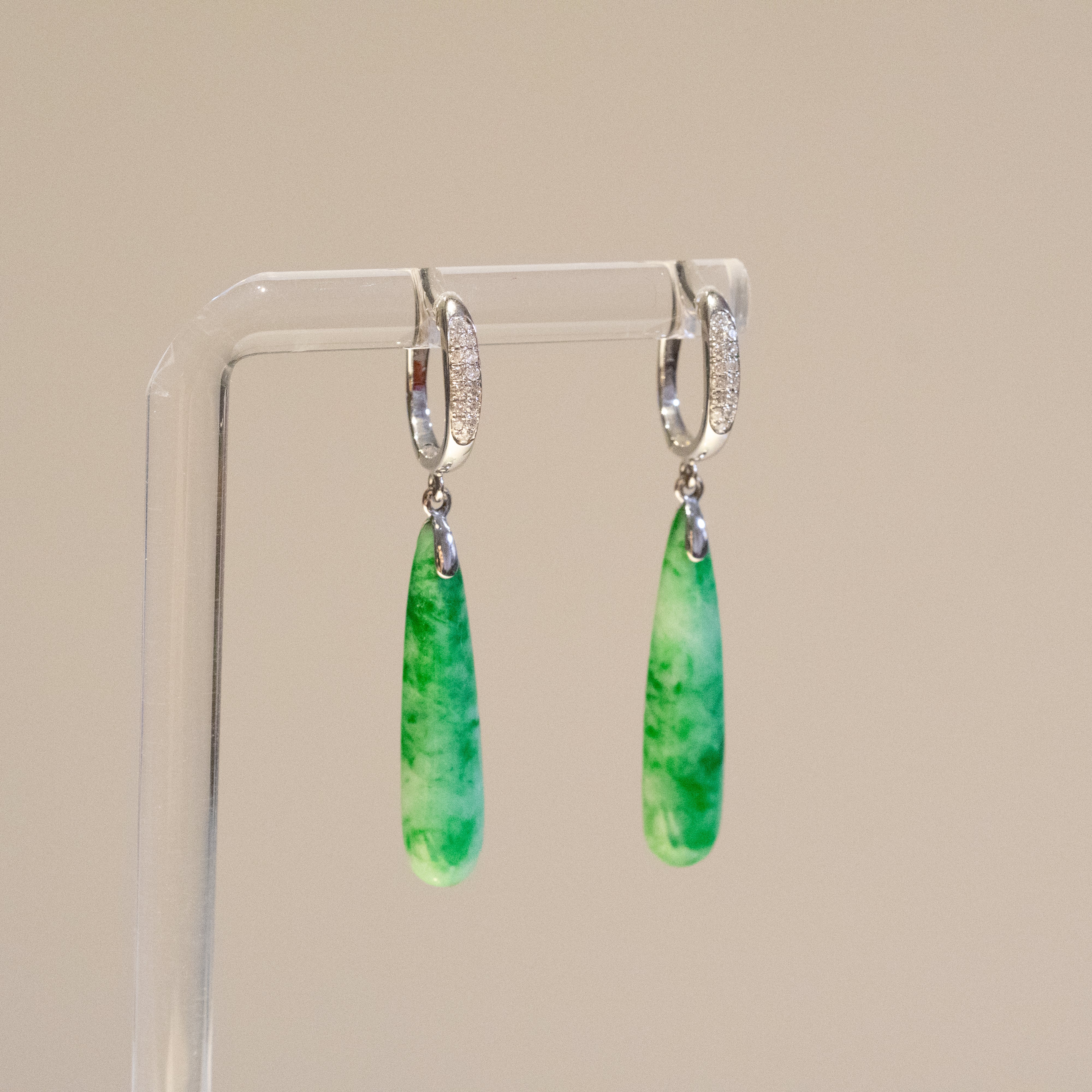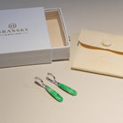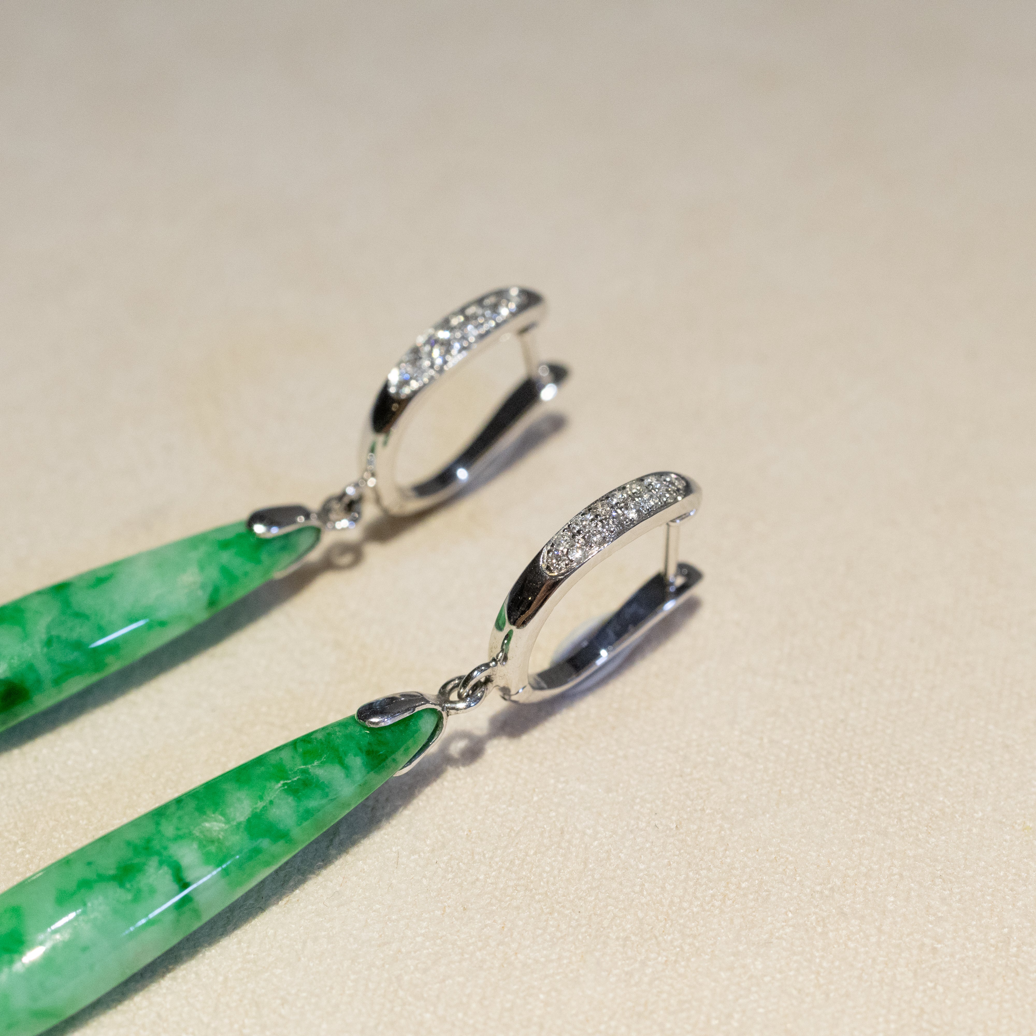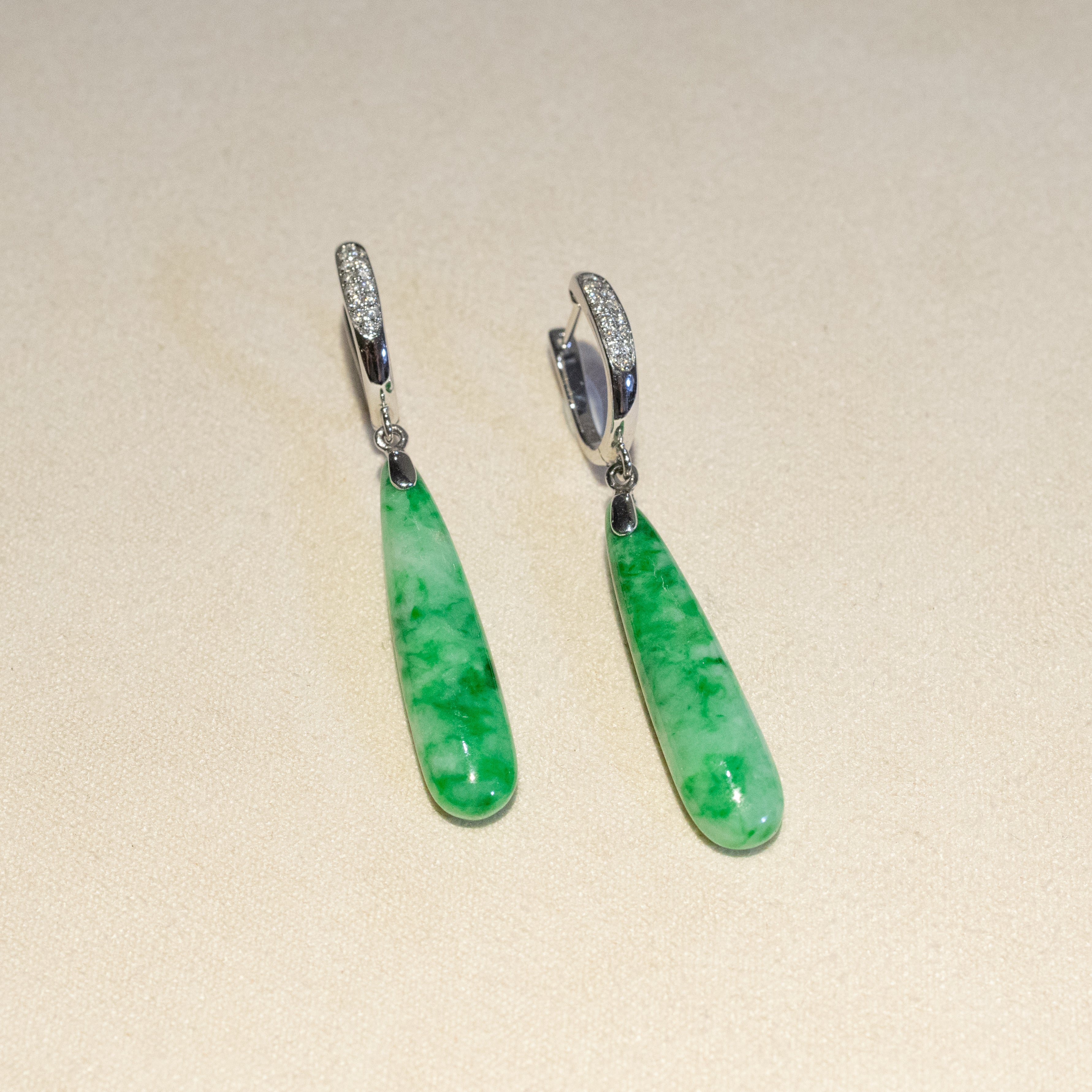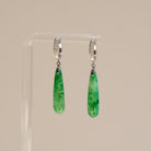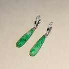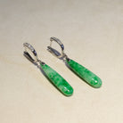 Green Jade Drop Earrings in 18K White Gold & Diamonds - Natural Type-A Jadeite