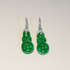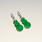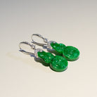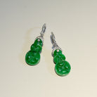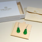 Imperial Green Jadeite Ruyi Earrings in 18K White Gold with Diamonds - Natural Burmese Jade