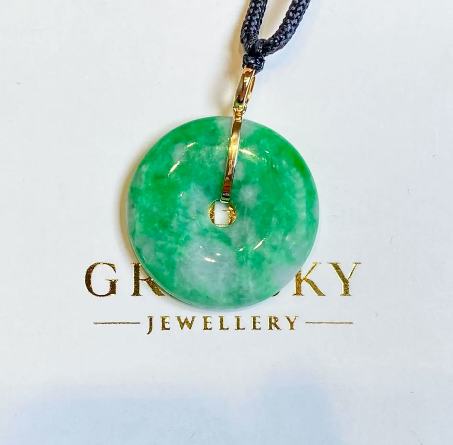 Bright Green Round Disc Jadeite Pendant with 18K Yellow Gold Bail – Natural Type-A Jadeite