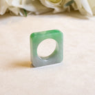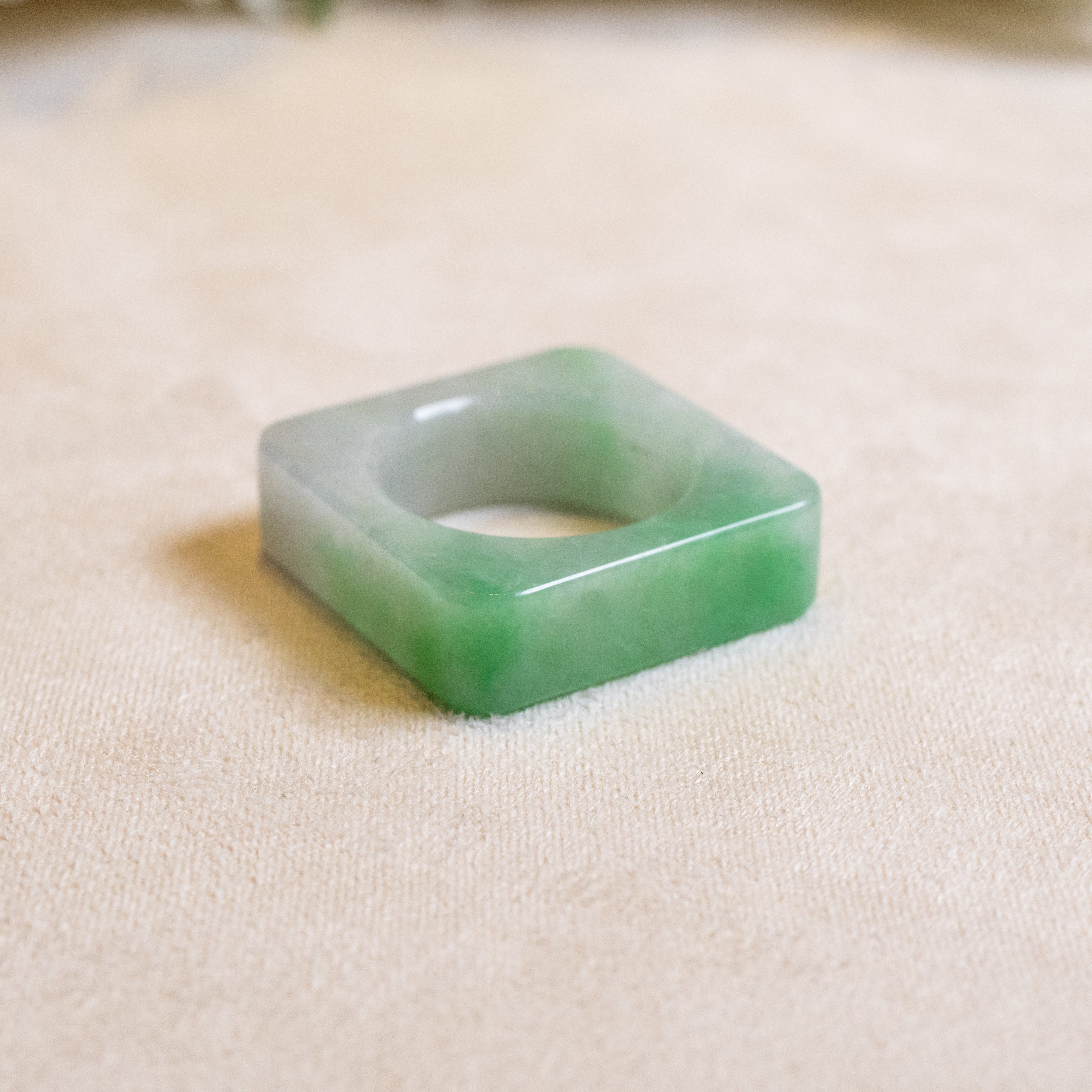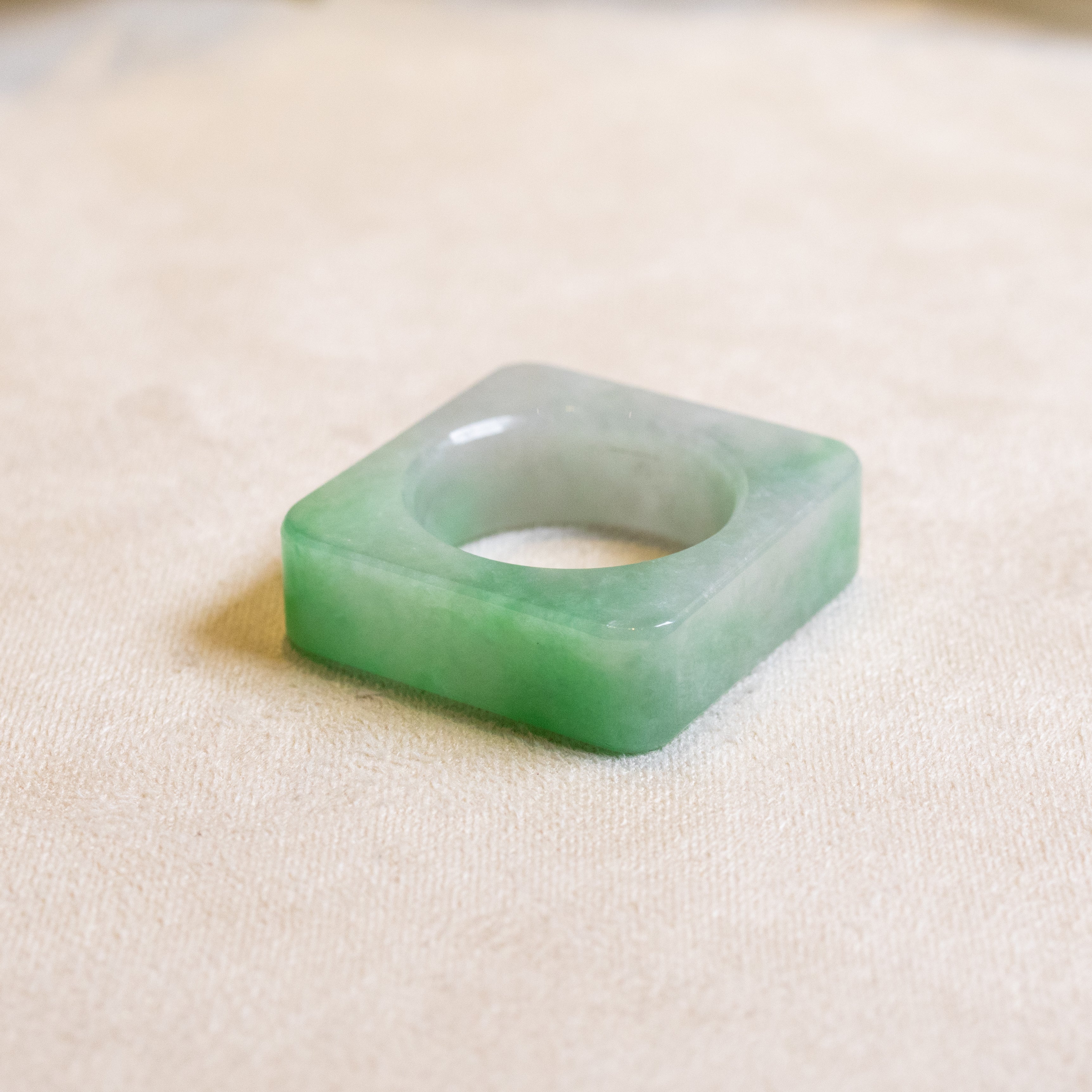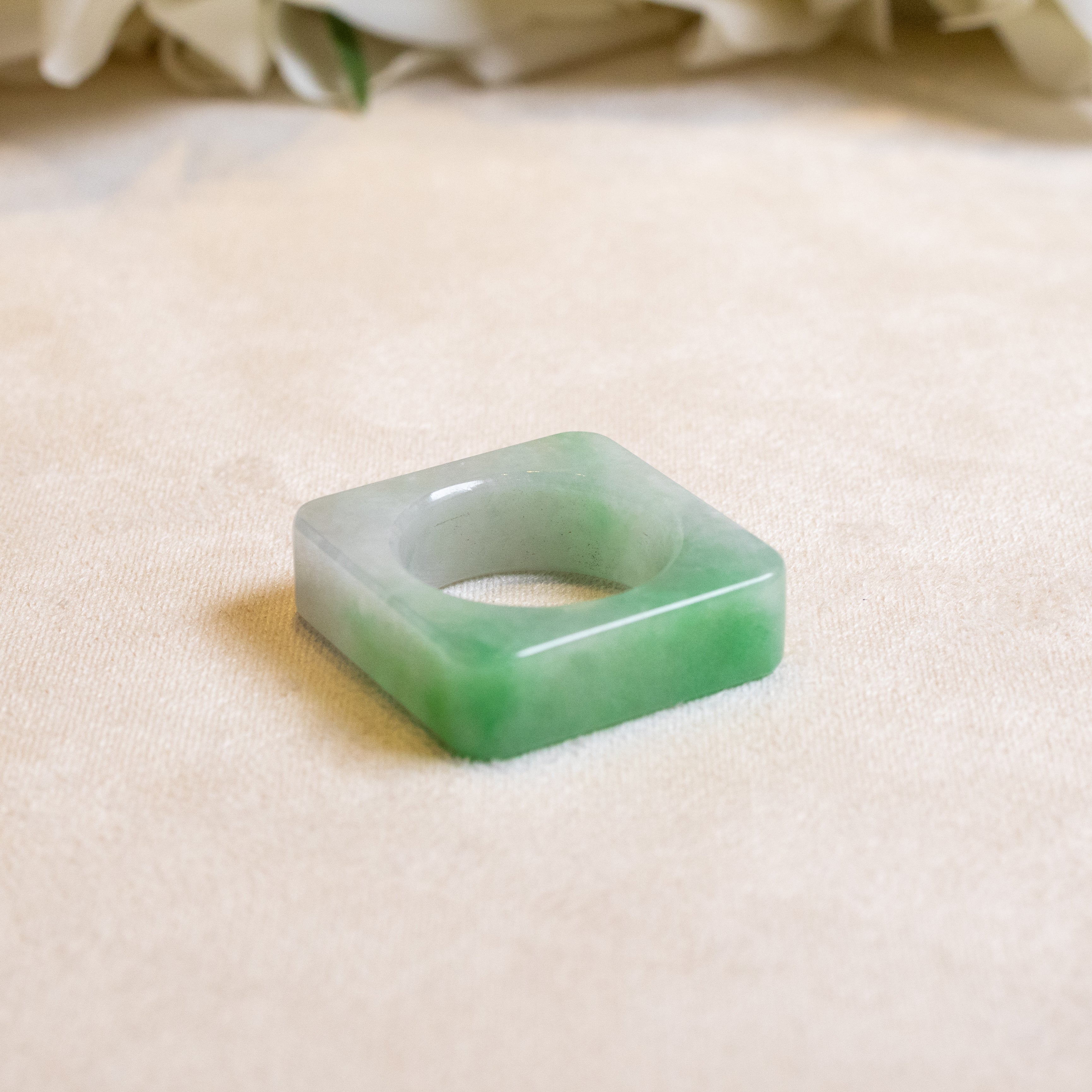 Type-A Burmese Green Jadeite Saddle Ring US 9 - Square Outer Modern Design