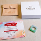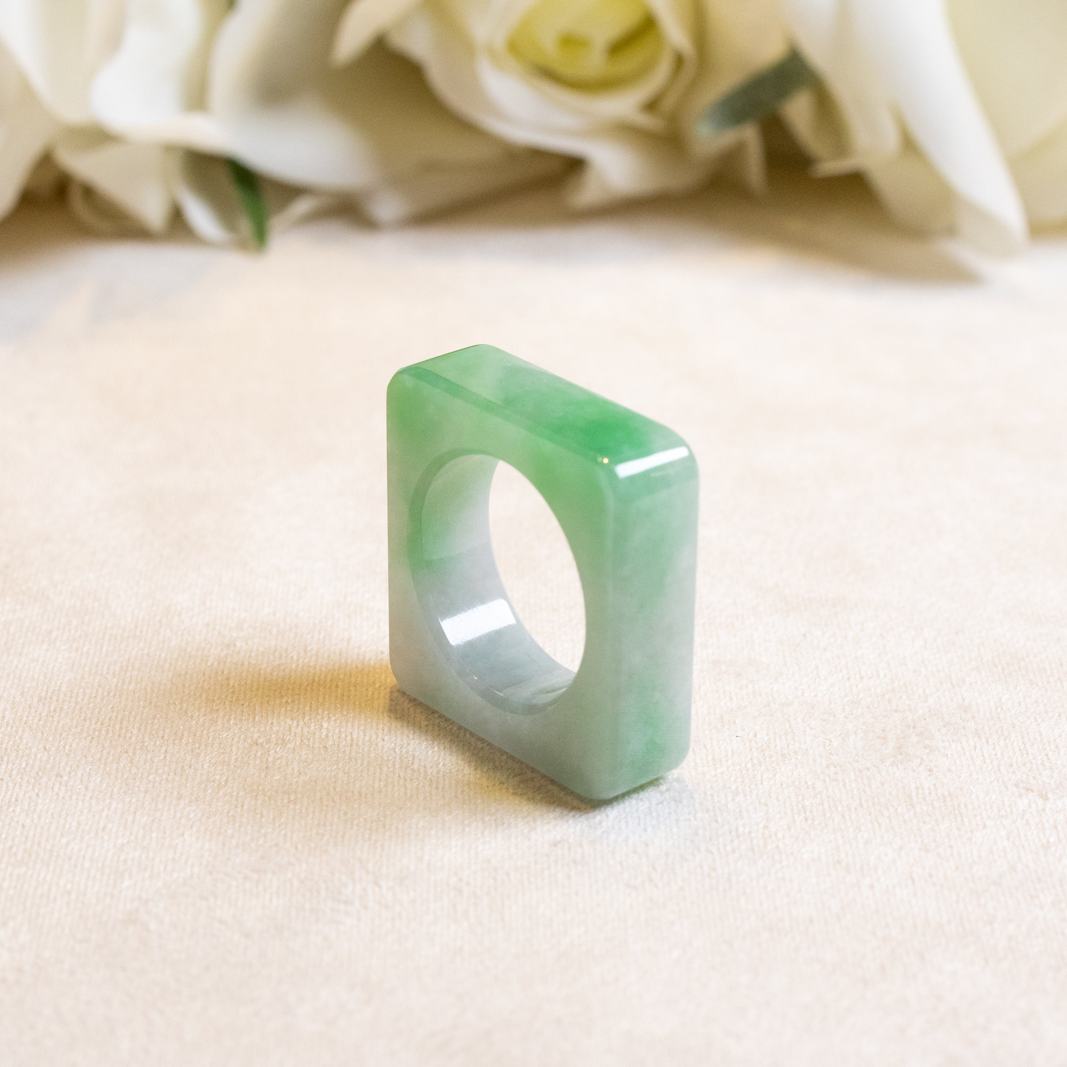 ✅This Type-A Burmese Green Jadeite Saddle Ring captivates with a bold, modern square outer shape and inner round design for a flawless, comfortable fit. The beautifully polished surface showcases an intense apple bright green hue, with the richest, most vibrant green concentrated and distributed across the top portion—creating a striking, natural gradient that flows into luminous lighter tones below. Available in size US 9 (inner diameter 19.1mm). A rare and sophisticated piece, it symbolizes vitality and elegance, making it an exceptional gift or a cherished addition to any fine jewelry collection.