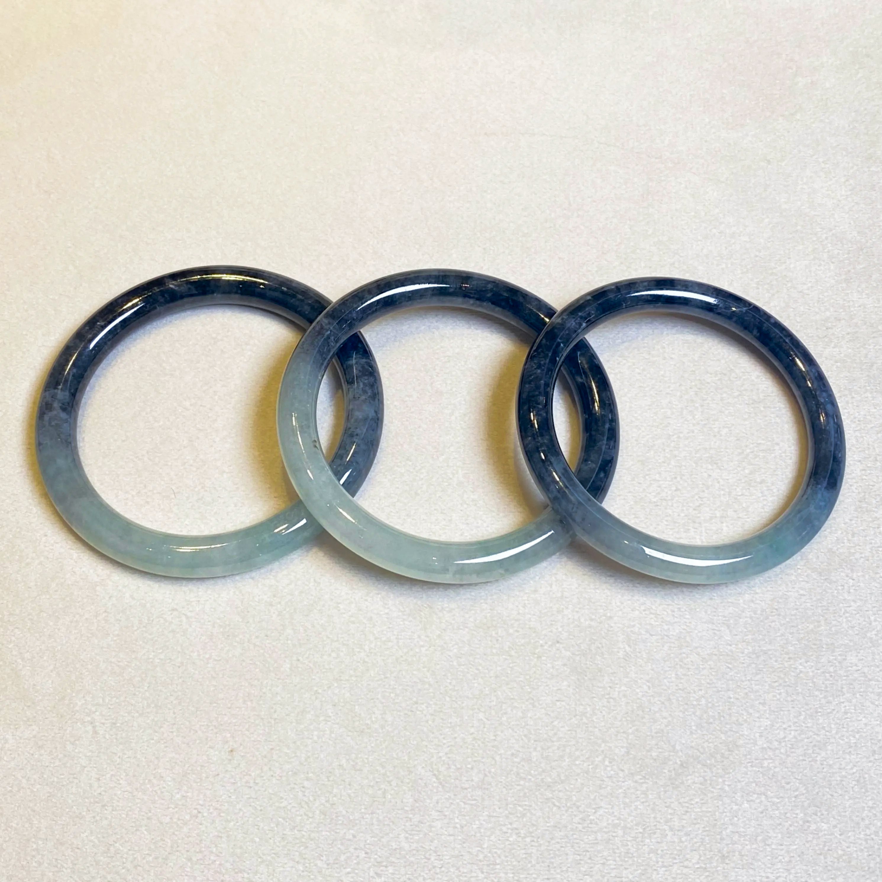 ✅This round black-and-white jade bangle is crafted from natural, untreated Type-A Burmese jadeite, showcasing a striking contrast of dark and pale jade tones. Each bangle is fully handcrafted and available in inner sizes 53mm, 54mm, and 55mm—with only one unique piece available per size. A timeless and collectible jade piece, perfect for daily wear or gifting.
