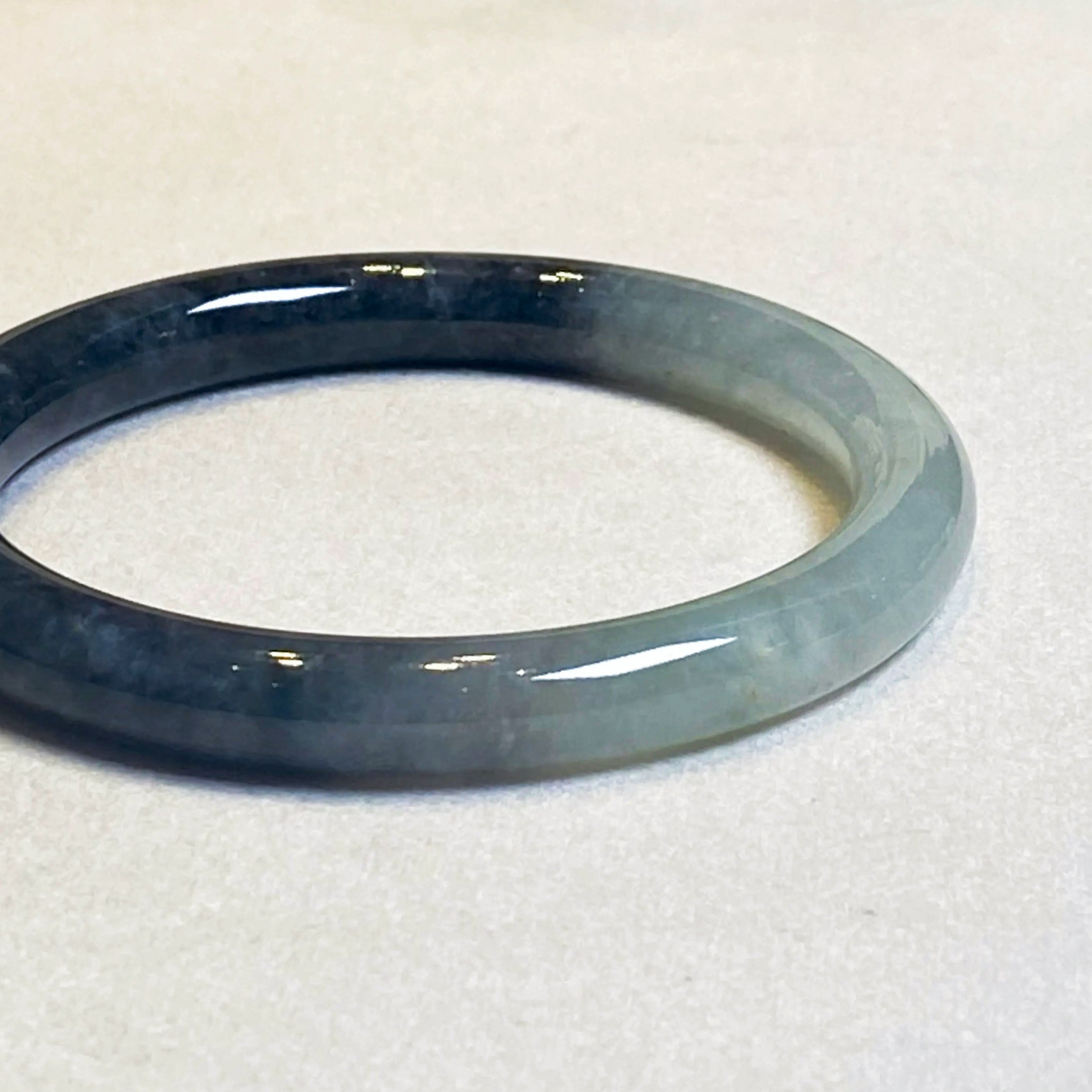 Black & White Jade Bangle – Natural Type A Burmese Jadeite, Round Bangle in Sizes 53mm–55mm
