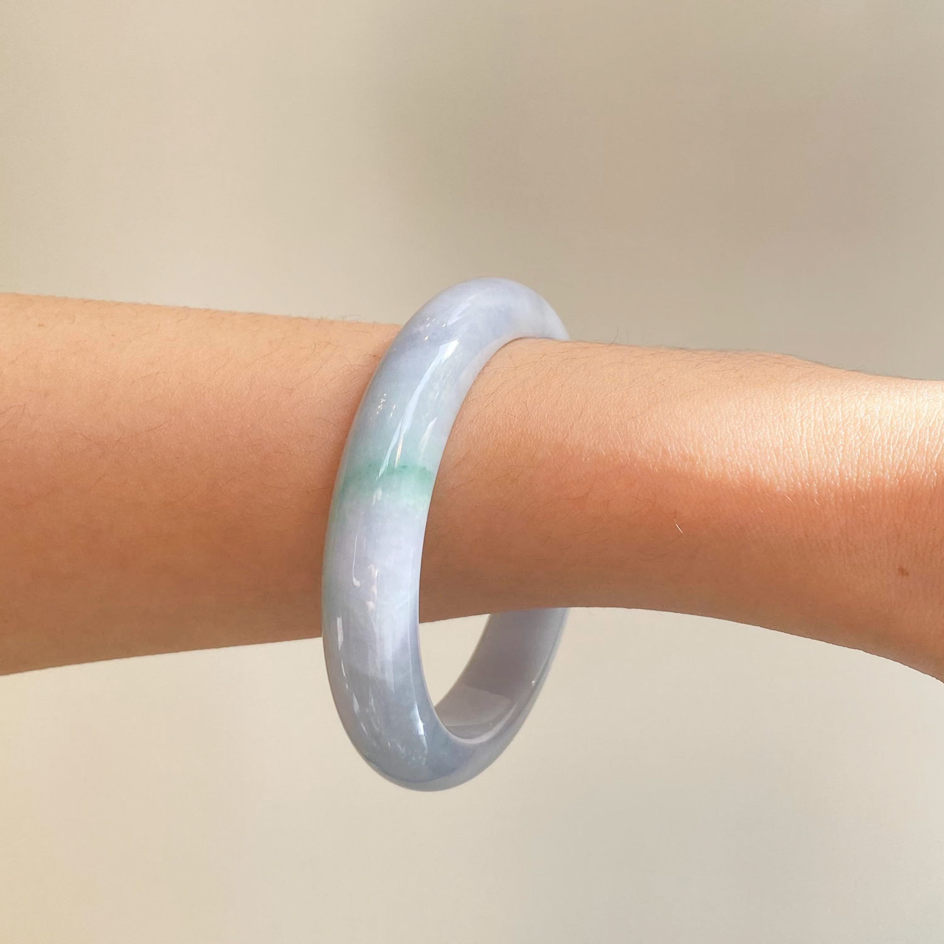 In Chinese tradition, green jade symbolizes peace, vitality, and good fortune. Wearing jade close to the skin is believed to protect one’s spirit, balance emotions, and attract prosperity. This bangle is designed as both an elegant adornment and a spiritual talisman.