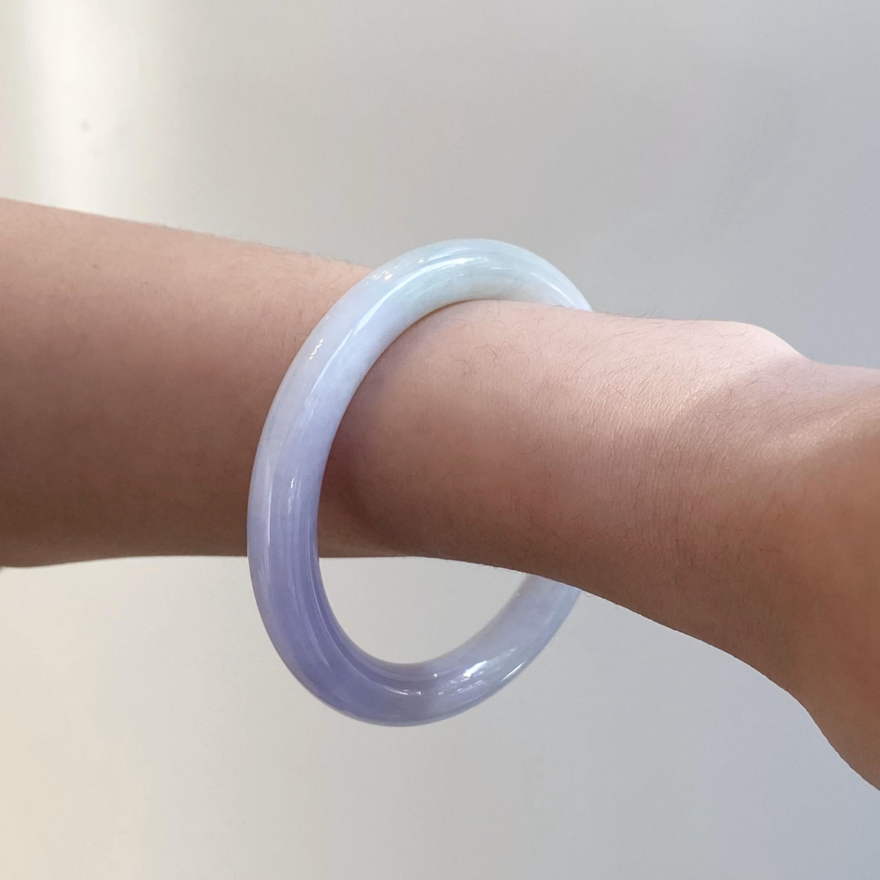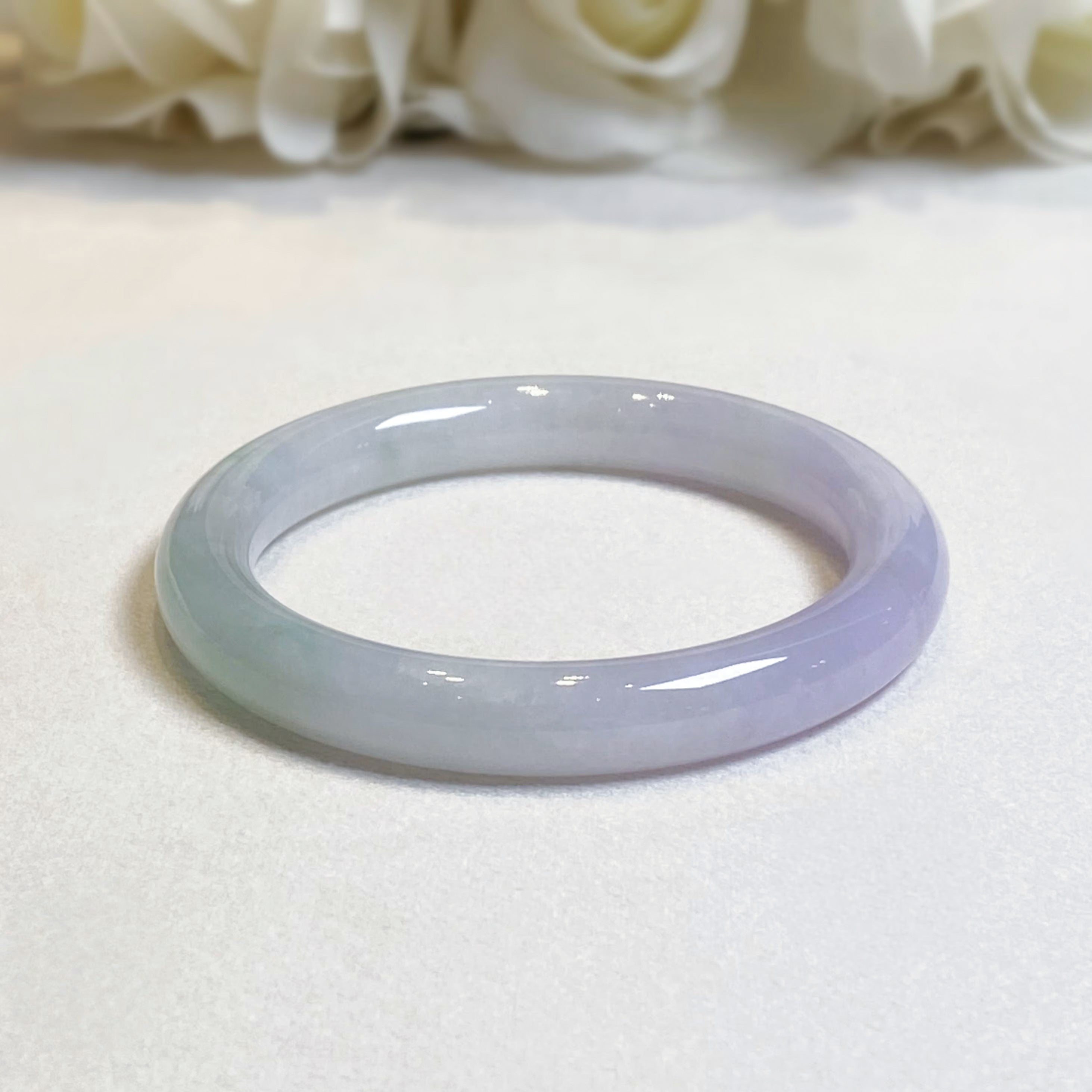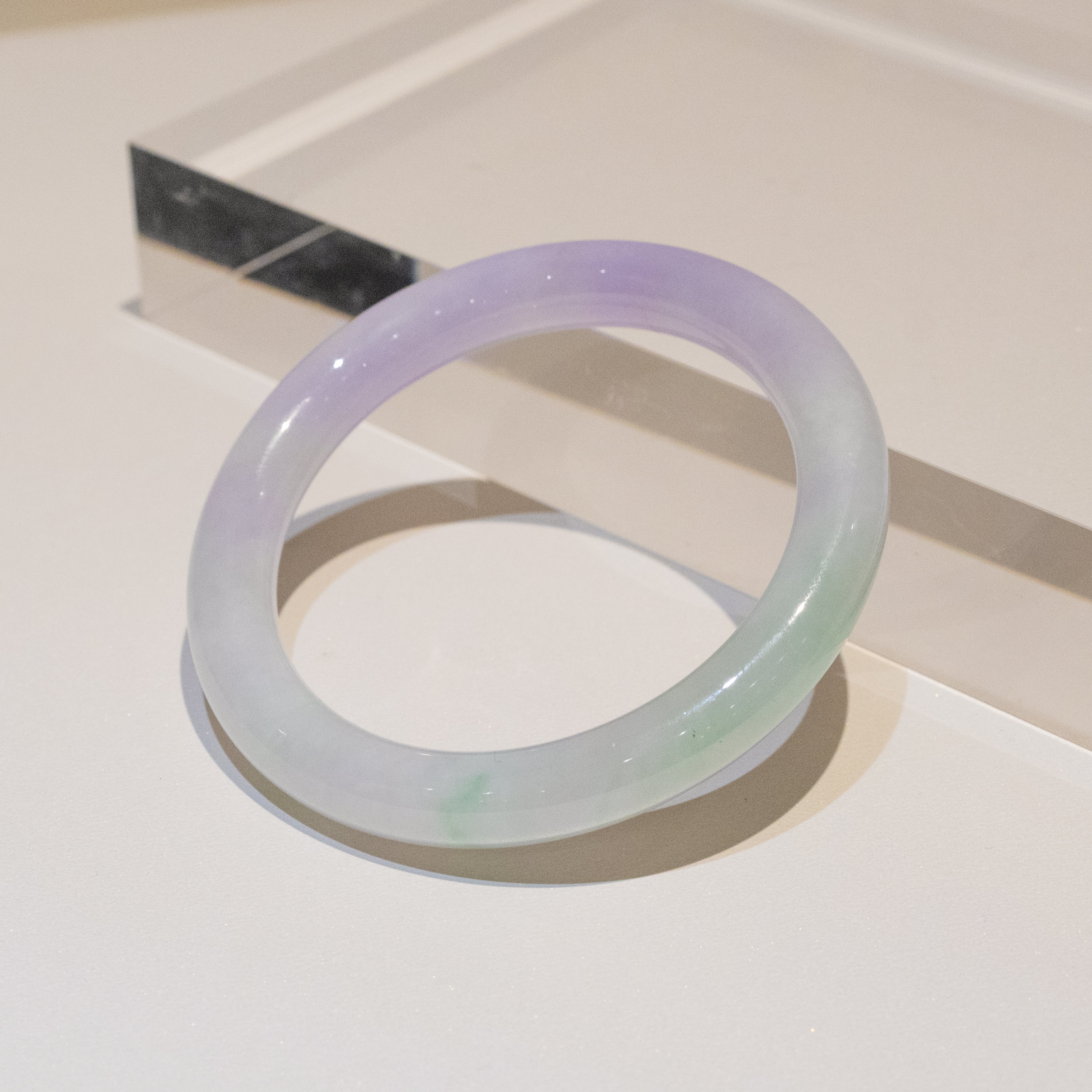 ✅This round shape green-and-purple jade bangle is crafted from natural, untreated Type-A Burmese jadeite, showcasing a striking natural blend of bright green and purple jade tones. This bangle is fully handcrafted and available in inner diameter sizes 54.8mm—with only one unique piece available. A timeless and collectible jade piece, perfect for daily wear or gifting.