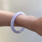 ✅This round shape bright purple jade bangle is crafted from natural, untreated Type-A Burmese jadeite, showcasing a striking natural purple jade tones with exceptional translucency. This bangle is fully handcrafted and available in inner diameter sizes 53mm—with only one unique piece available. A timeless and collectible jade piece, perfect for daily wear or gifting.