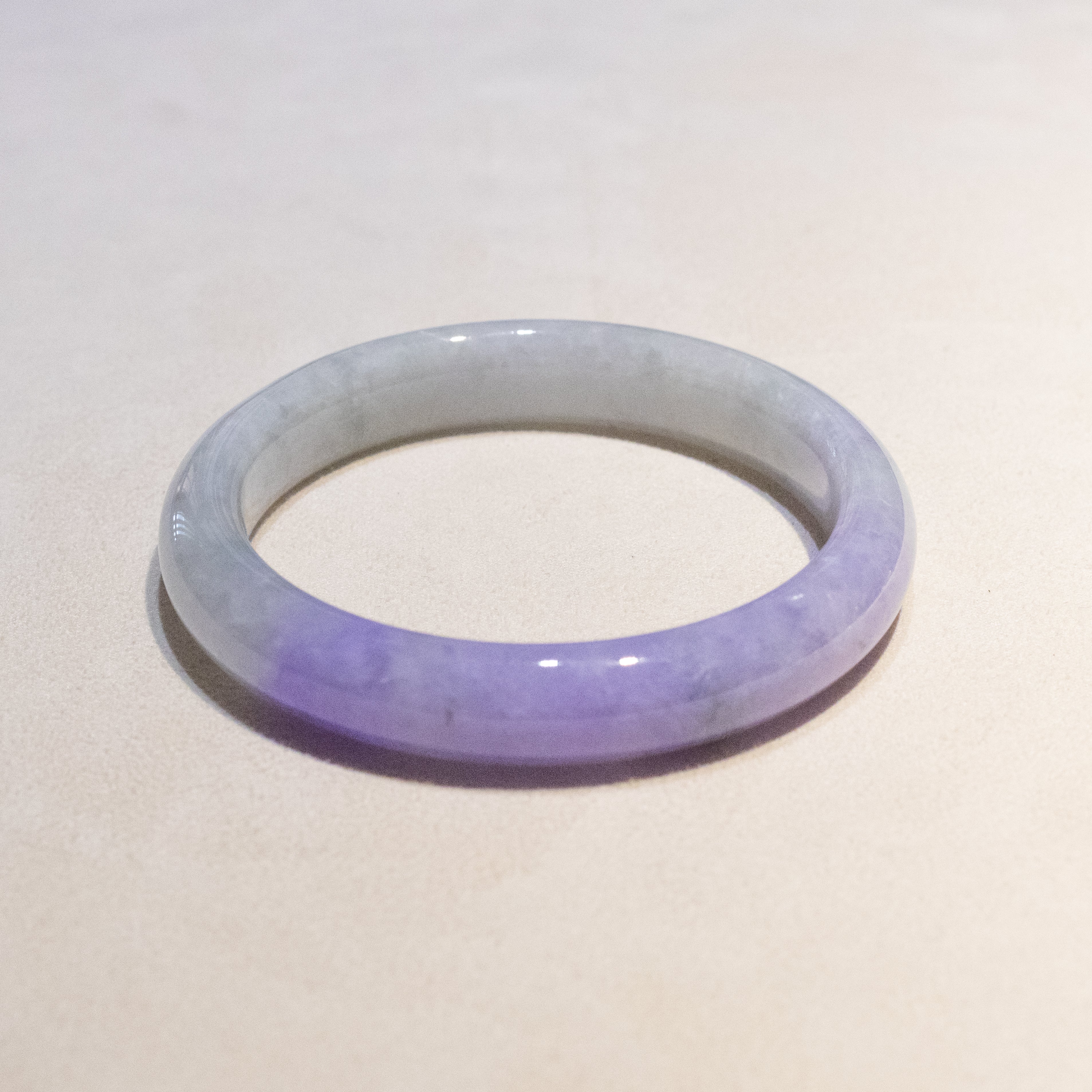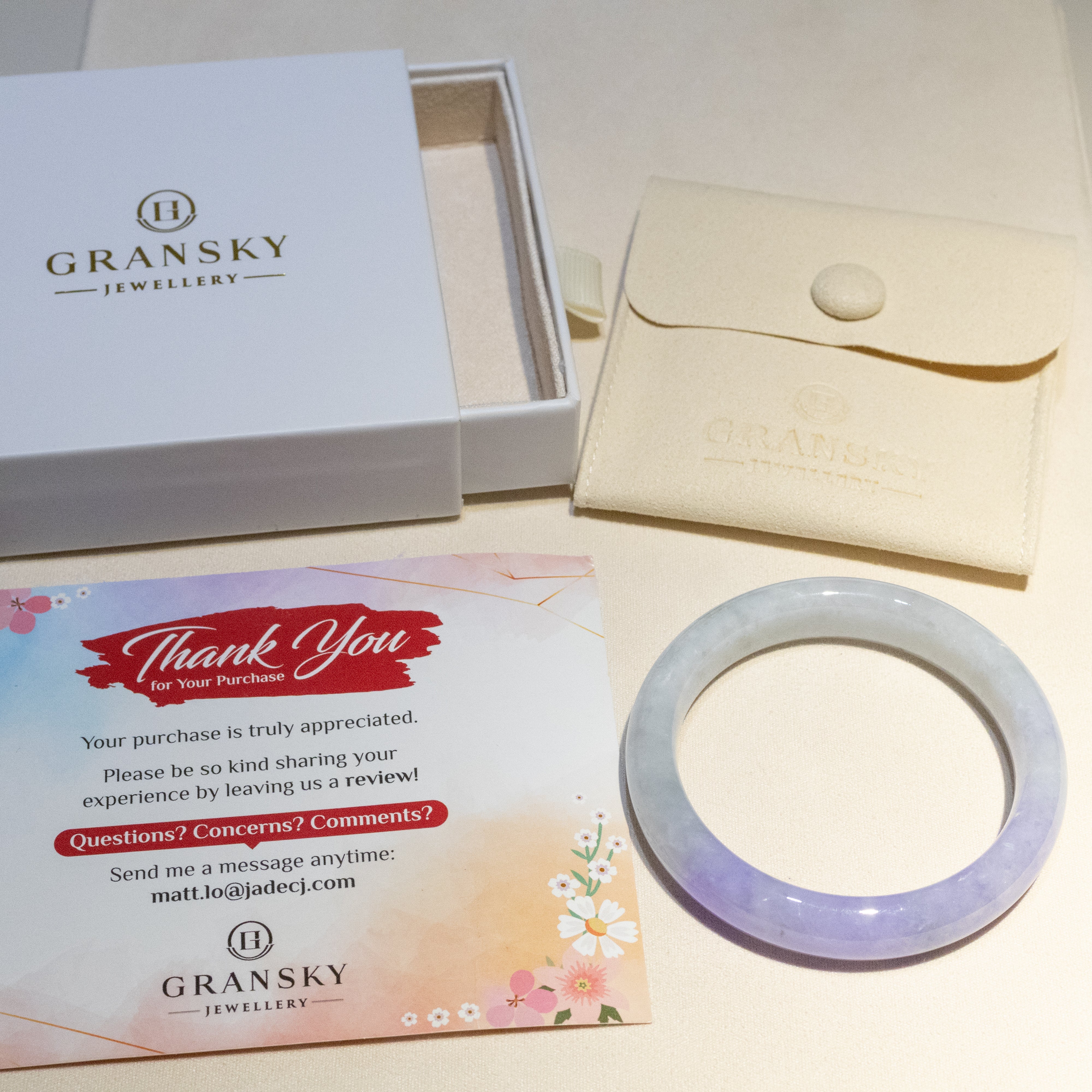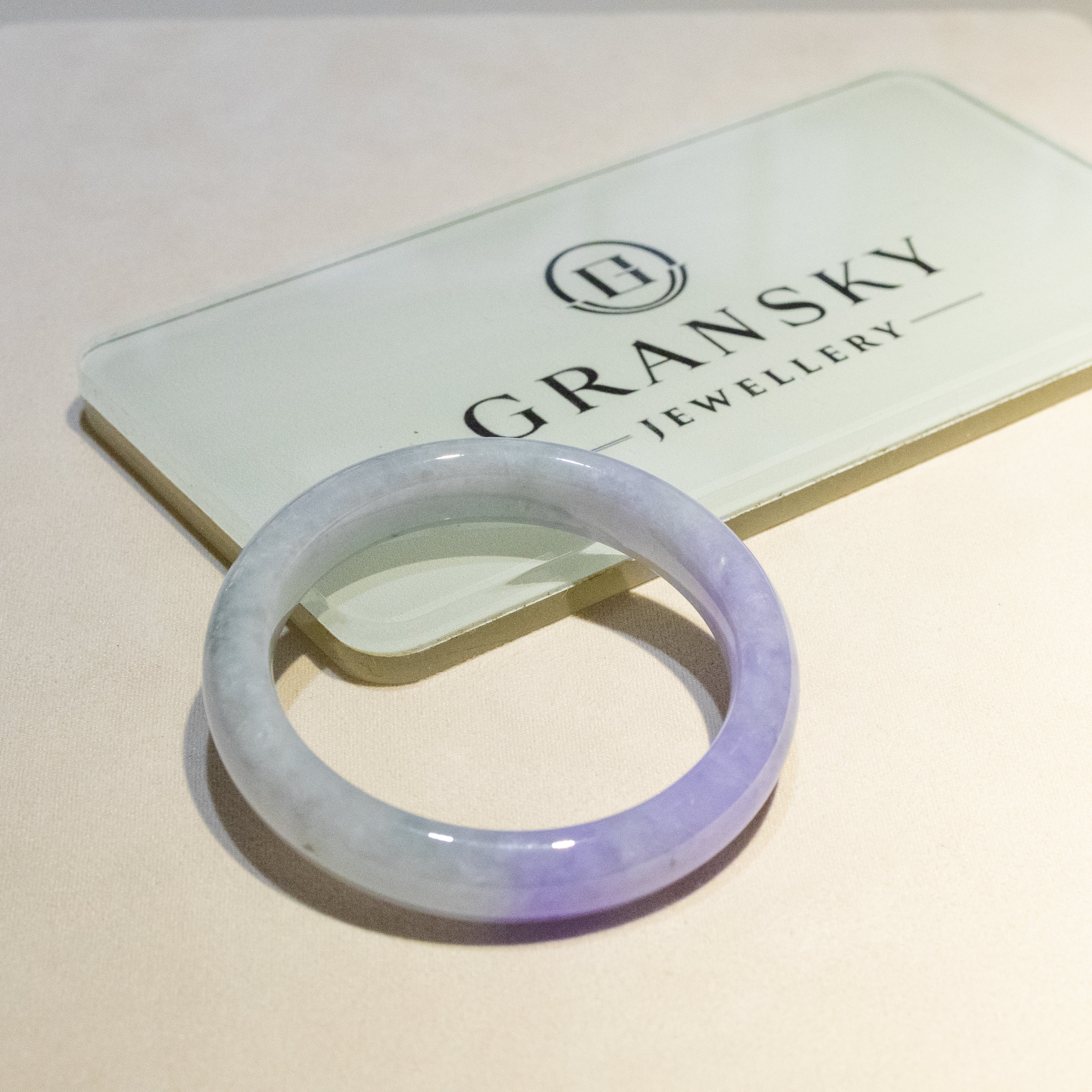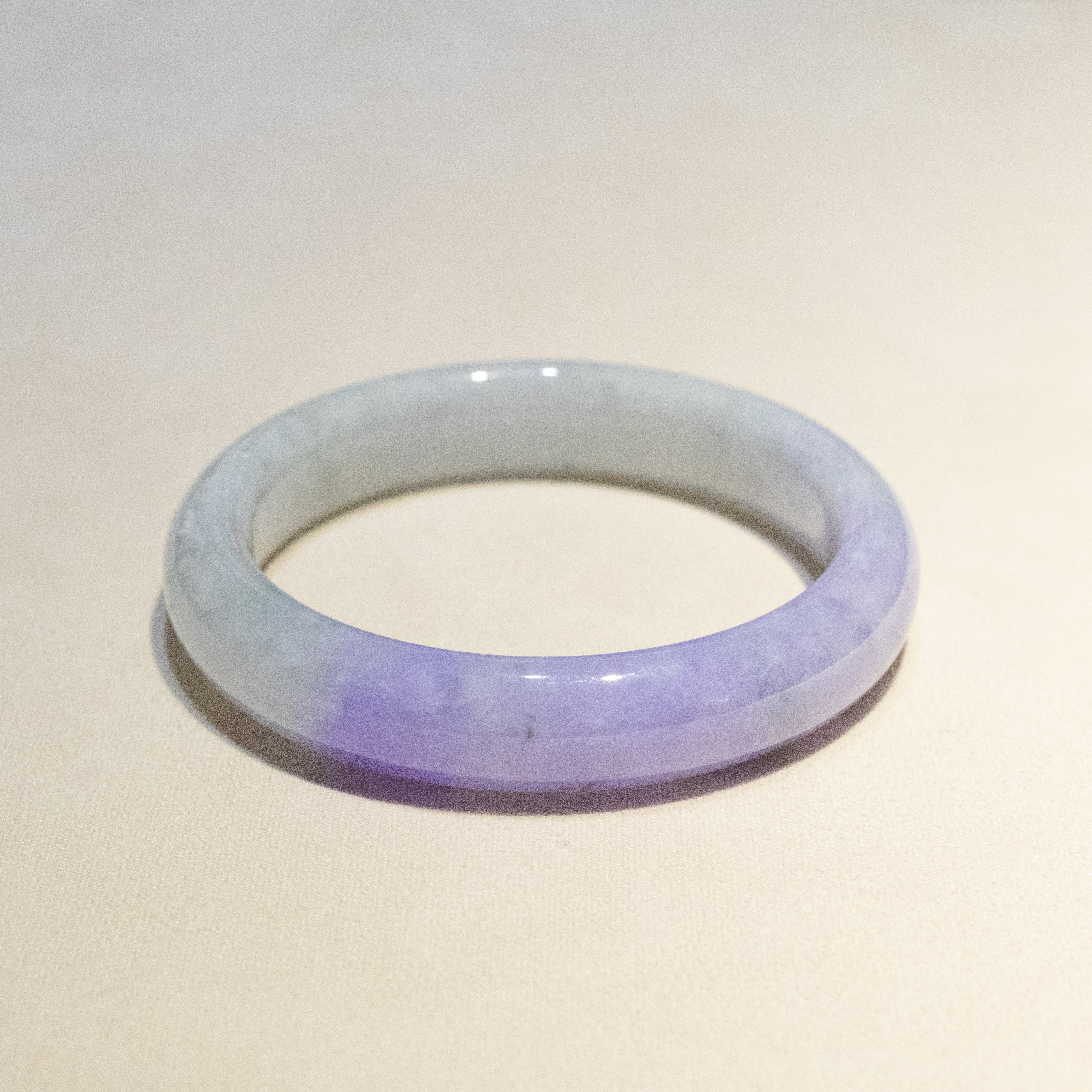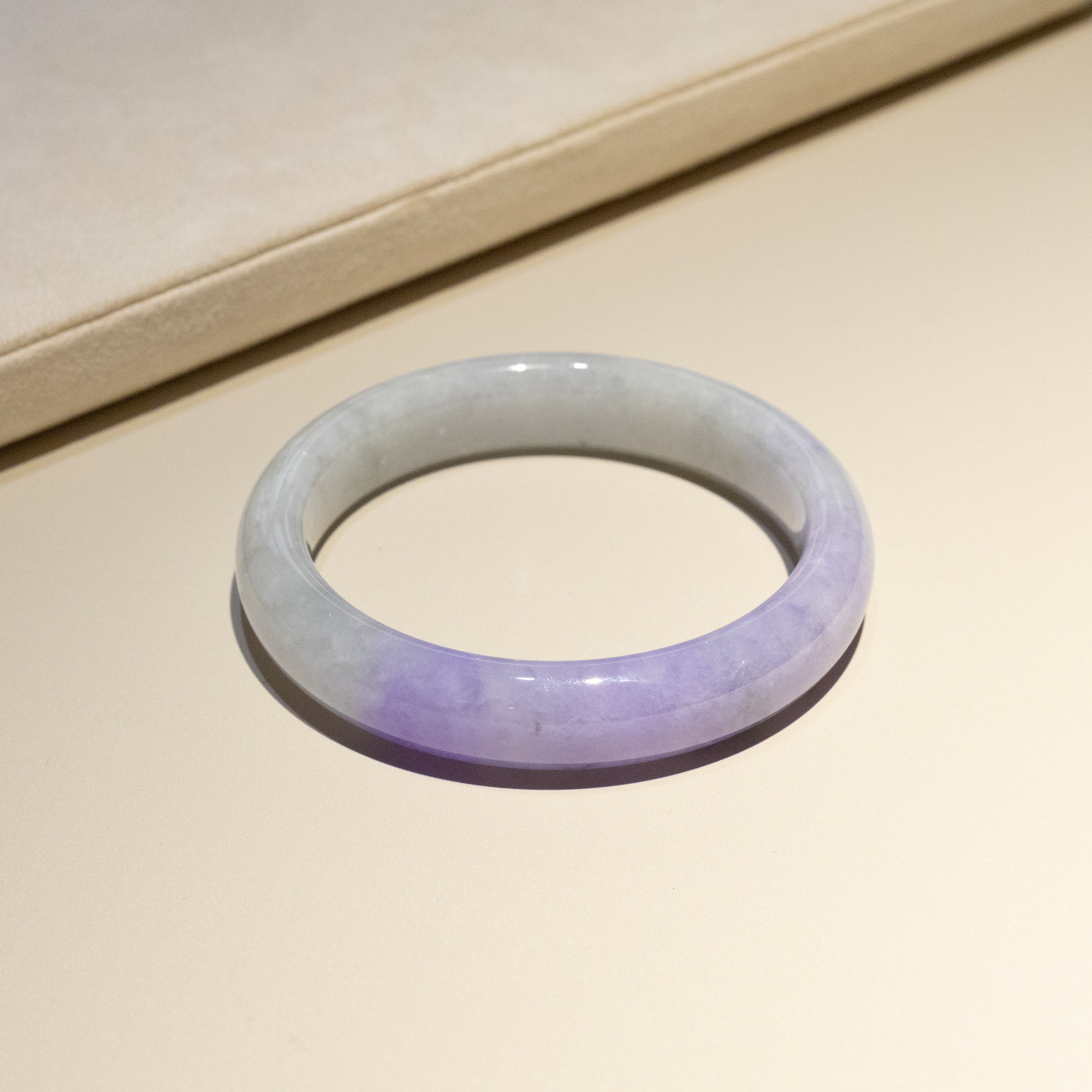 Hand-finished from genuine Burmese jade rough, this piece reflects the natural beauty and individuality of authentic jadeite. With its balanced proportions and rare purple color concentration, this jade bangle is well-suited for jade collectors, fine jewelry enthusiasts, or as a meaningful luxury gift.