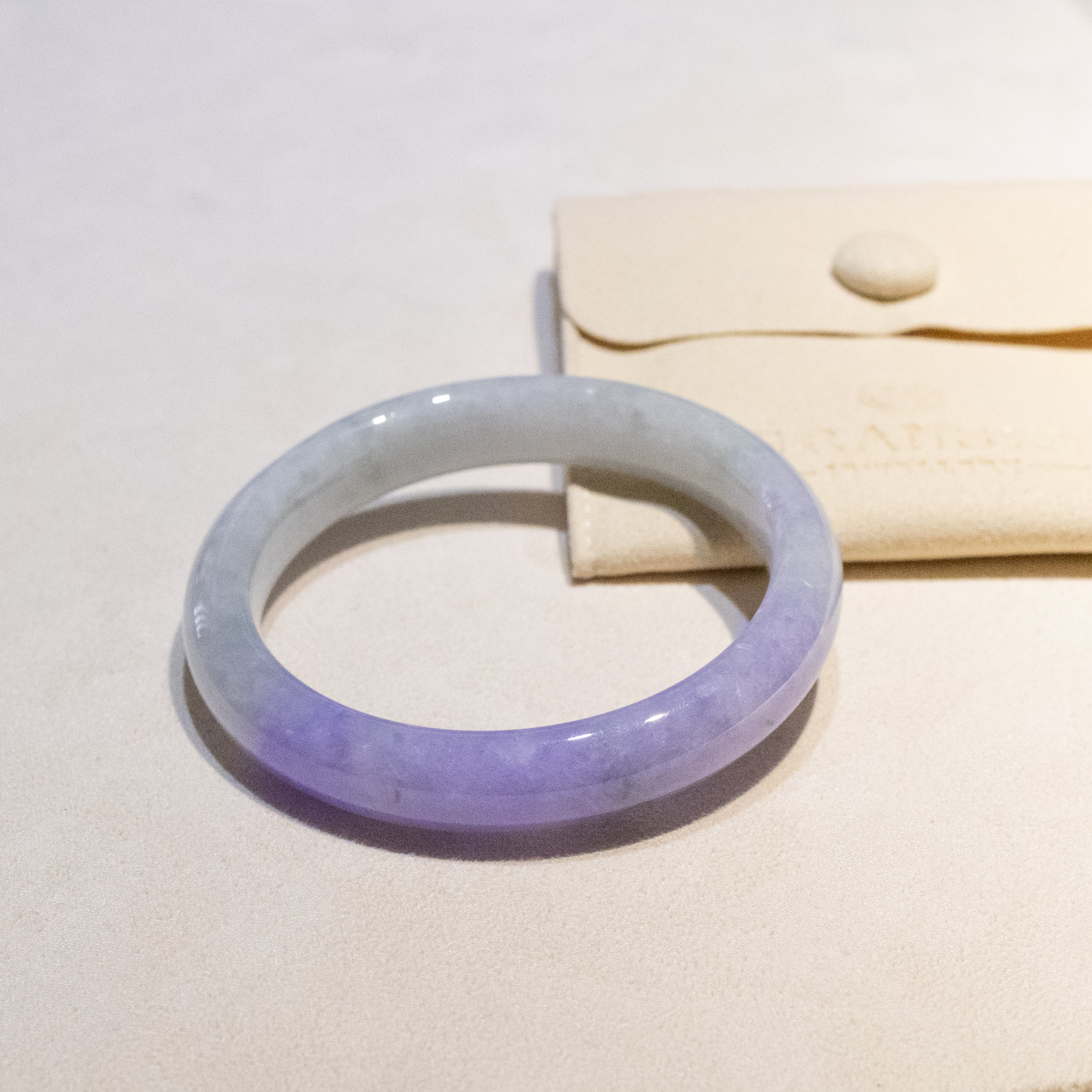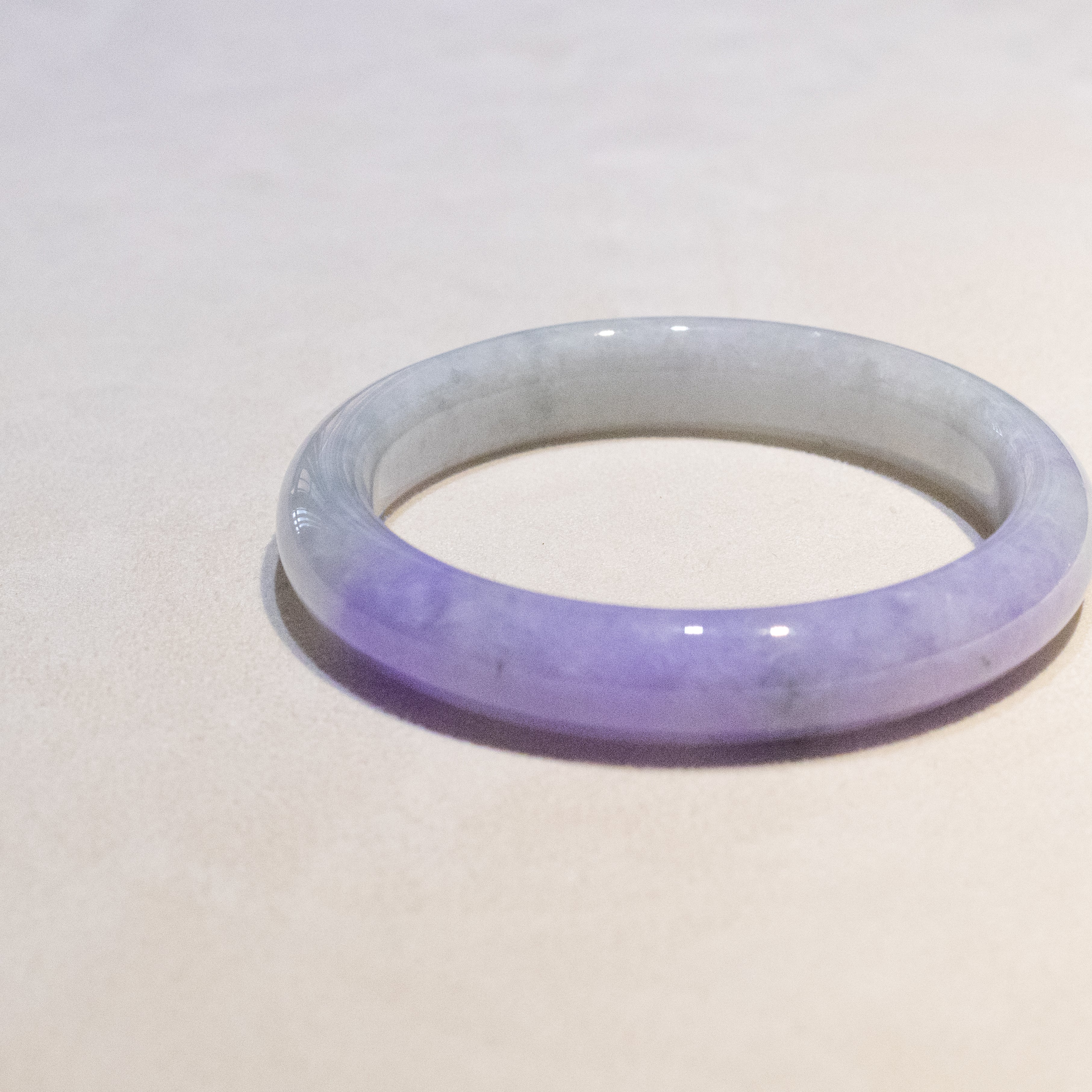 ✅This elegant purple jade bangle is crafted from 100% natural, untreated Type-A Burmese jadeite, featuring a refined flat inner surface and a smooth round outer profile for comfortable daily wear. The bangle displays a distinct section of intense purple coloration, highlighted by a rich, luminous hue that enhances its visual depth and collectibility.