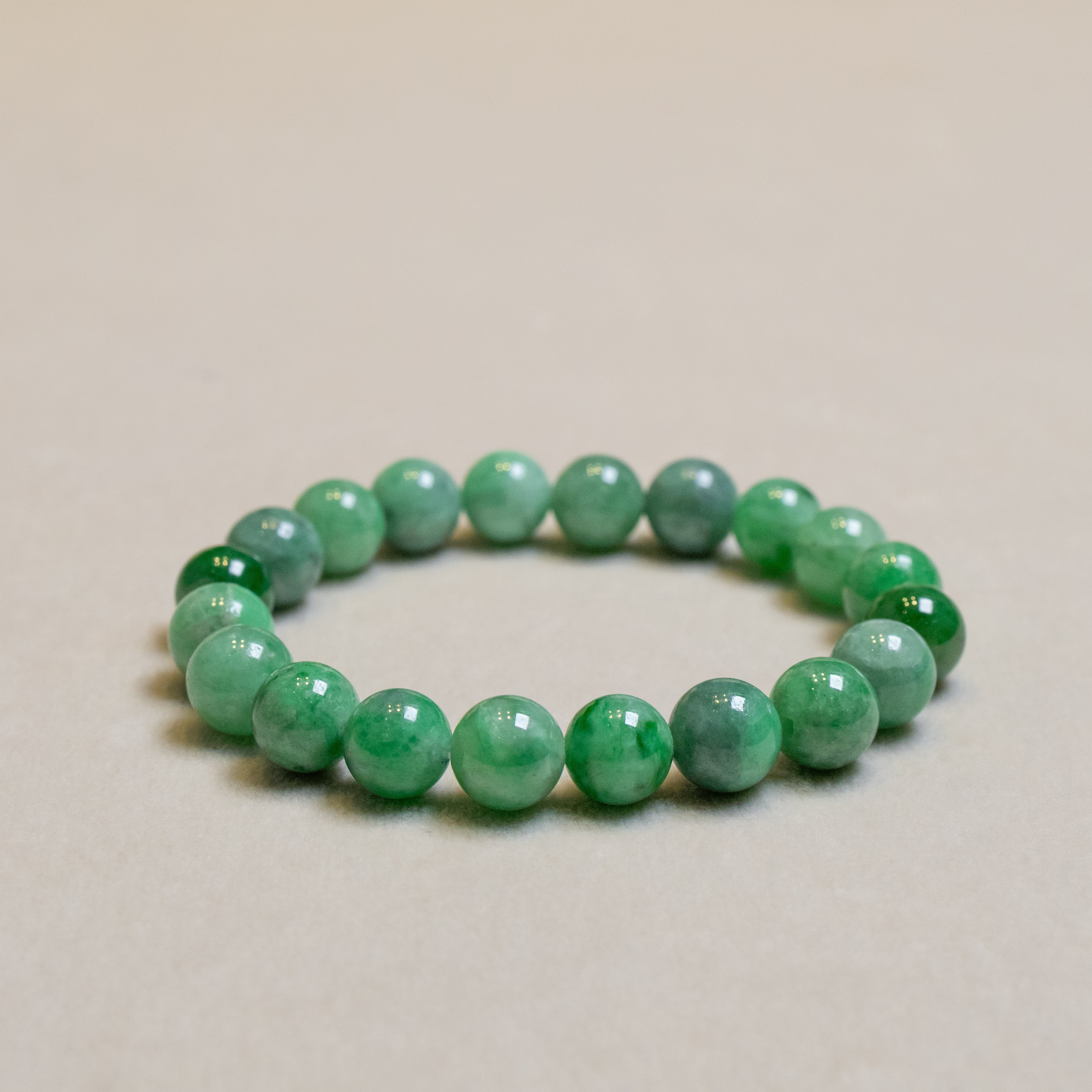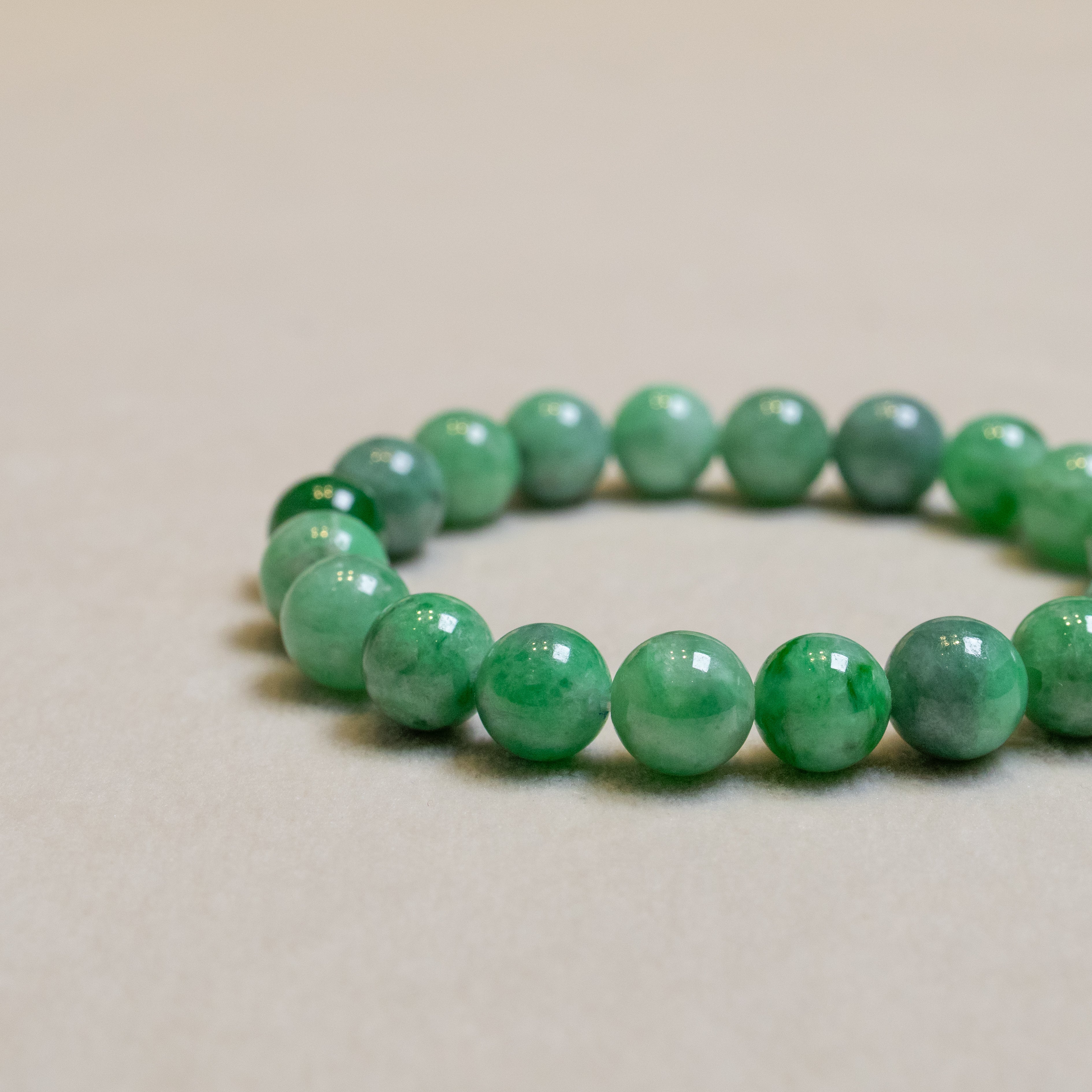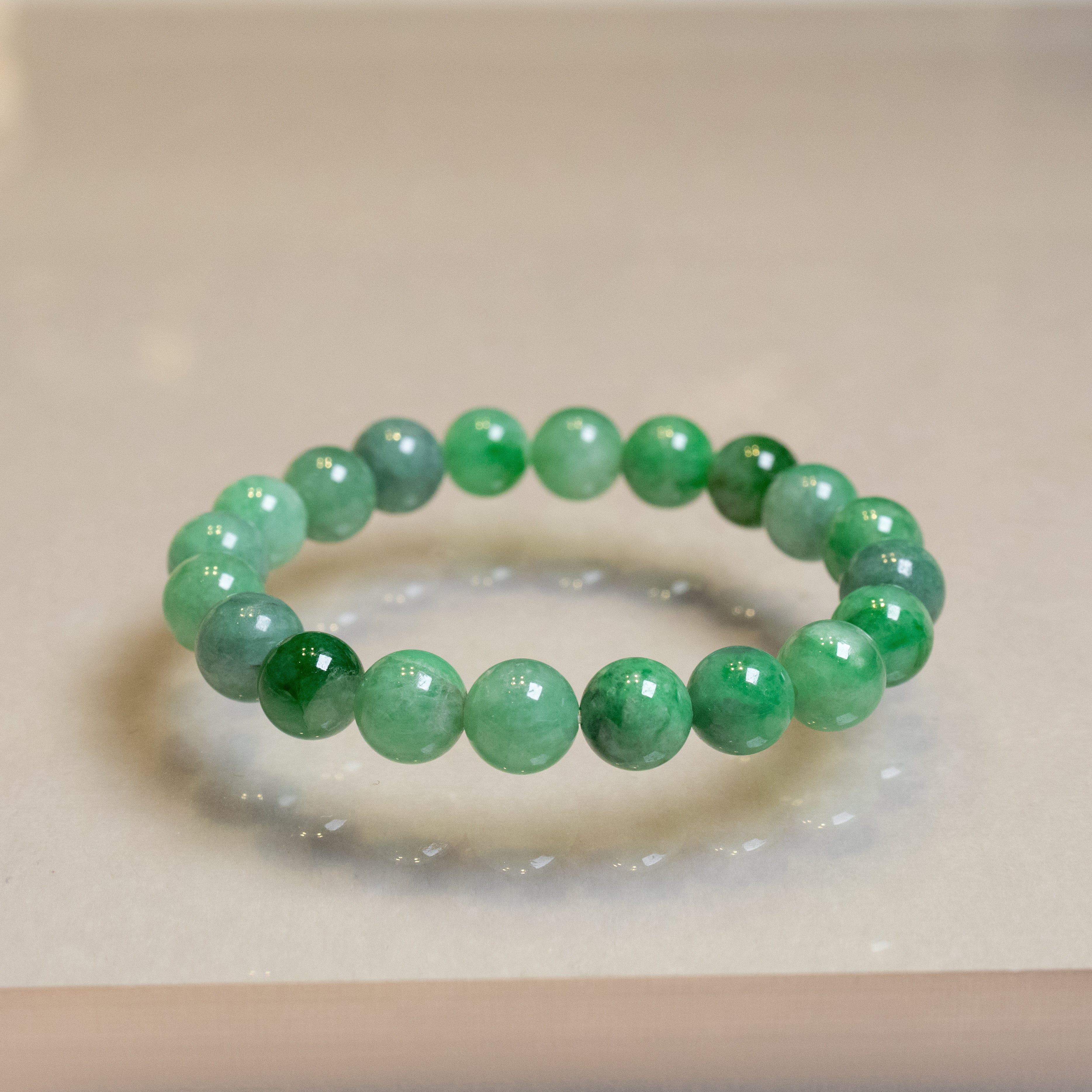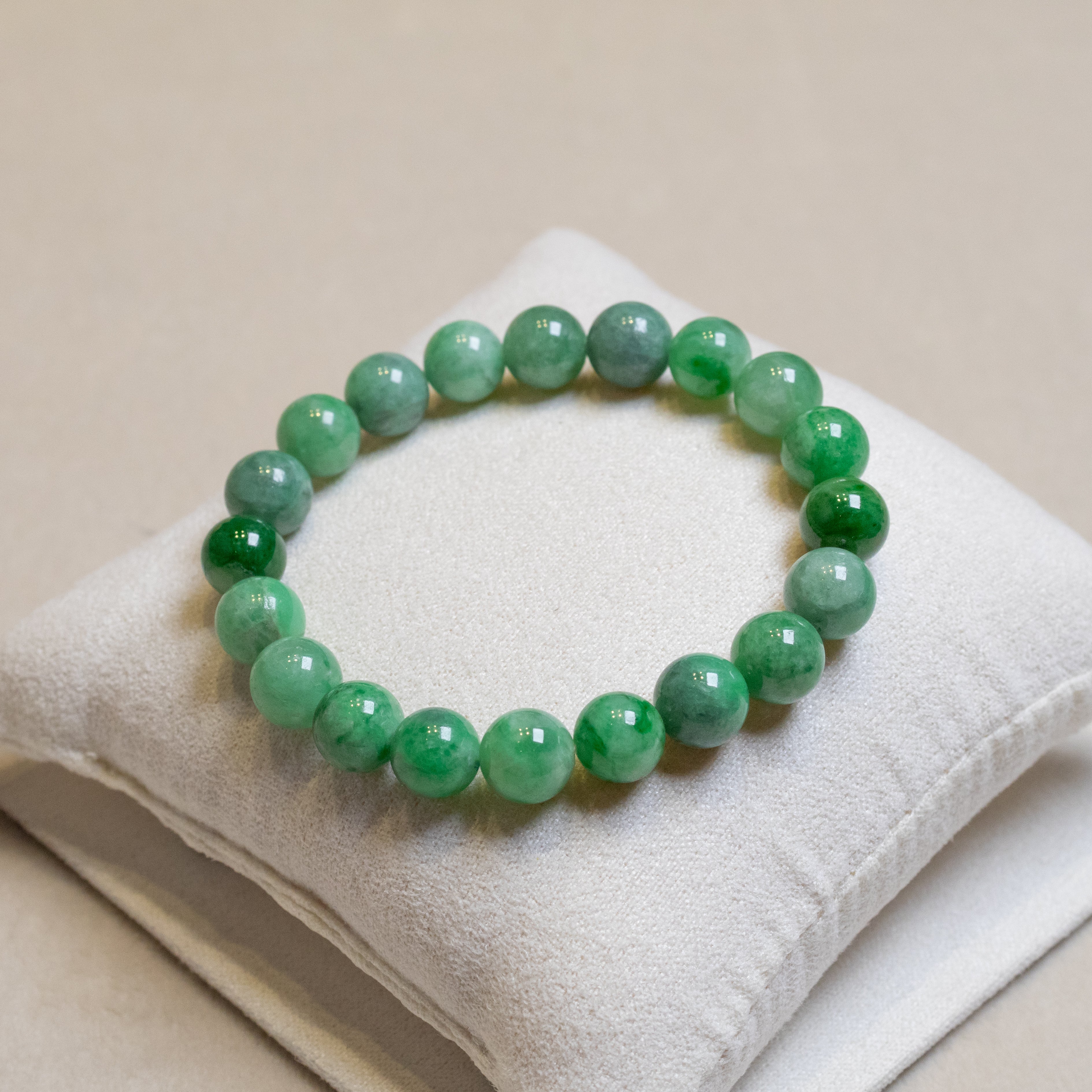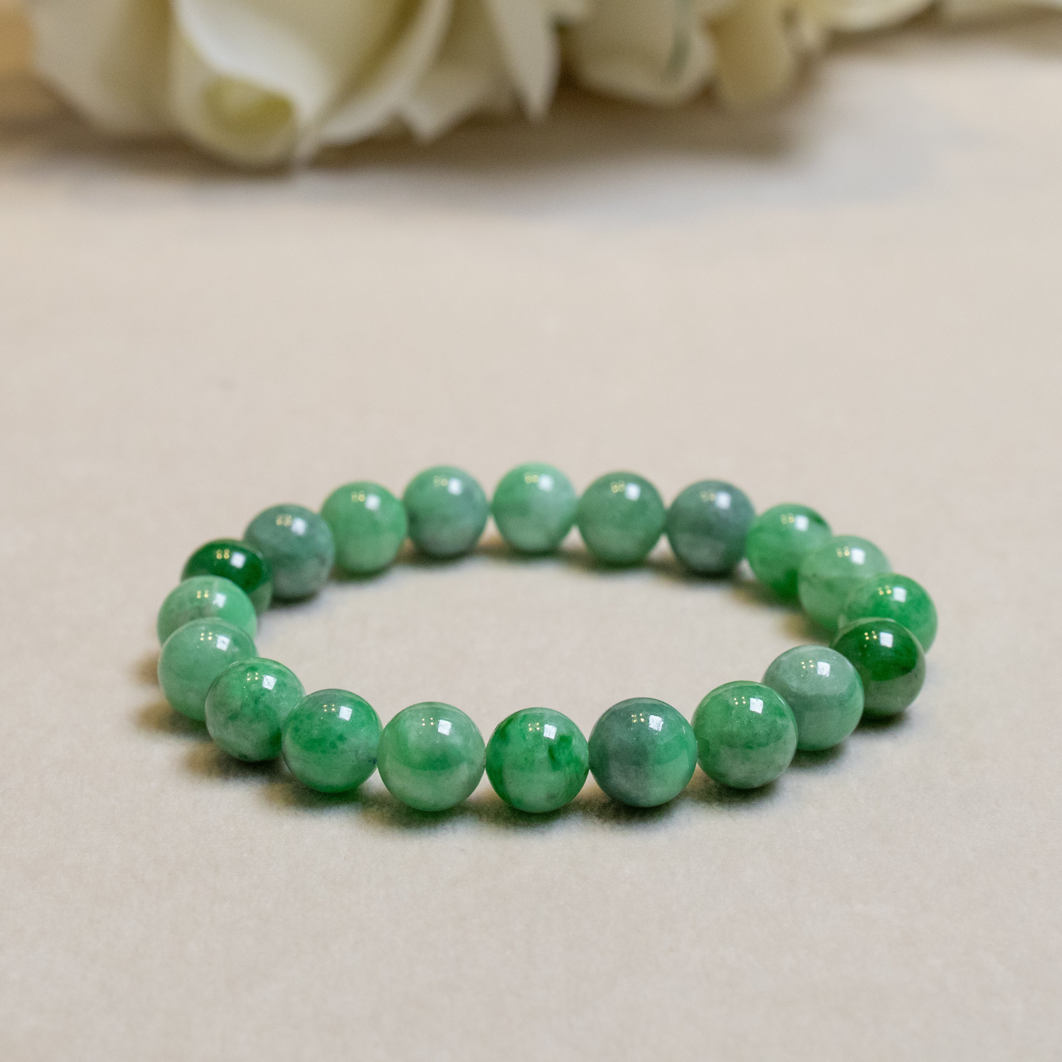Classic Intense Green Jade Beaded Bracelets - Natural Type A Burmese Jadeite, 17cm