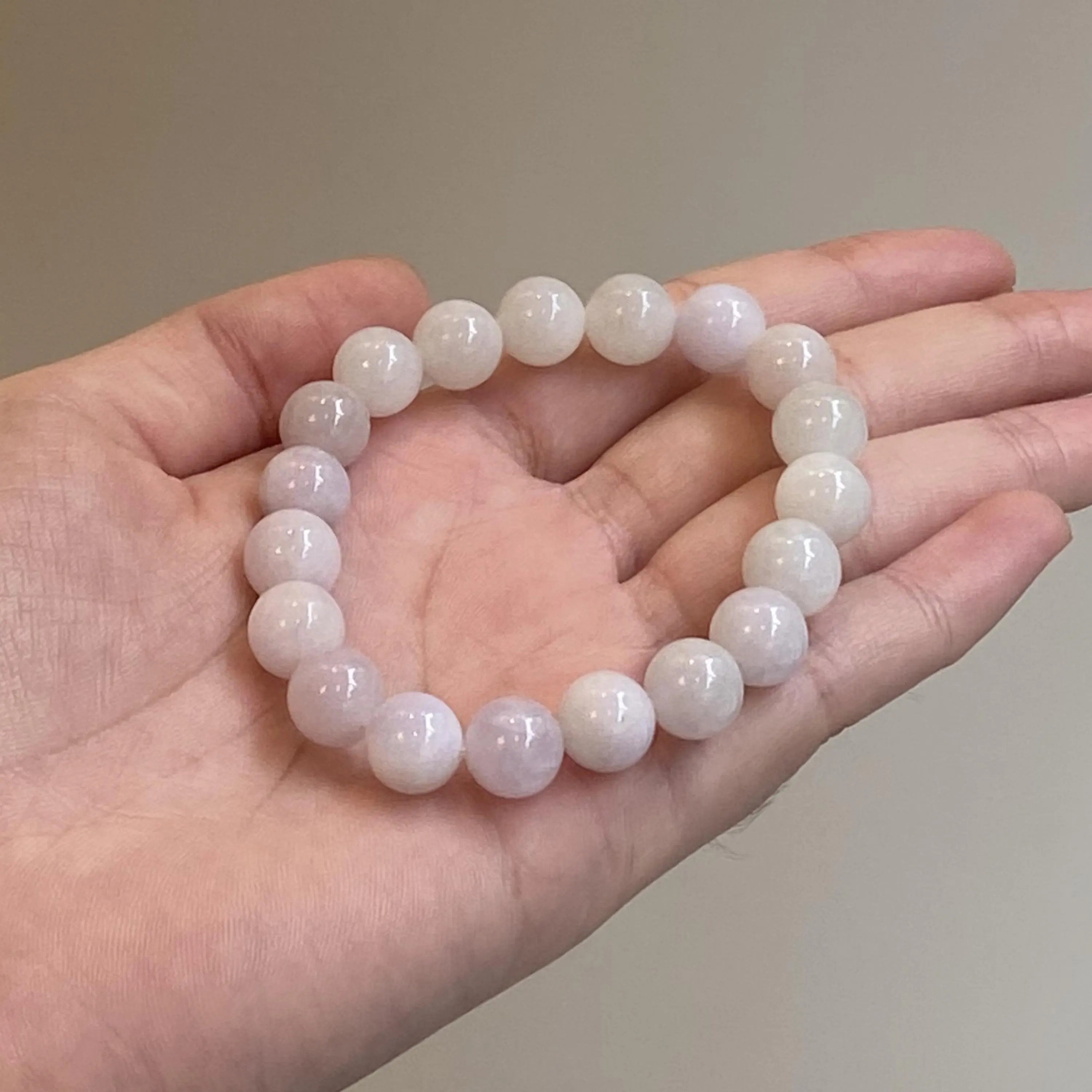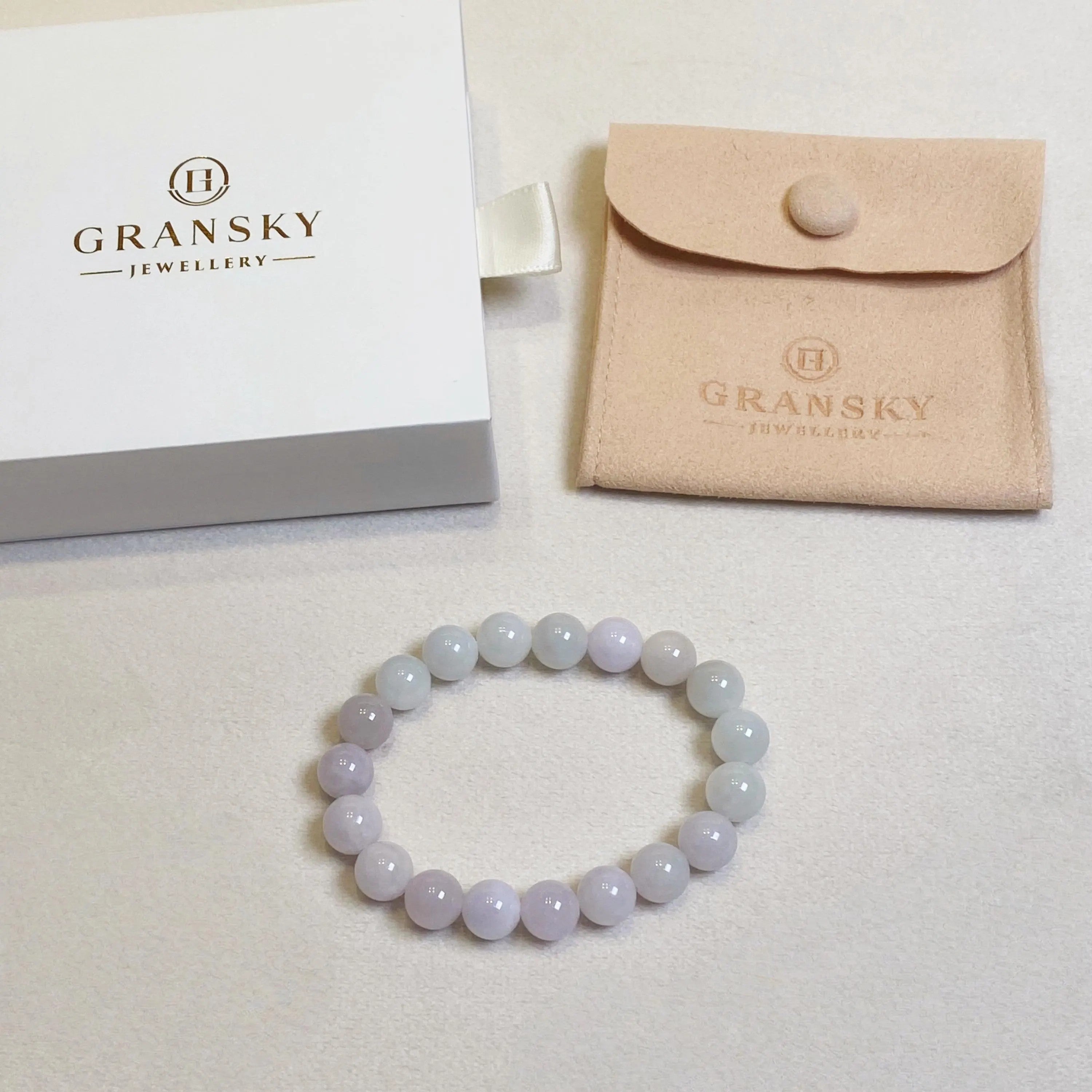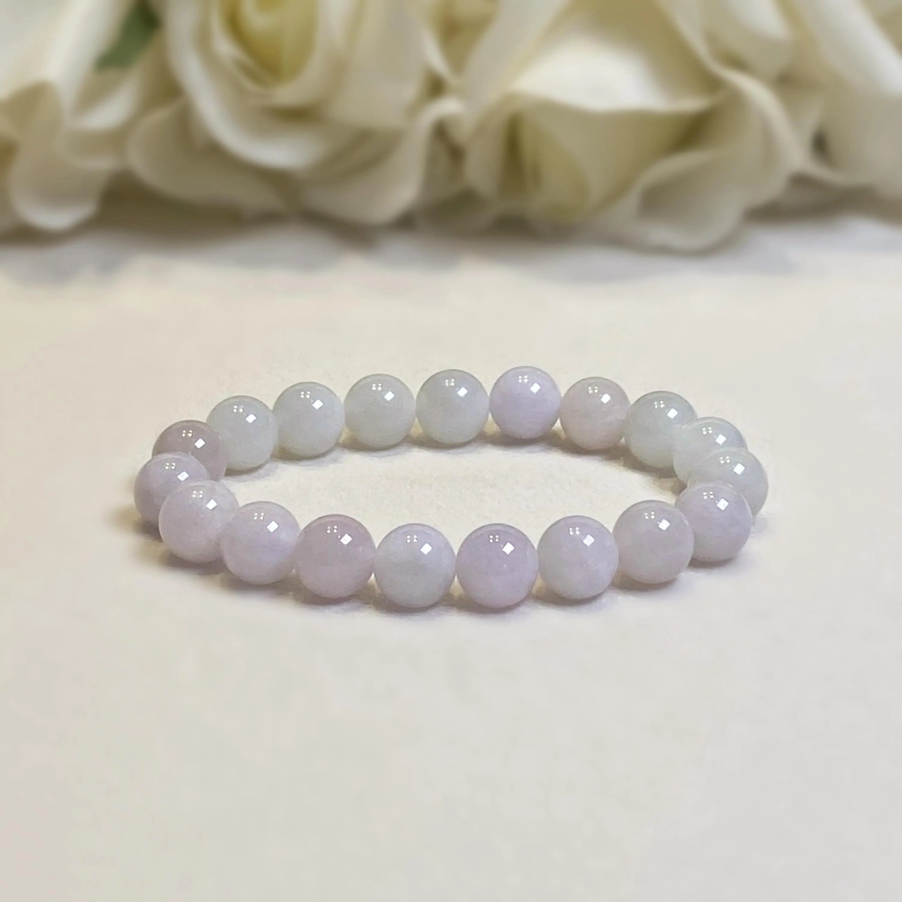 Lavender Jade Beaded Bracelet 18mm – Natural Type-A Burmese Jadeite