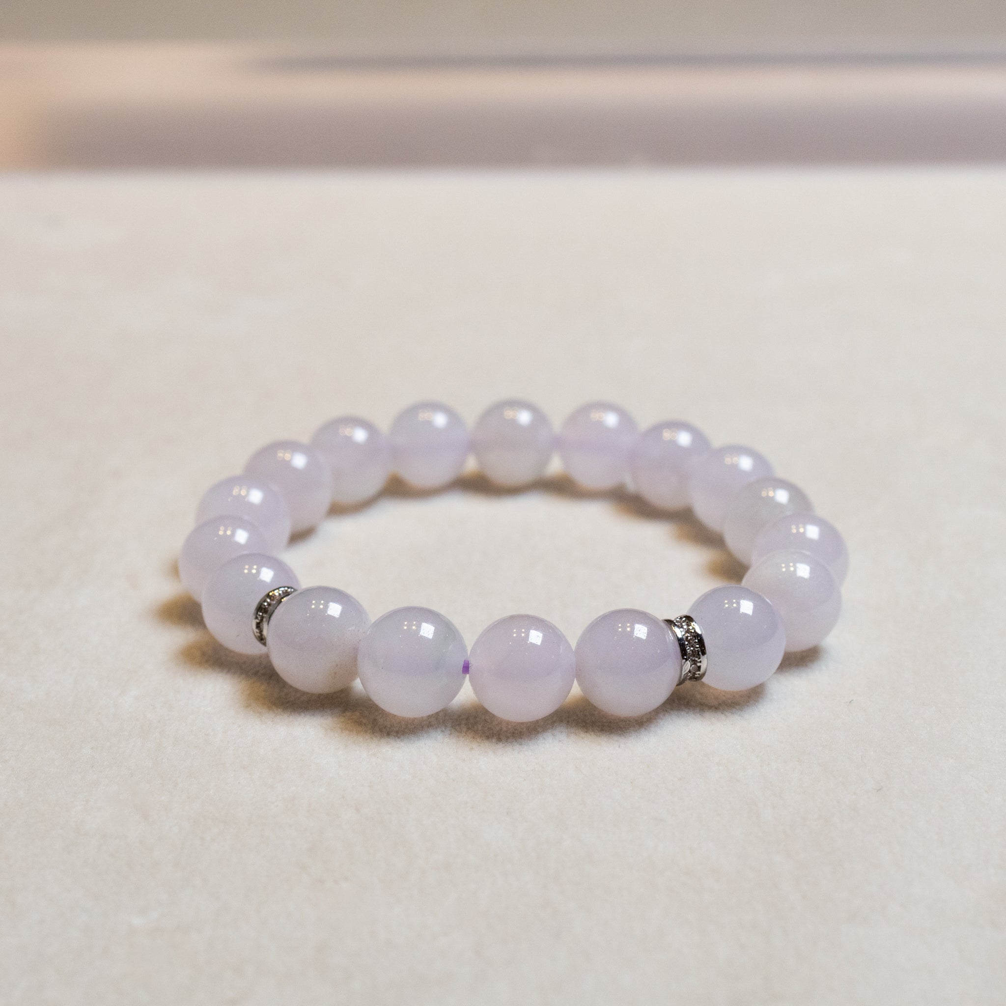 ✅This rare and exquisite jade beaded bracelet features 18 highly translucent, 9.5mm beads crafted from natural, untreated Type-A jadeite, strung on a durable elastic band. The bracelet showcases a striking and even purple hue, radiating a captivating elegance that makes it a standout accessory for any occasion. Measuring 17cm in length, it ensures a perfect fit for your wrist. The rich purple jadeite, with its exceptional clarity, exudes a unique and luxurious charm. Beyond its visual allure, this rare color of jade is believed to promote mental well-being by inspiring calmness and balance, helping to ease stress and anxiety. Ideal for those seeking serenity and distinction in their daily lives, this bracelet is a perfect fusion of breathtaking beauty and tranquil energy.