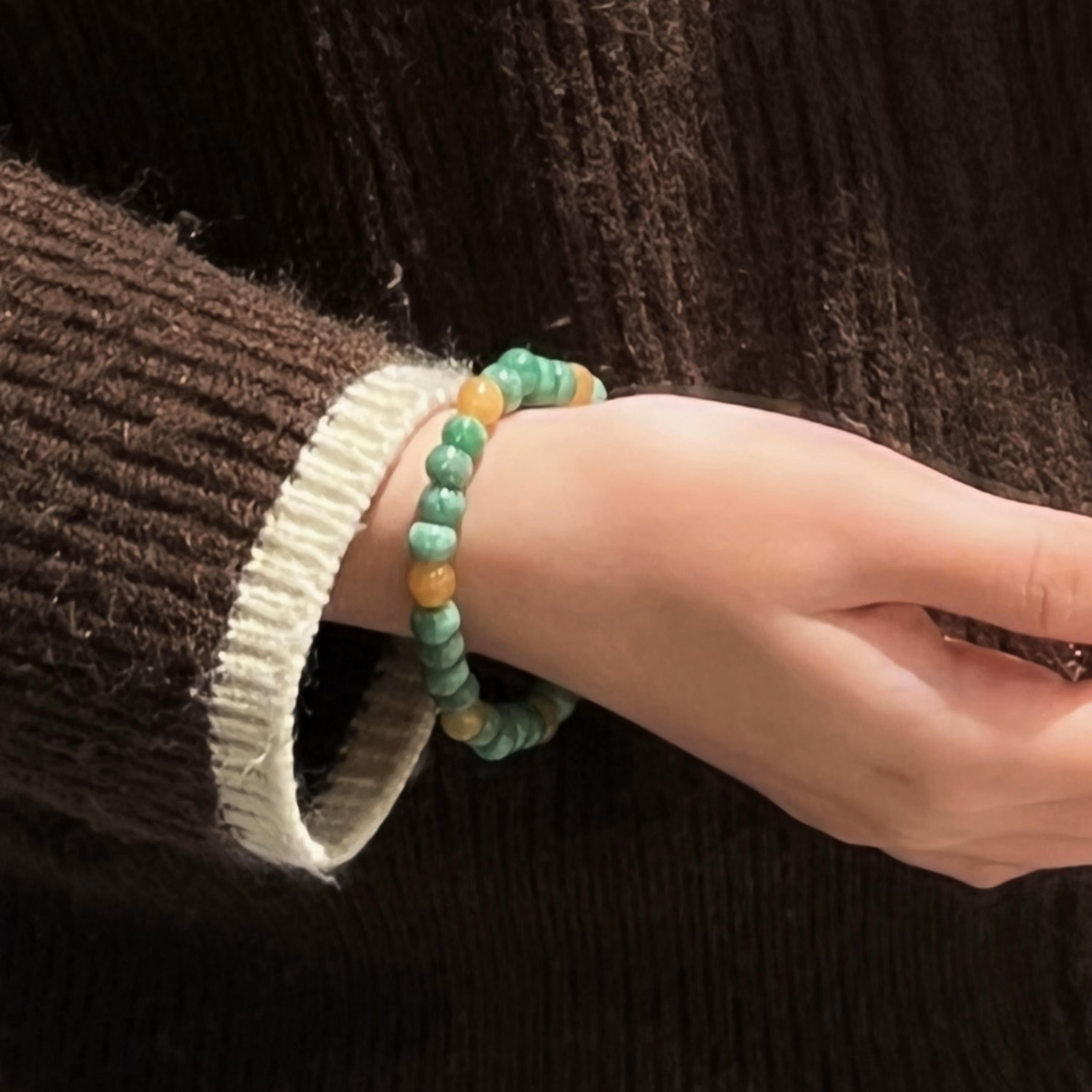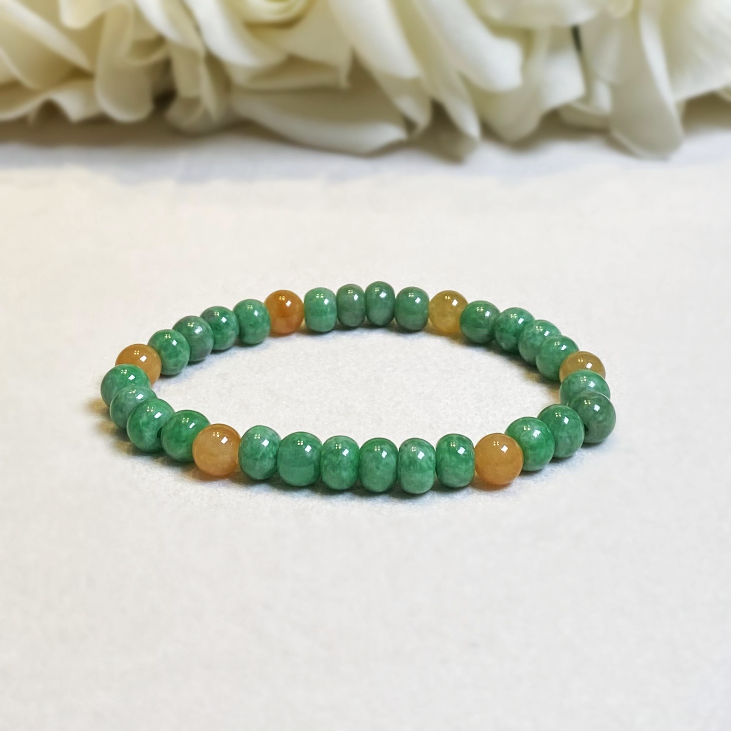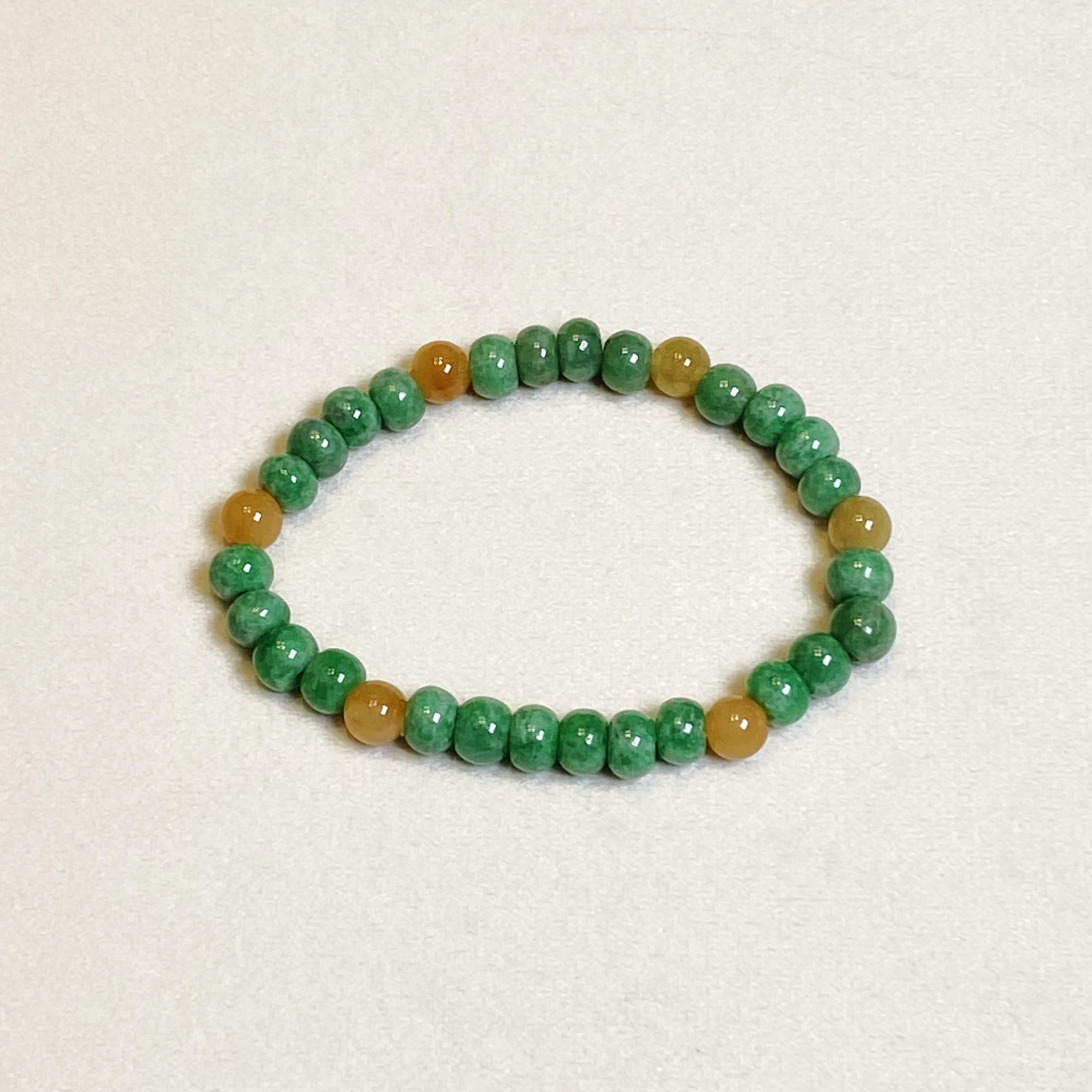 ✅A natural green and brown jade bead bracelet handcrafted from genuine Burmese Type A jadeite. This piece features beautifully polished beads in green and brown tones, offering a harmonious blend of colors unique to natural jade. Strung on a durable elastic band, this 18cm bracelet is comfortable for daily wear and carries the timeless protective energy jade is known for.