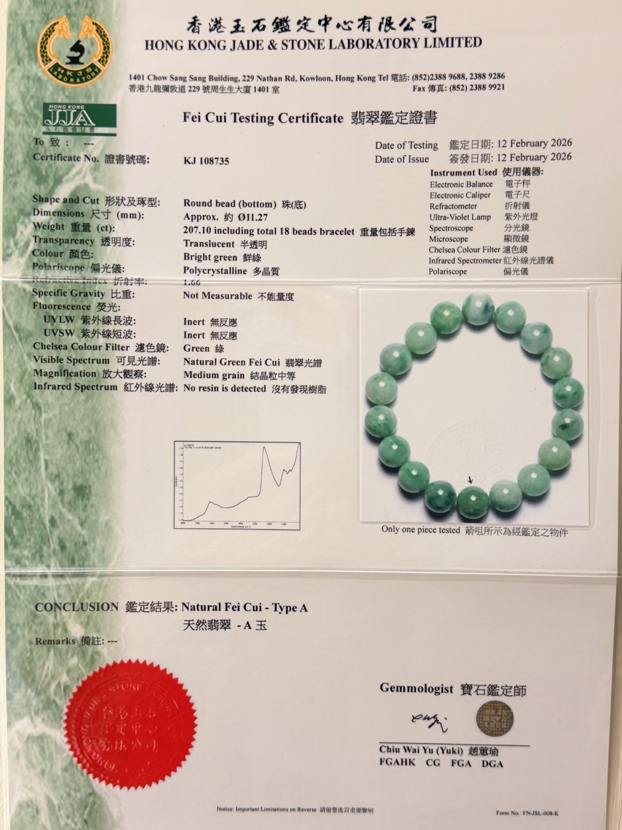 All our jade materials are tested and lab certified