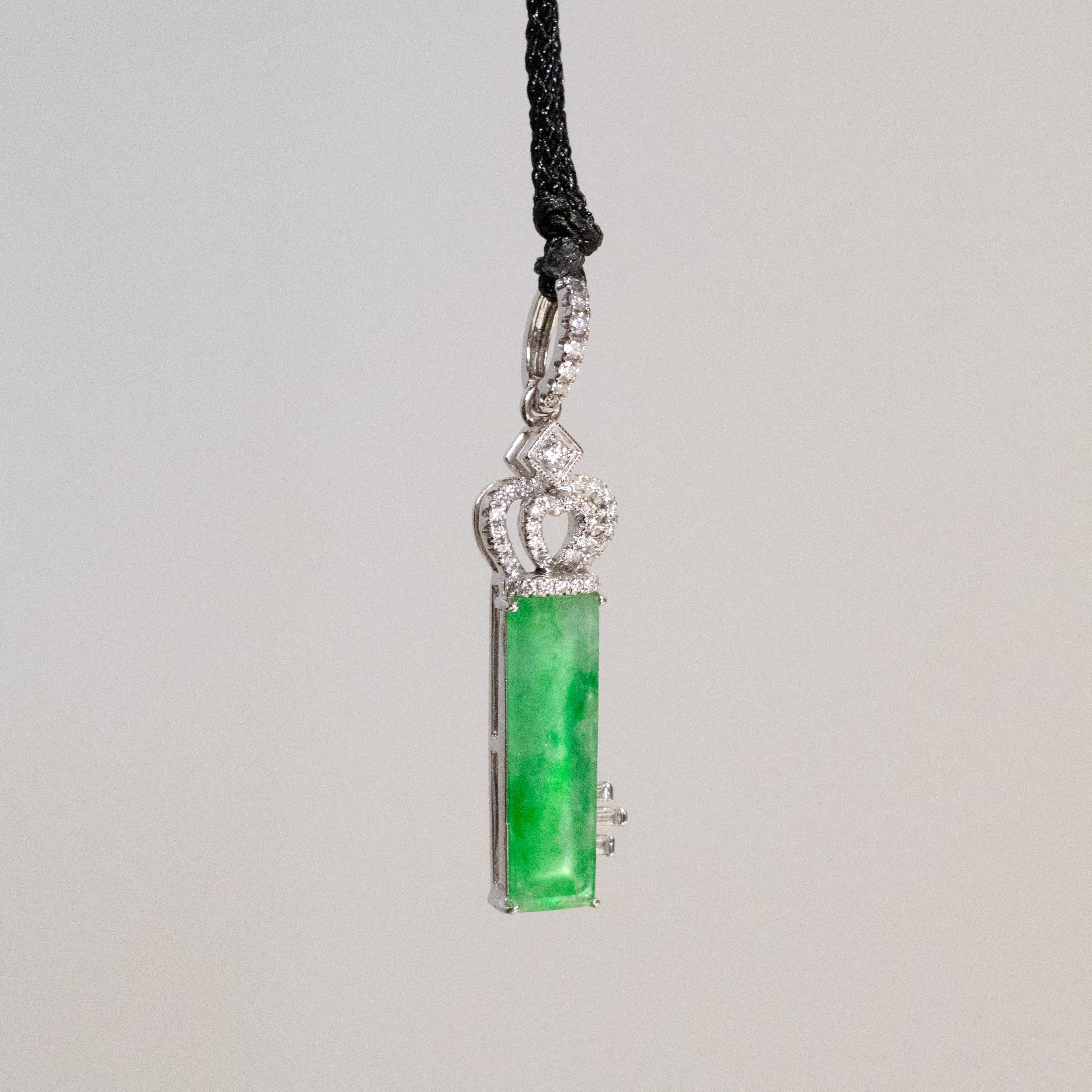 Imperial Green Jade Block Pendant 18K Gold & Diamonds – Natual Type-A Jadeite