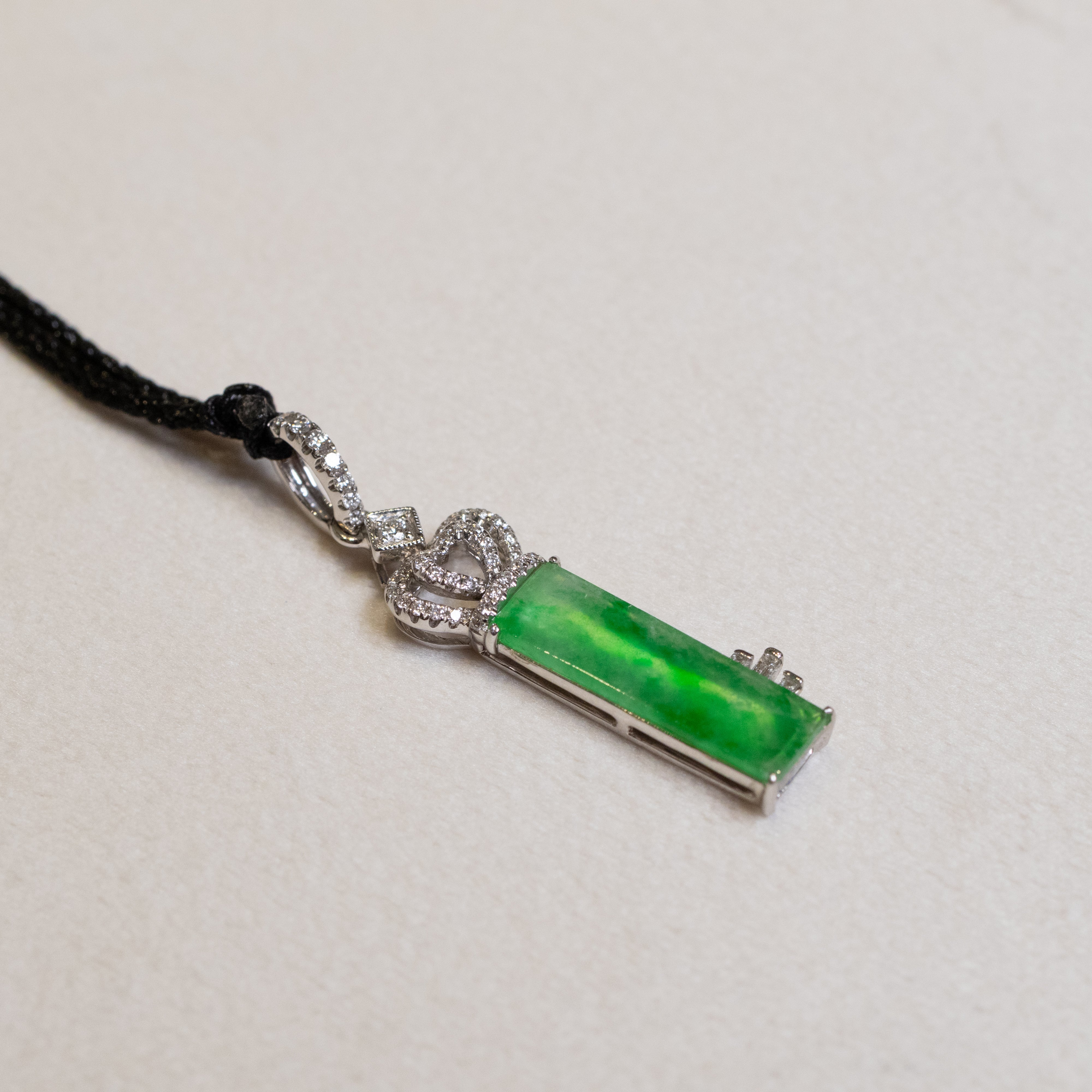 ✅This exquisite Rectangular-shaped pendant showcases natural untreated Type-A Burmese jadeite in a vibrant apple green hue, symbolizing harmony and prosperity. Each piece is one-of-a-kind, with rare full color distribution in Burmese jadeite.