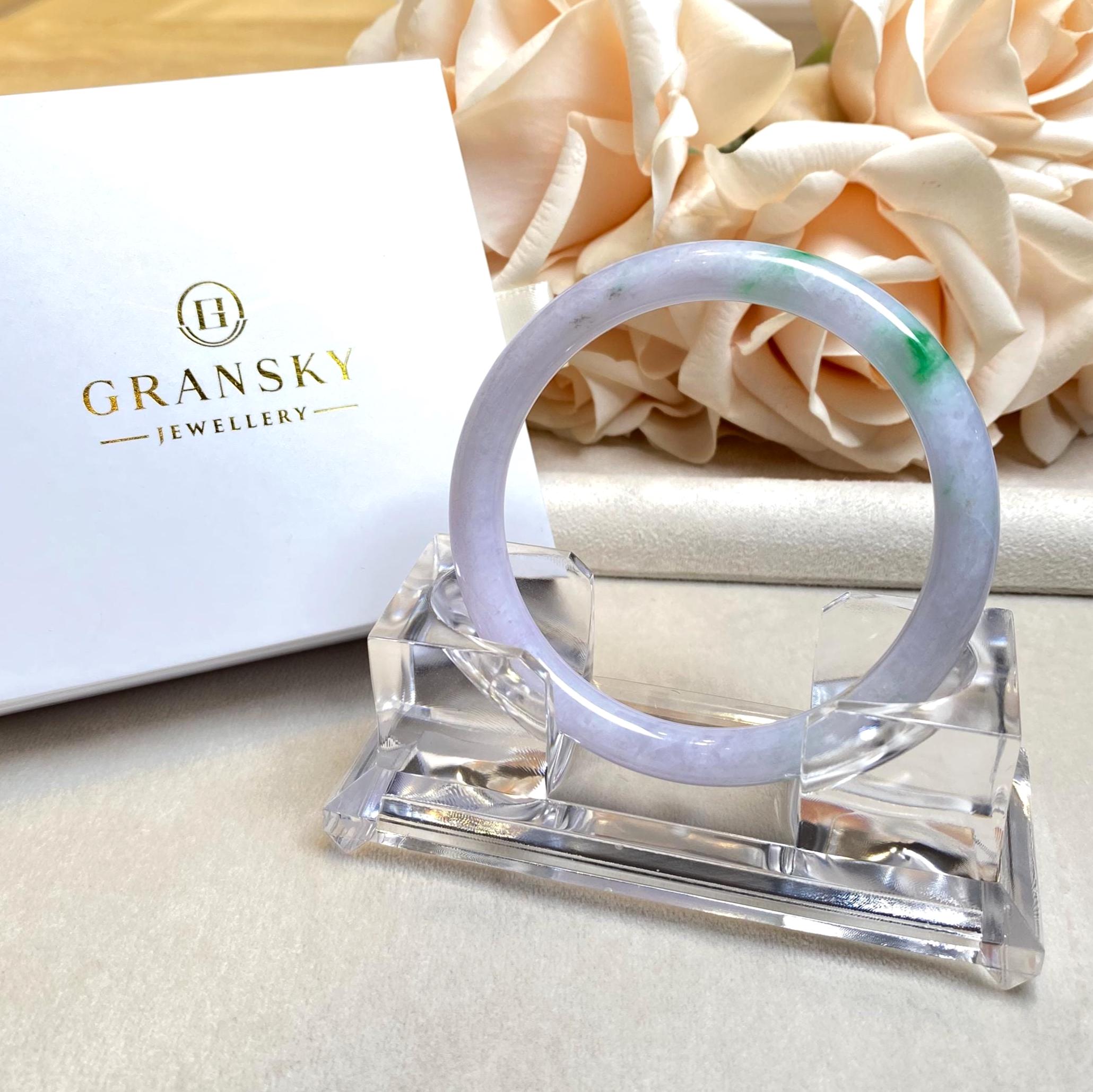 Dainty Purple Jadeite Bangle with Vivid Green, 56.5mm Inner Diameter