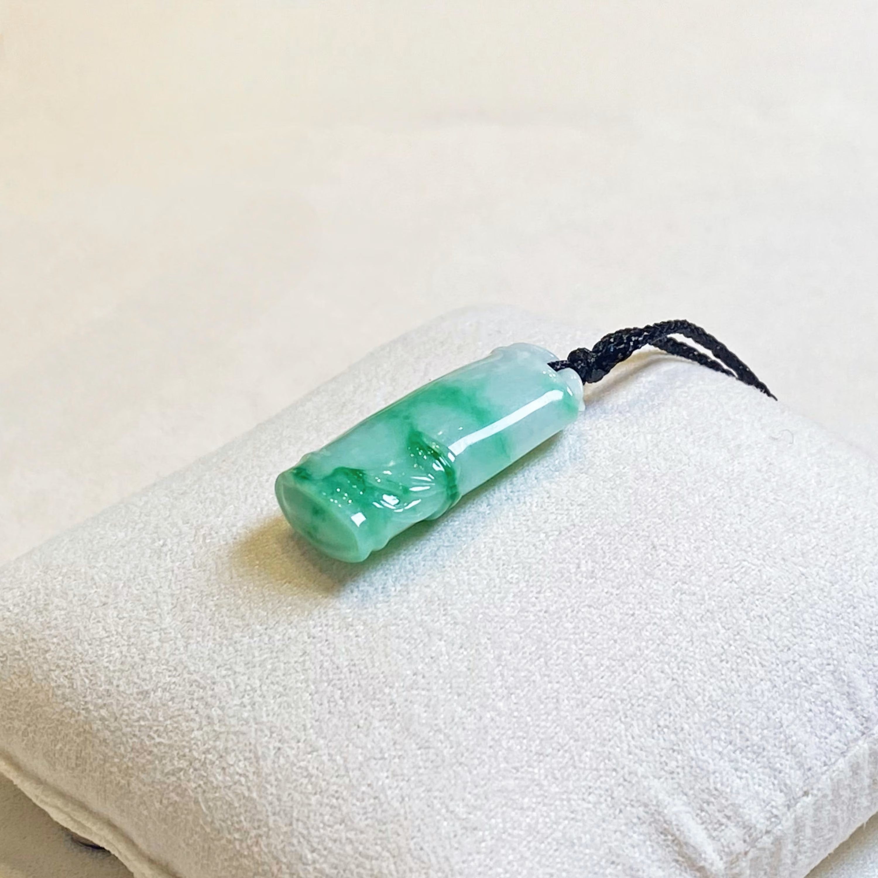 Natural Green Burmese Jadeite Bamboo Pendant
