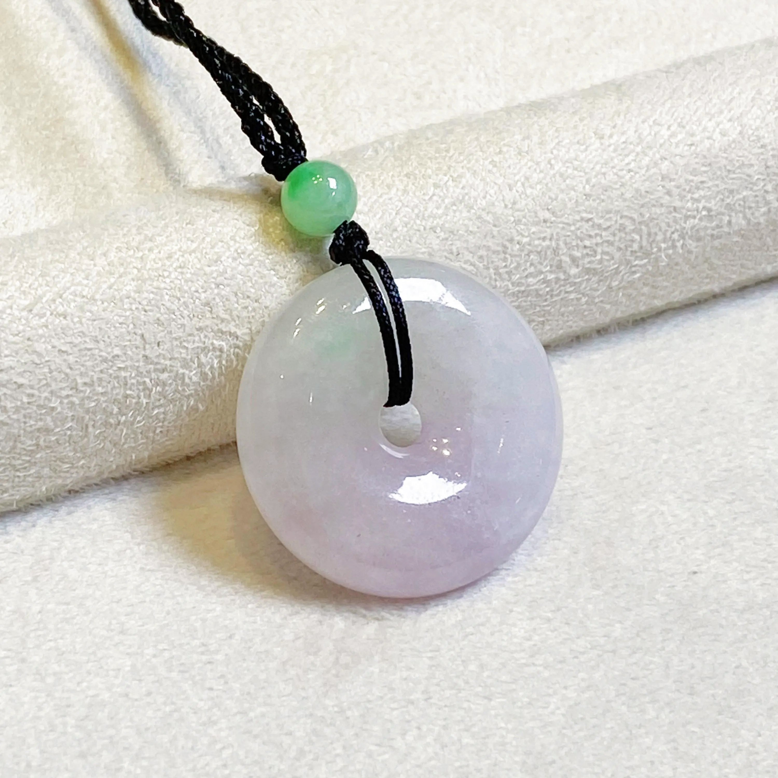 ✅This sweet and sophisticated natural Type-A Burmese jadeite purple jade donut pendant necklace instantly elevates any look. The handcrafted 25 mm wide × 6 mm thick round donut showcases a rich, vibrant imperial purple tone with the translucent glassy glow that serious jade collectors love.