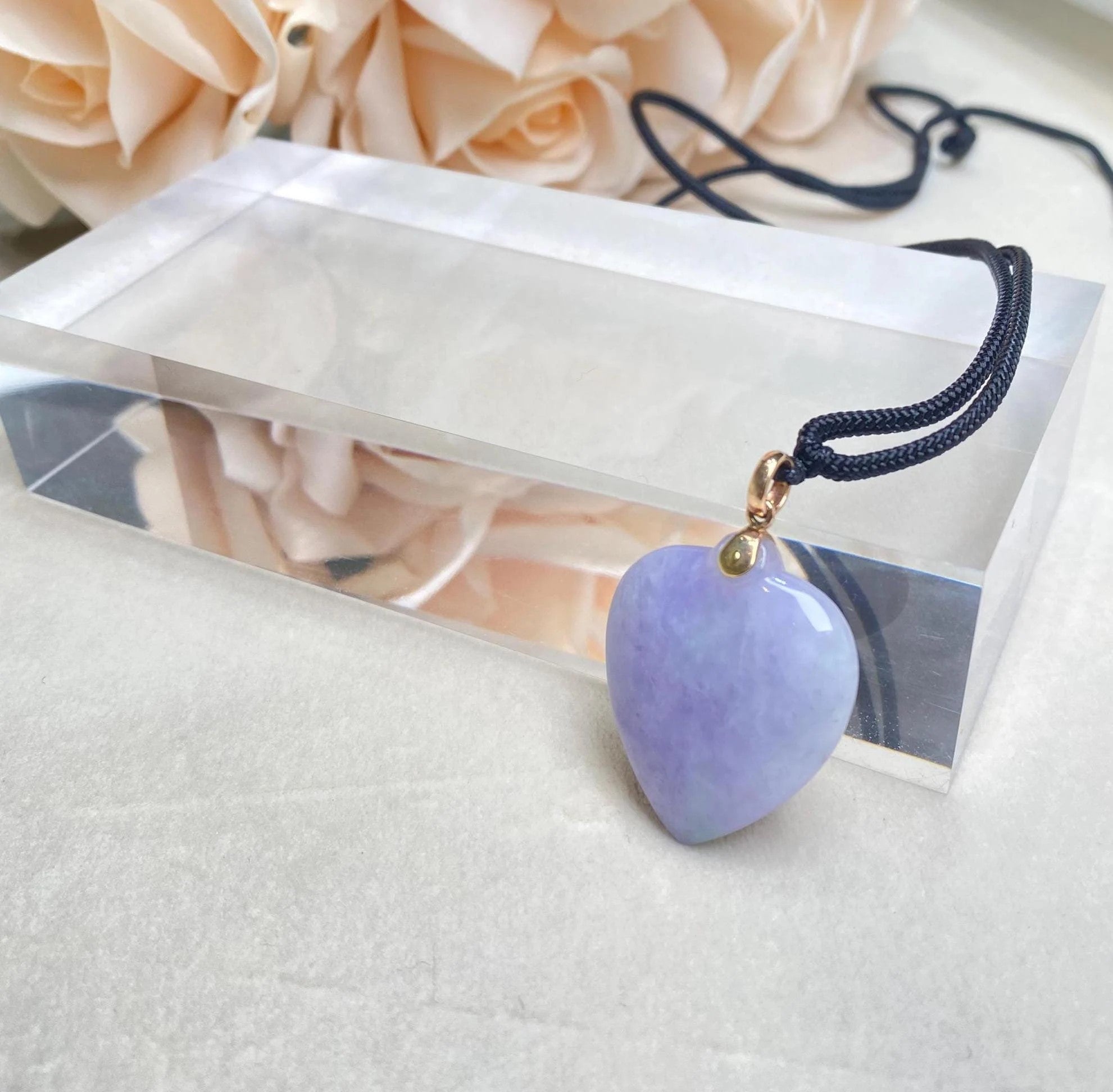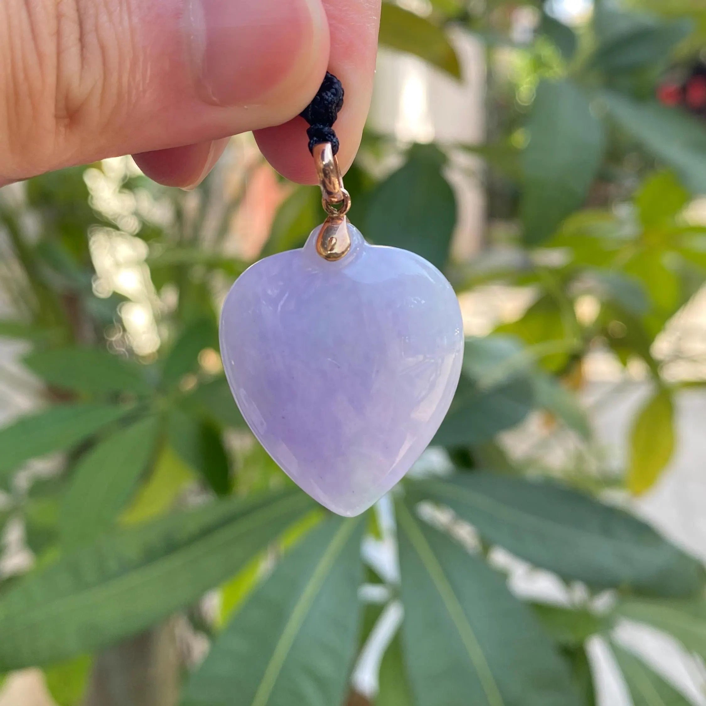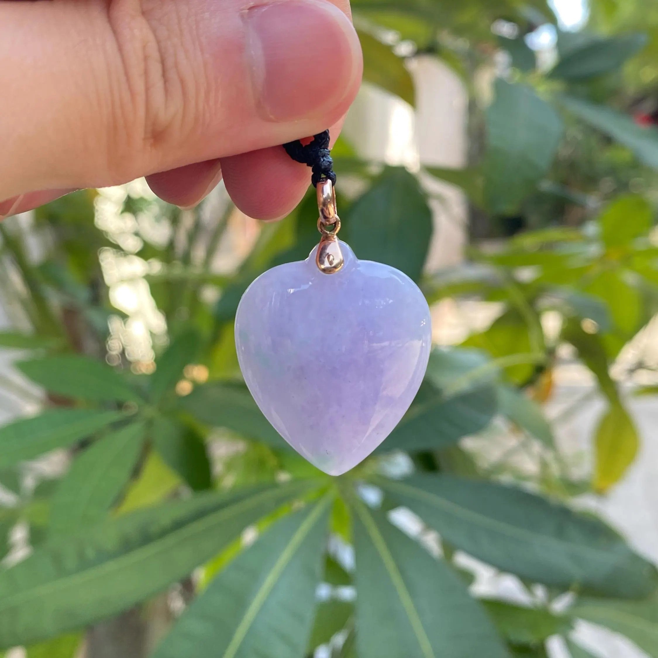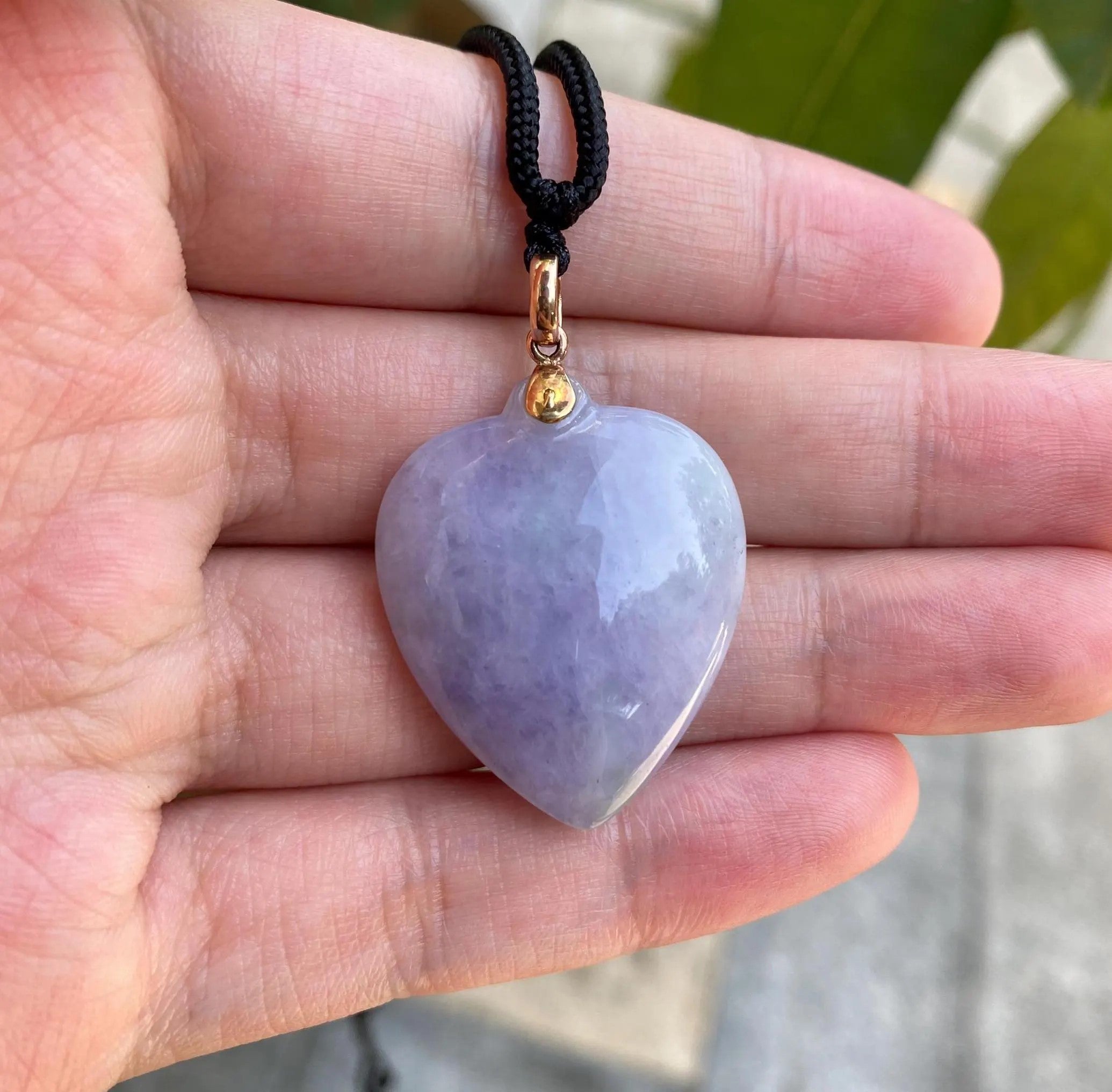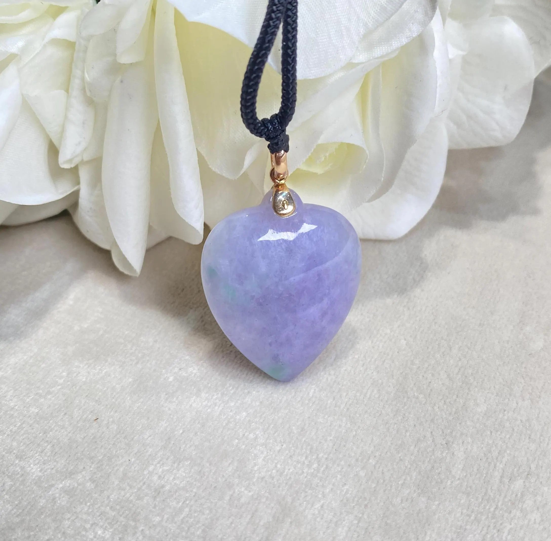 ✅This breathtaking heart-shaped pendant features an intense deep purple natural genuine Burmese jade, radiating rich color and captivating beauty, perfectly set in a luxurious 18k yellow gold bail for a warm, elegant glow. Known for its calming properties, purple jade promotes emotional healing and balance, making this stunning piece an ideal accessory for everyday wear or special moments. Not only does this deep purple jade pendant enhance your style with its vibrant hue, but it also serves as a meaningful reminder of love and connection, making it the perfect gift for someone you cherish or a cherished addition to your own jewelry collection.