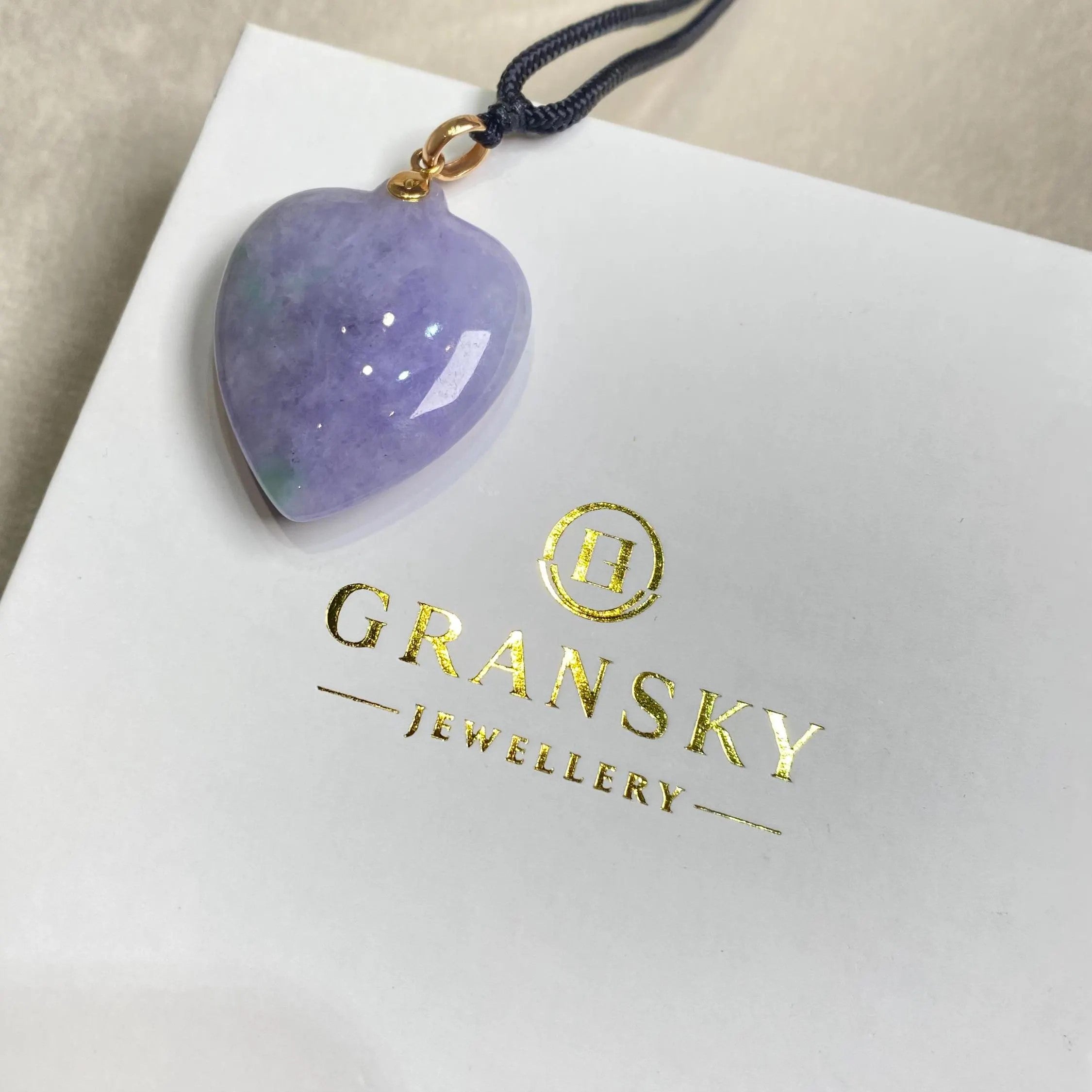 Deep Purple Jade Heart Pendant in 18k Yellow Gold Bail - Natural Burmese Jade Jewelry