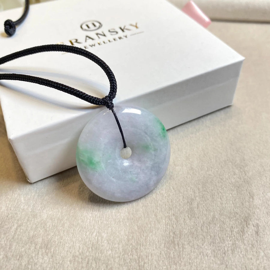 Elegant Purple Round Jade Disc Pendant with Black Adjustable String – Timeless & Versatile