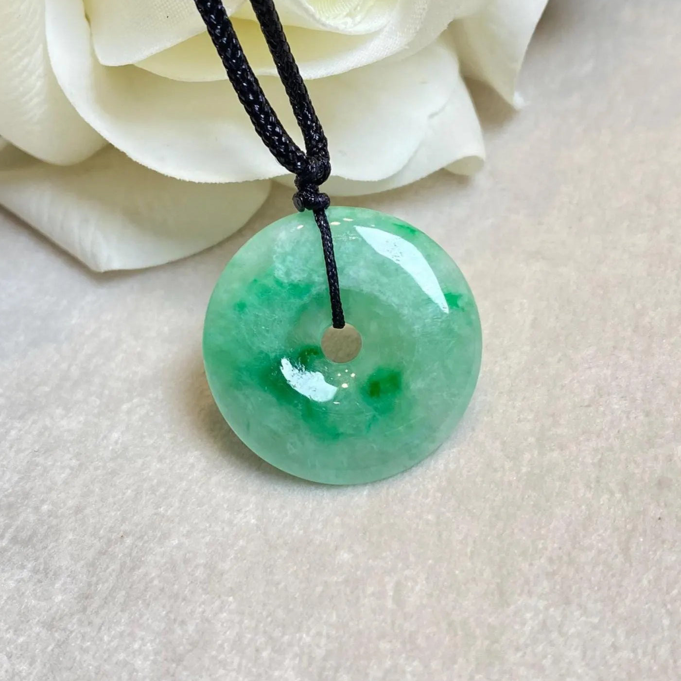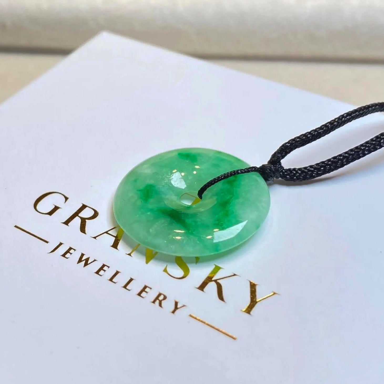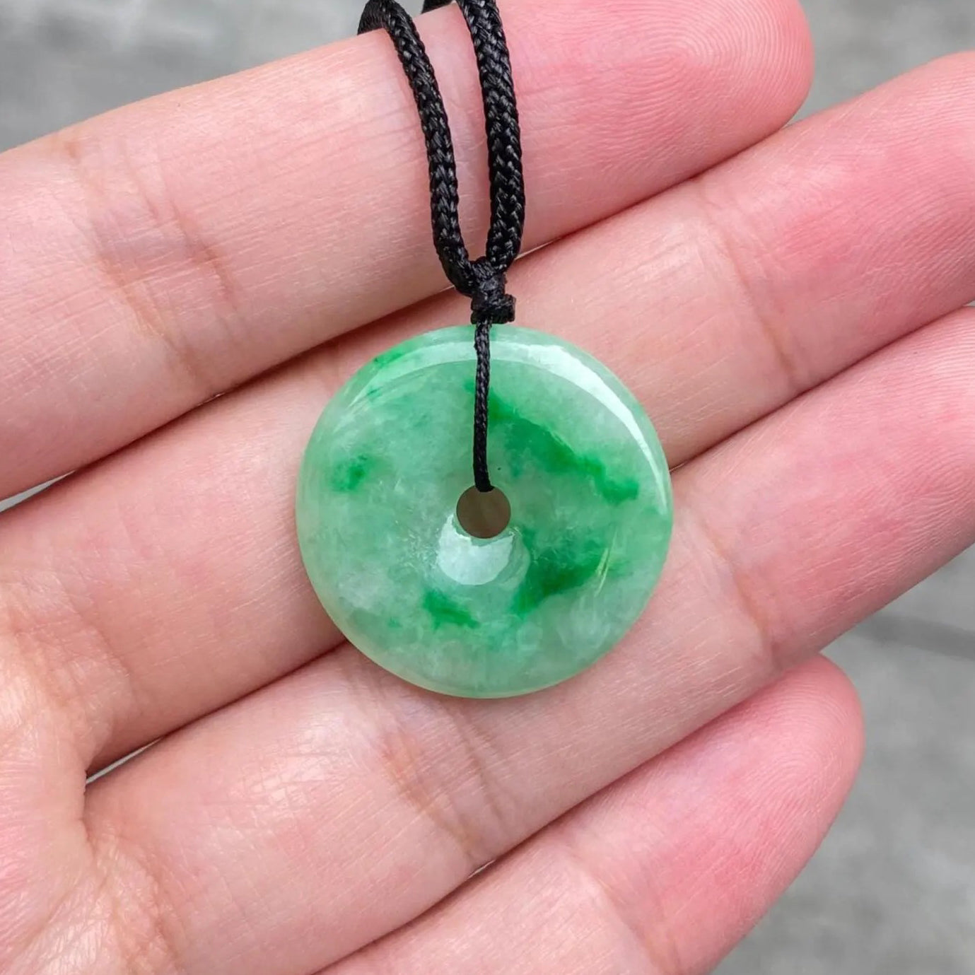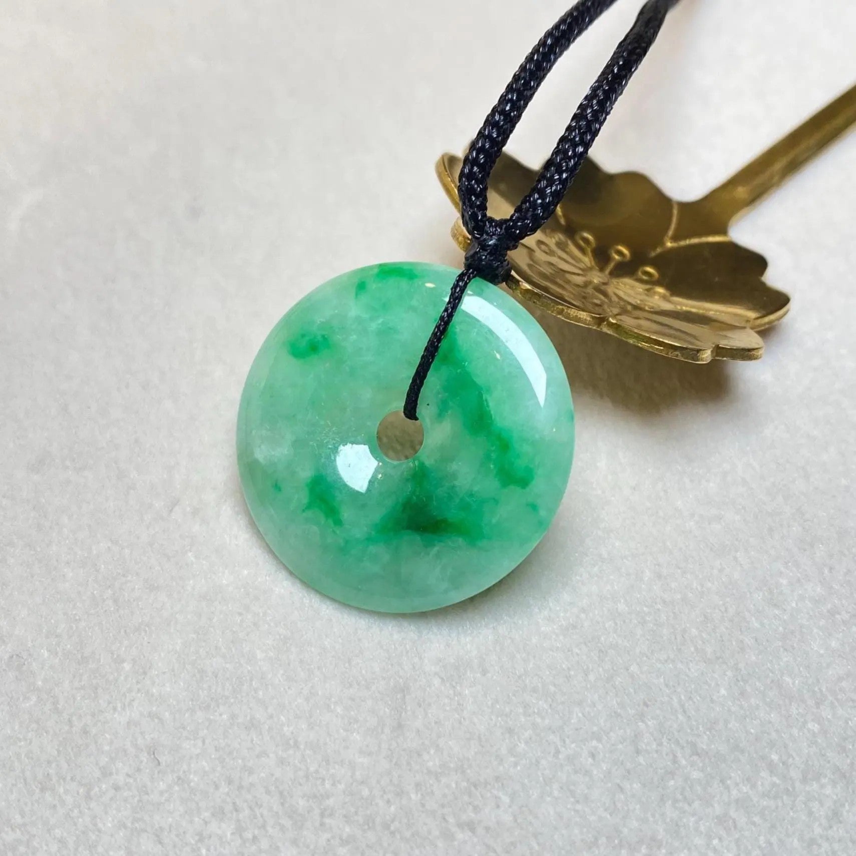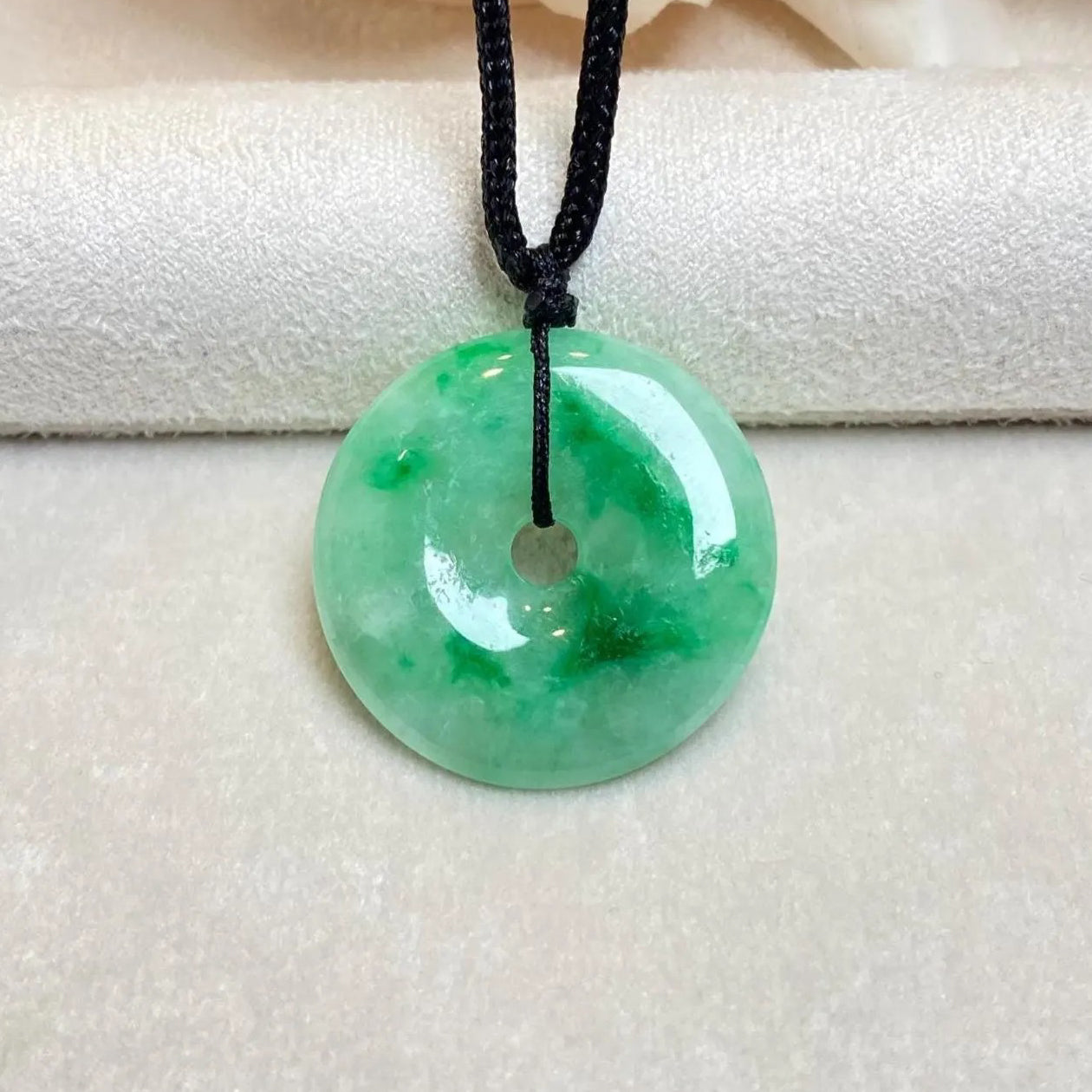 ✅This Apple Green Jadeite Disc Pendant Necklace merges modern simplicity with vibrant charm. The vivid apple green jadeite is skillfully carved into a smooth, round disc, measuring 24.0mm in width. Strung on an adjustable black cord, it ensures a comfortable, versatile fit for everyday wear. Ideal for casual or special moments, this pendant brings a fresh pop of style. The natural jadeite’s lively hue makes it a striking gift or a standout addition to any jewelry collection.