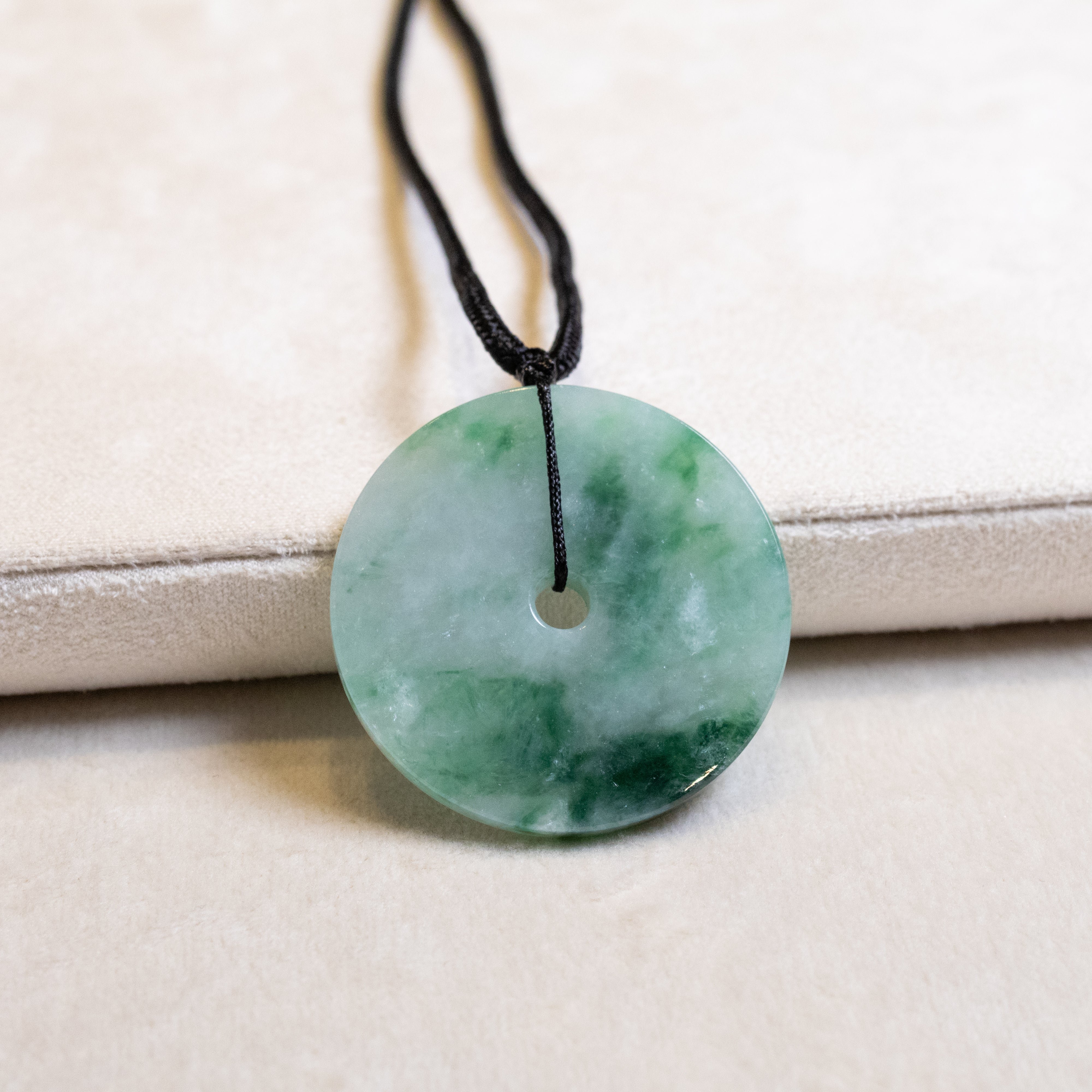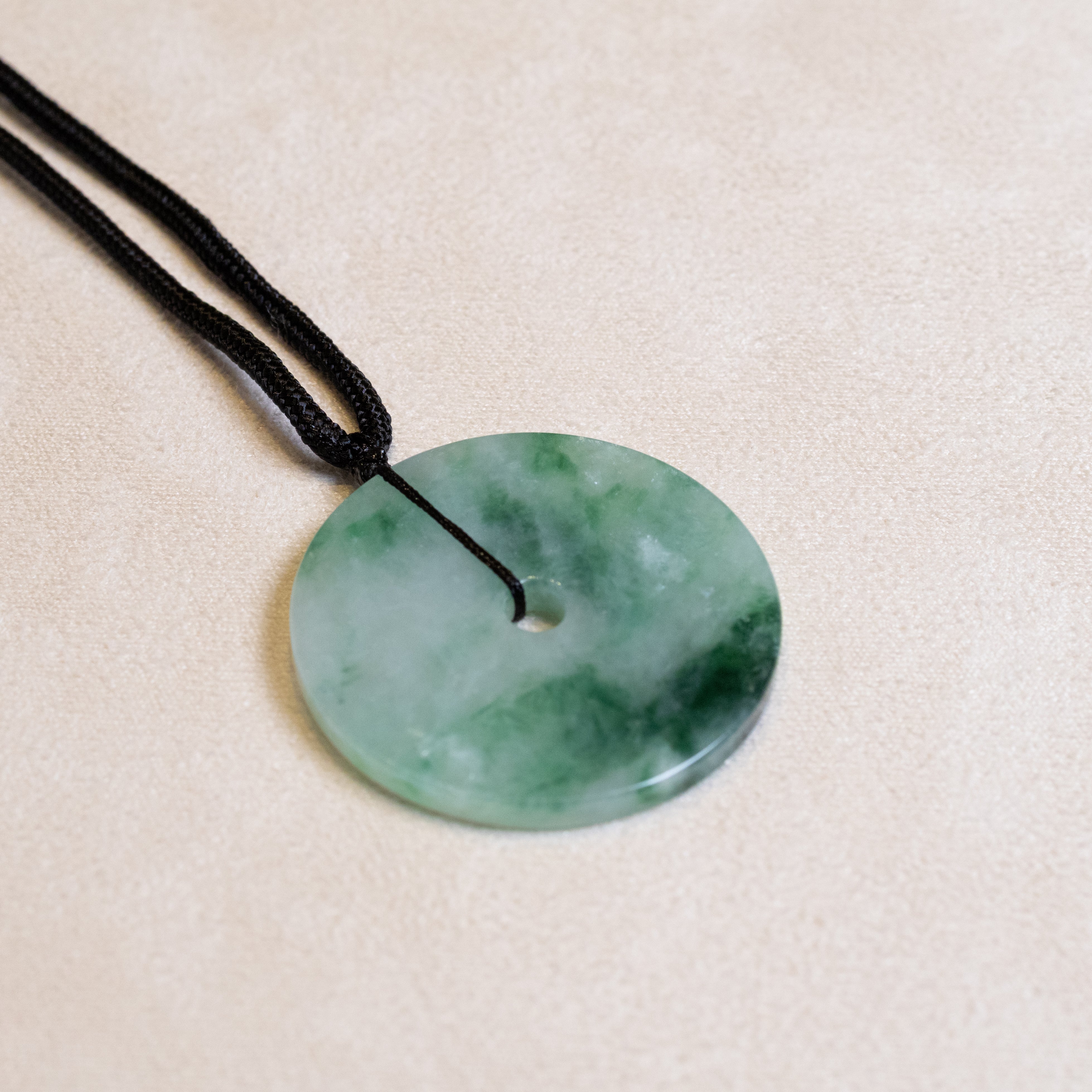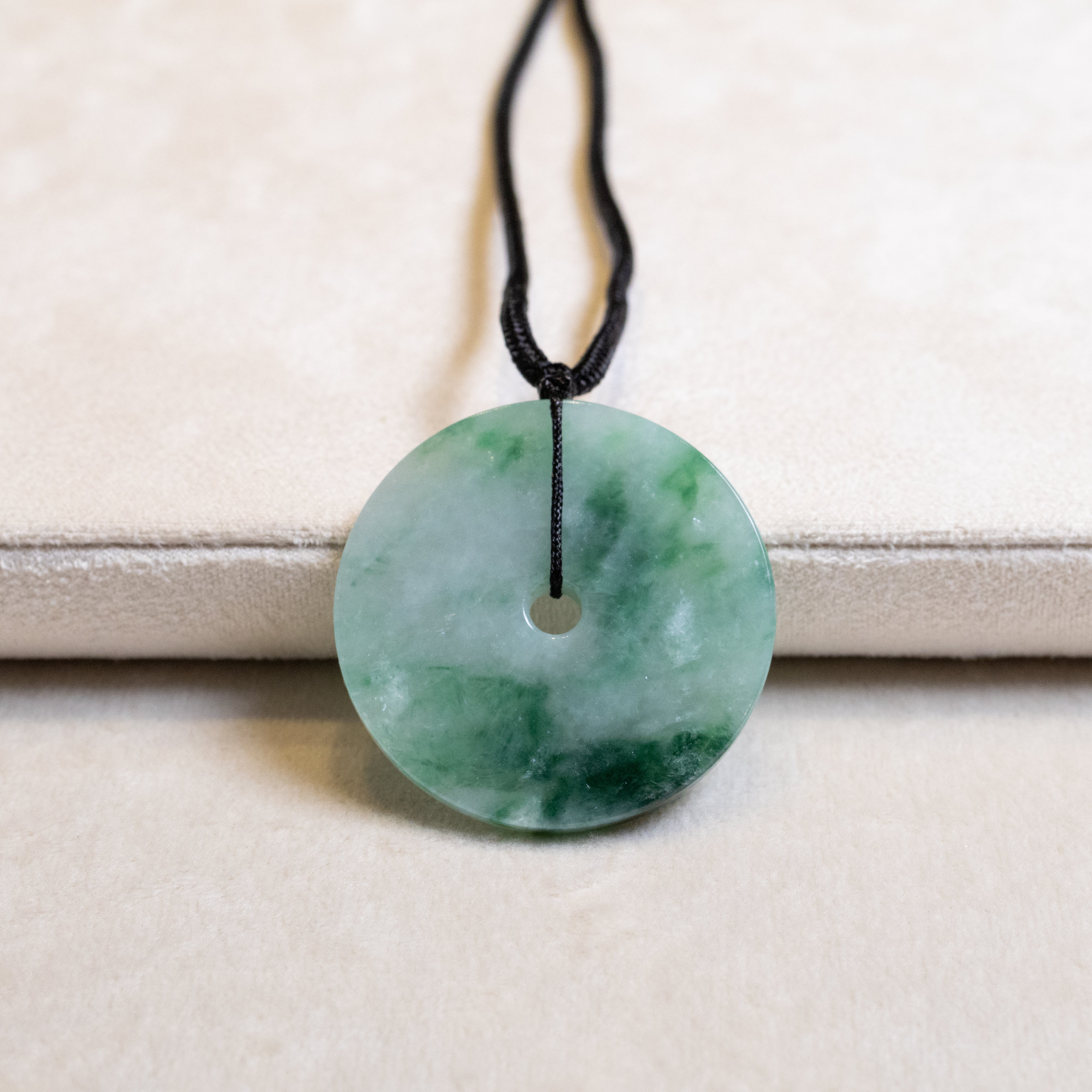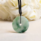 Gransky Gradient Green Natural Jade Round Disc Pendant Necklac