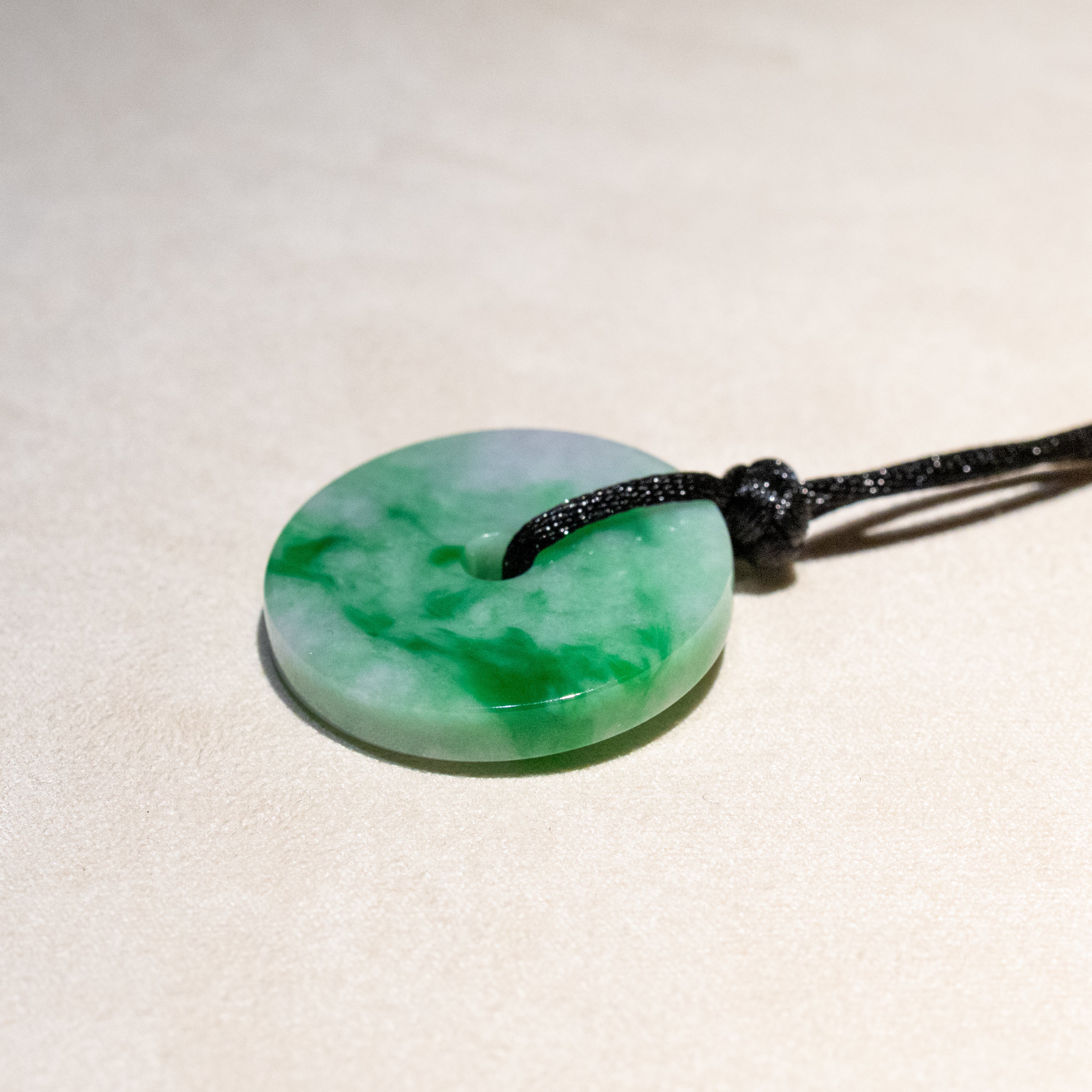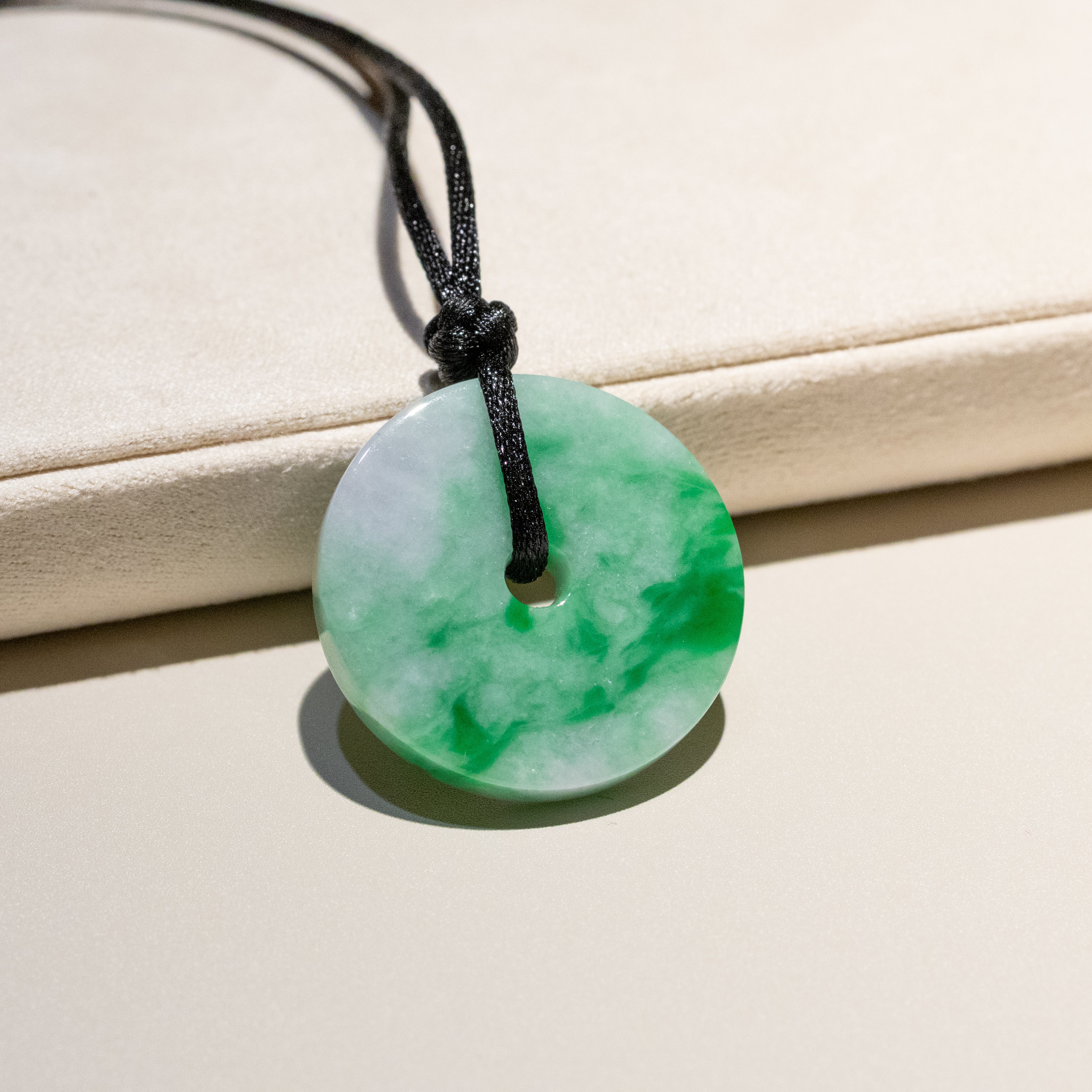 Intense Green Jade Donut Pendant Necklace 28.5mm - Natural Grade A Jadeite