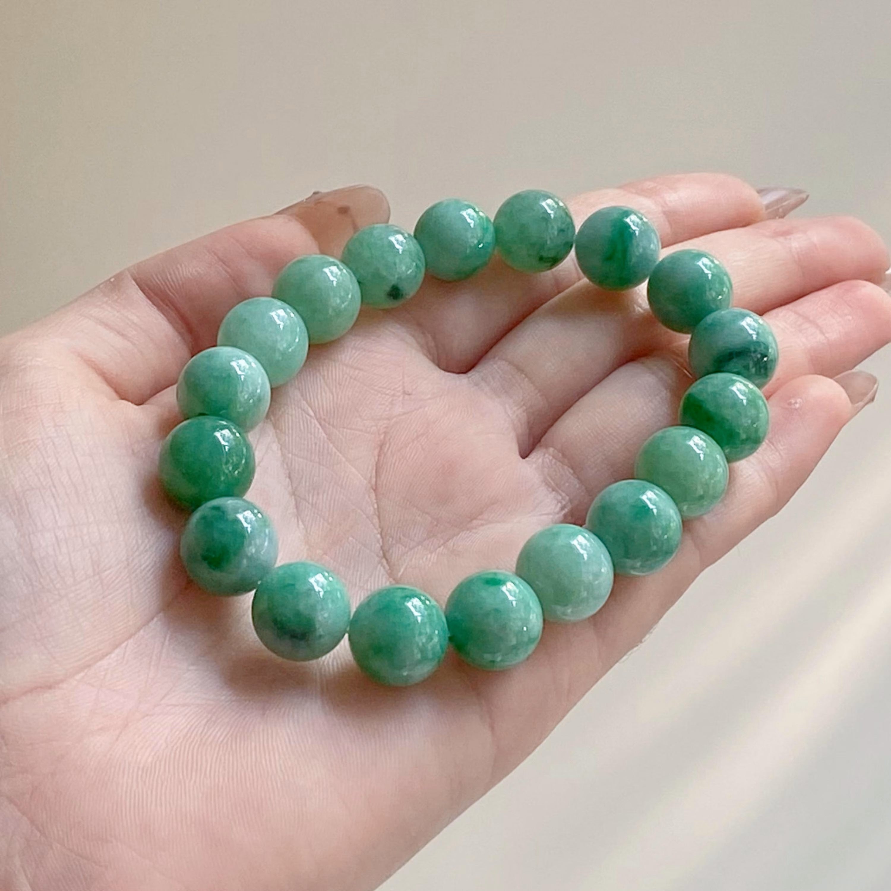 Imperial Green Jade Bead Bracelet 19.5cm – Type A Jade Handcrafted Jewelry