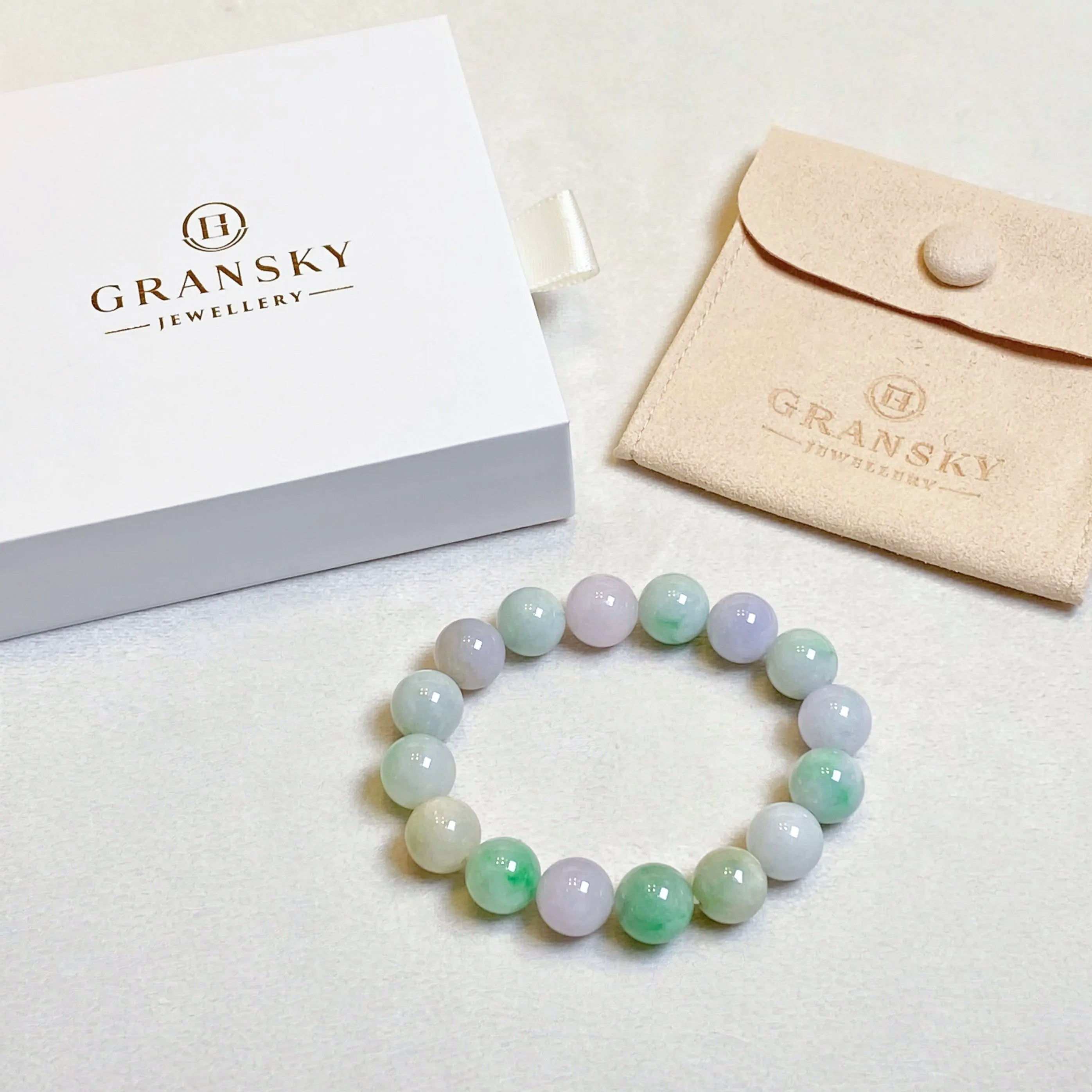 Gransky Jewellery Multi-Color Type-A Burmese Jadeite Beaded Bracelet - 18cm