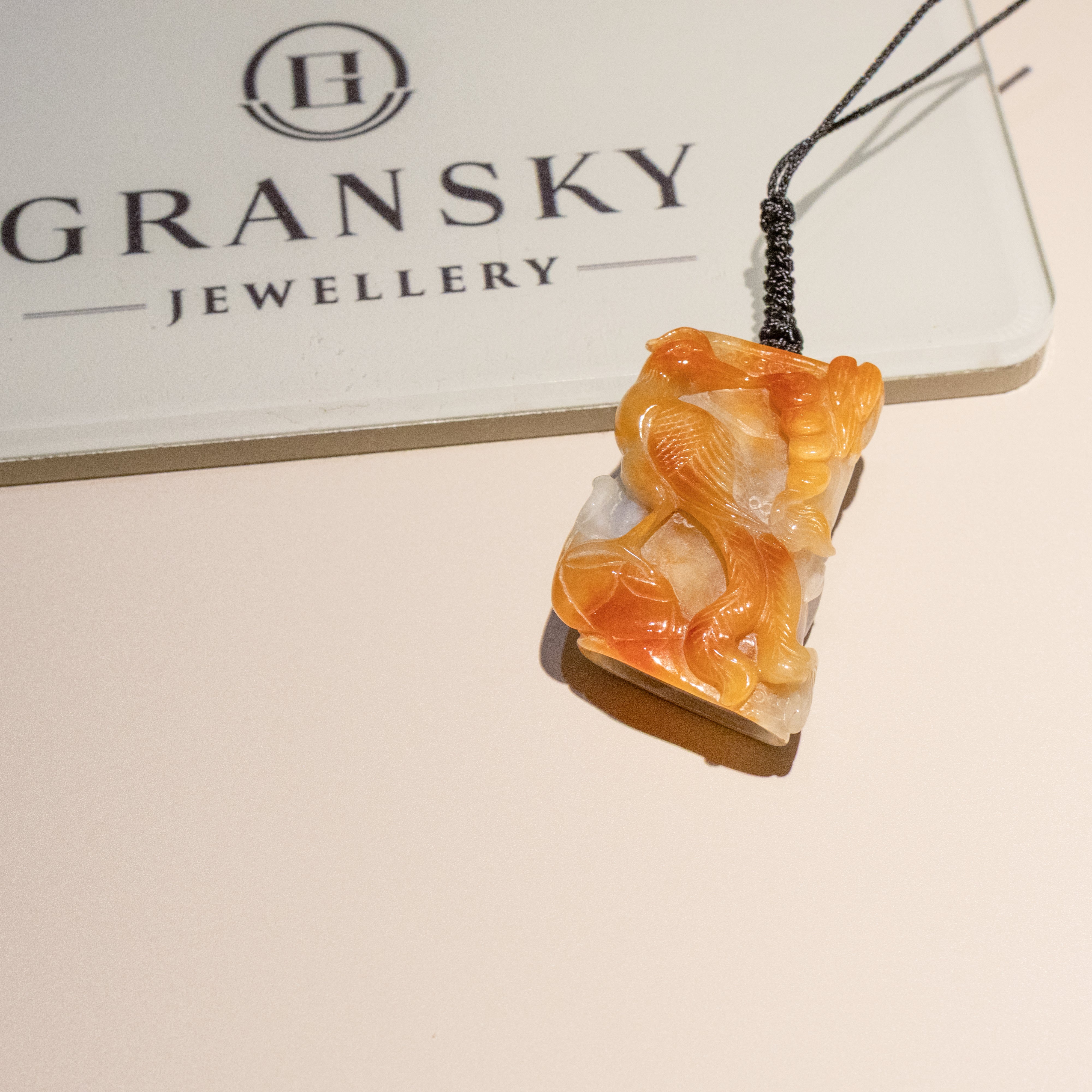 ✅This stunning jade pendant showcases natural untreated Burmese jadeite in vibrant orangy-brown hues, featuring an intricately carved dragon that exudes vitality and energy. The dragon, a powerful symbol of strength and good fortune in Chinese culture, adds a captivating touch to this unique piece. Perfect for everyday wear or special occasions, this exquisite pendant not only enhances your style but also embodies the rich tradition and artistry of jade craftsmanship.