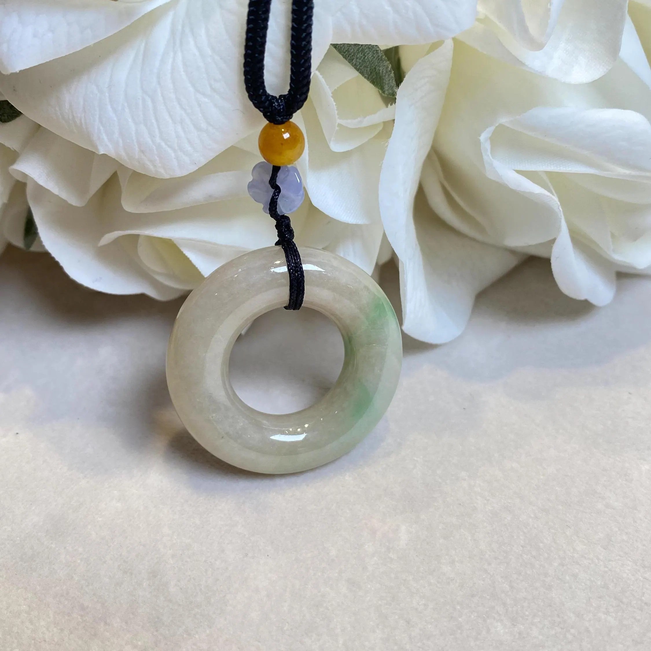 Natural Type A Jadeite Donut Pendant with Adjustable String - Ocean Green & Brown Hue