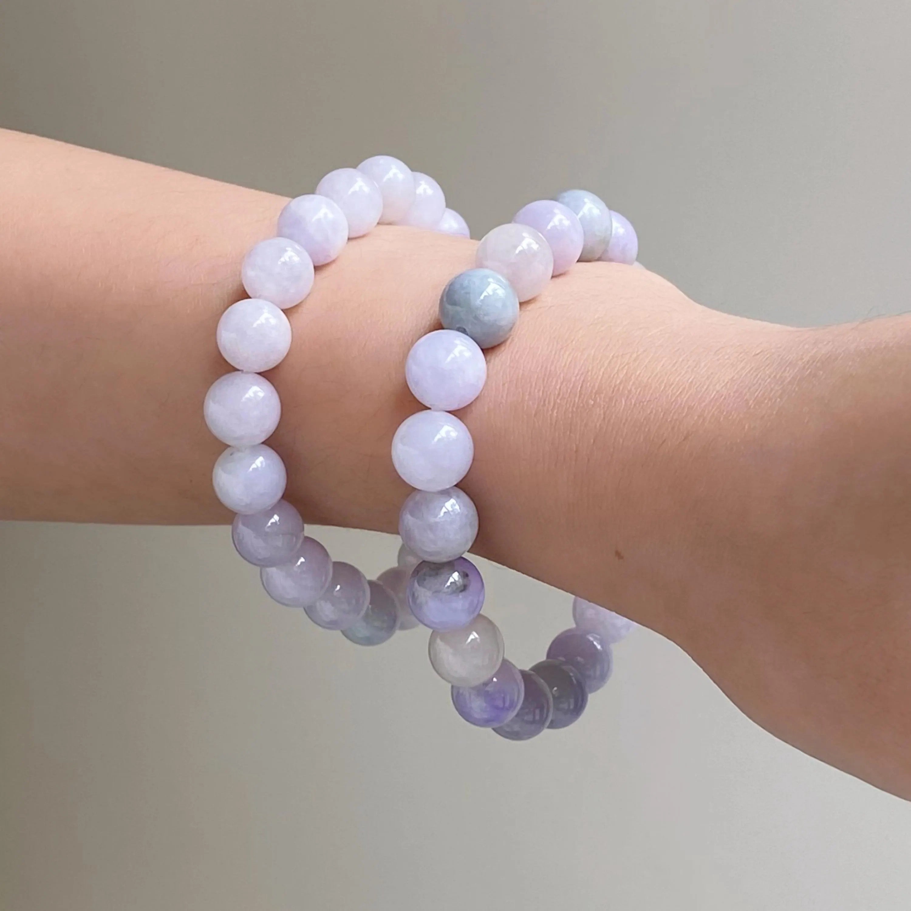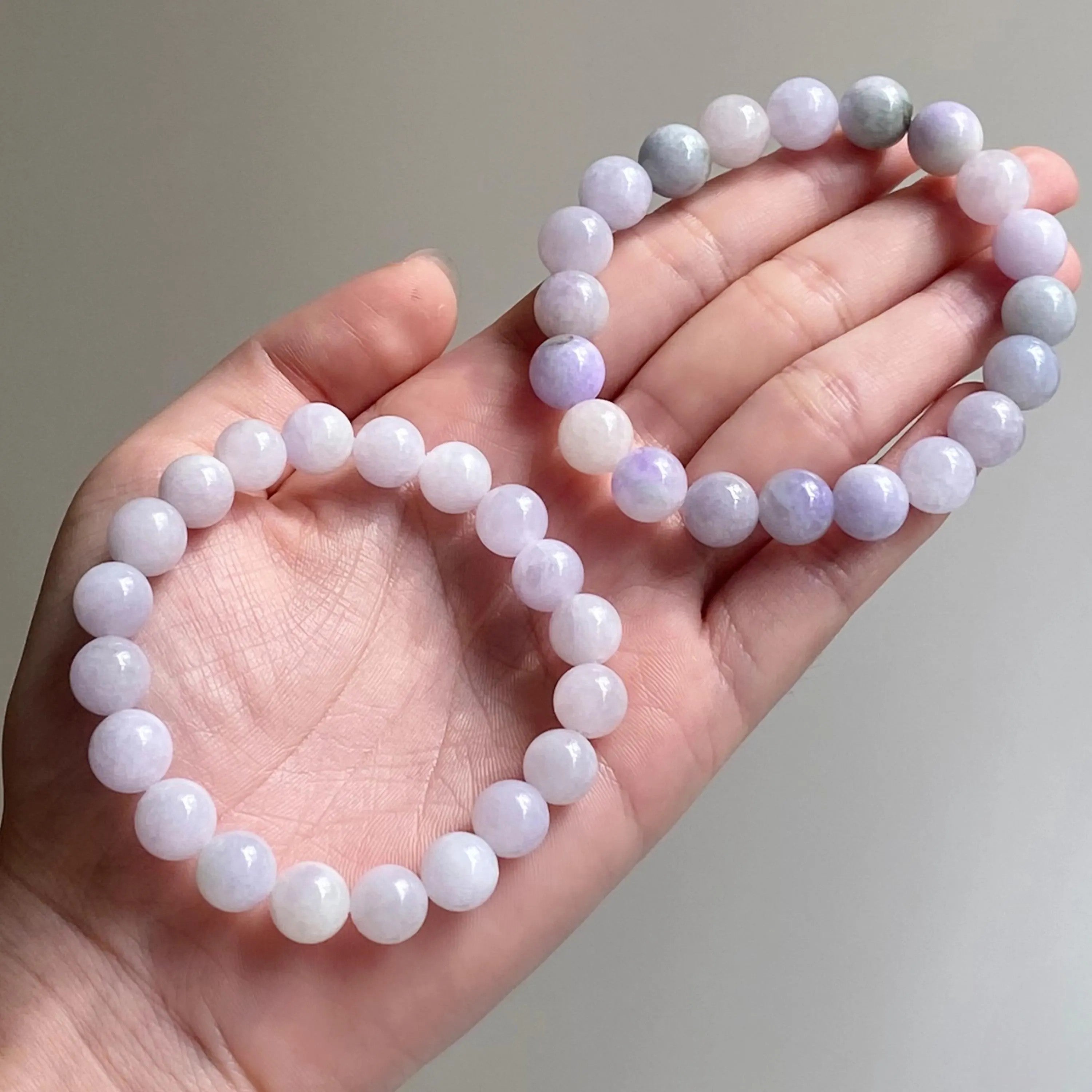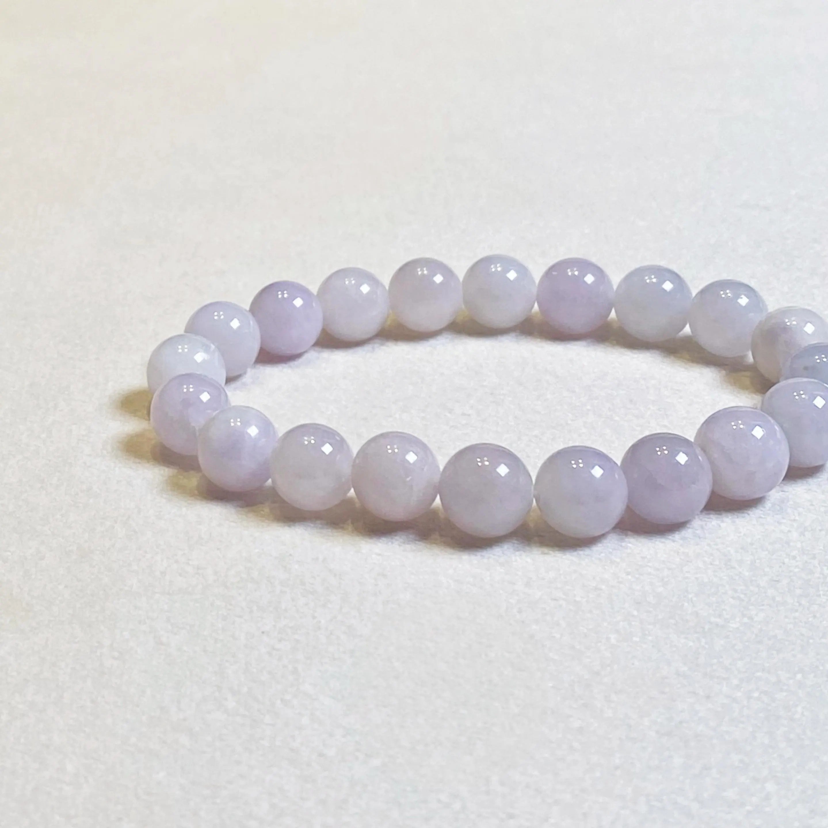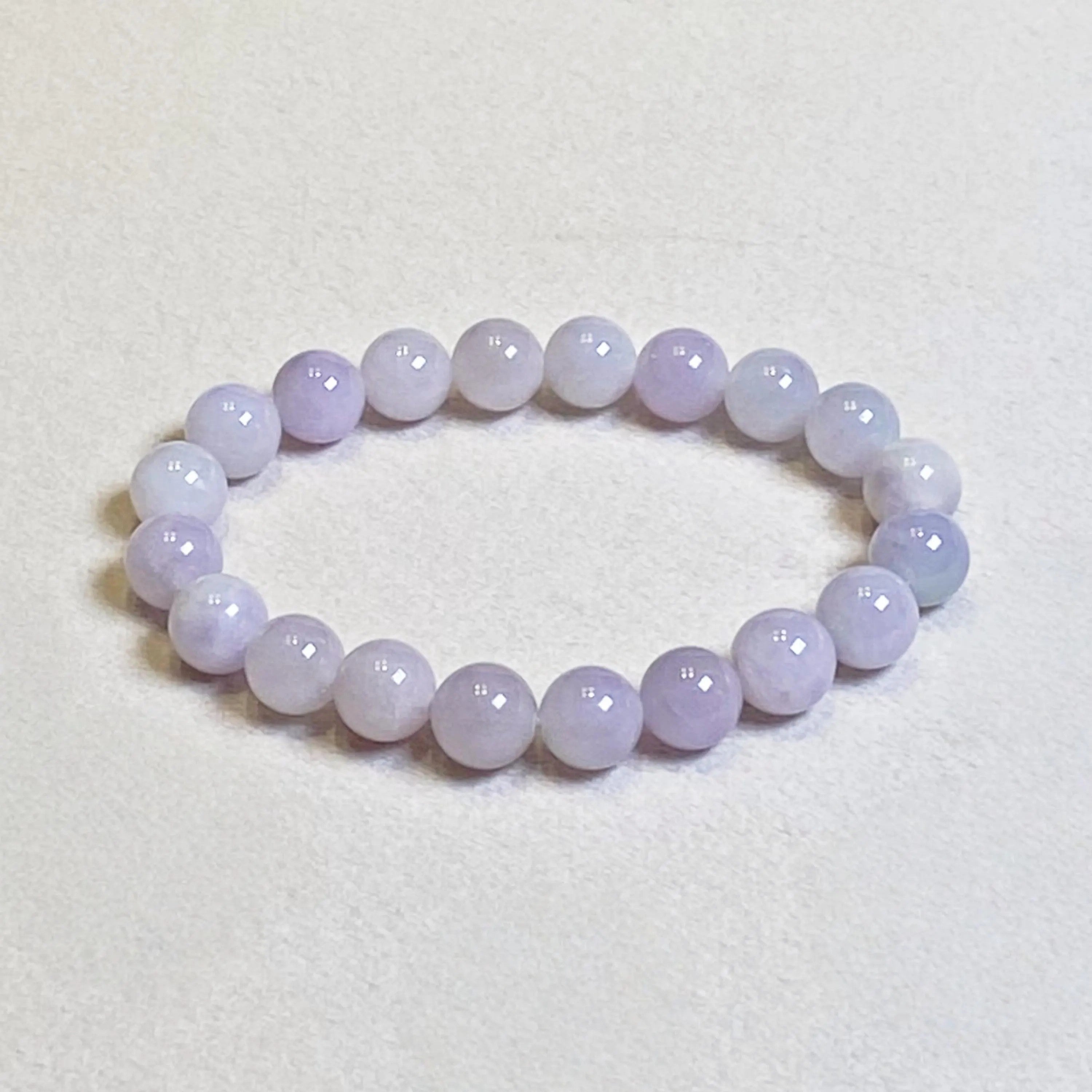Natural Lavender Purple Jadeite Bead Bracelet | Type A Burmese Jade | 17.5cm & 18.5cm Sizes