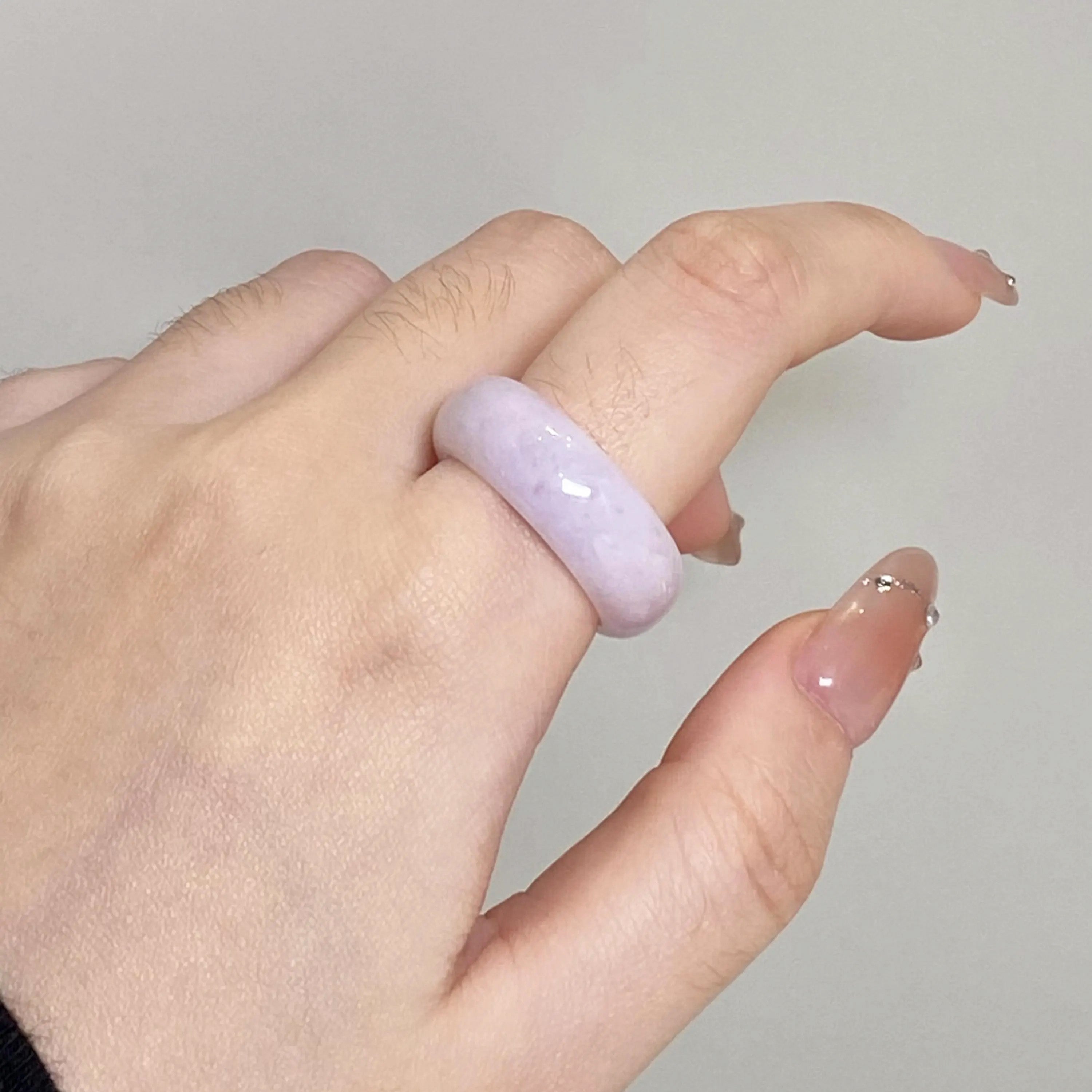 US 6.5 Gransky Minimalist Purple Jadeite Ring - Handmade Natural Jade