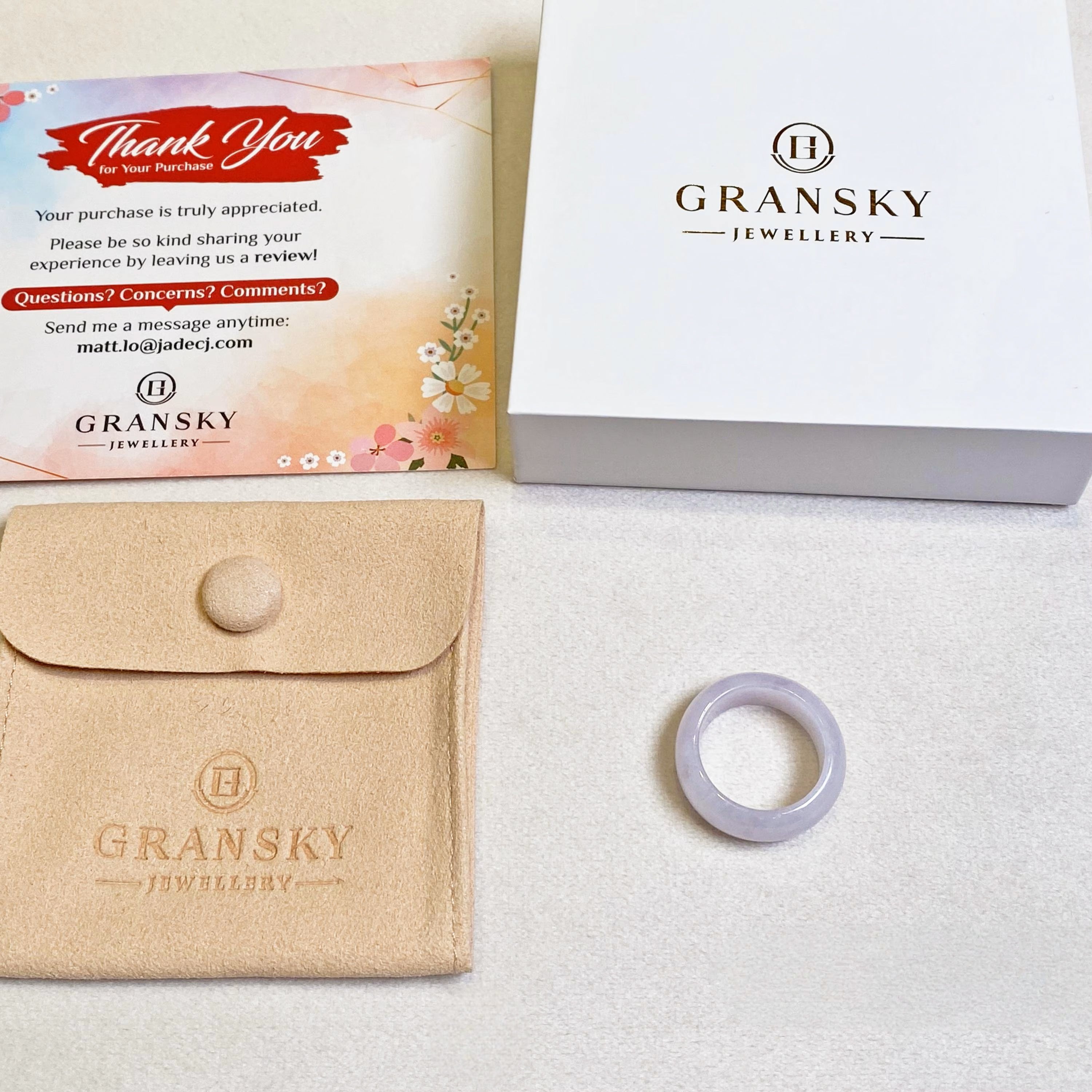 US8.5 Gransky Handmade Genuine Purple Jade Ring - Type A Genuine Jadeite