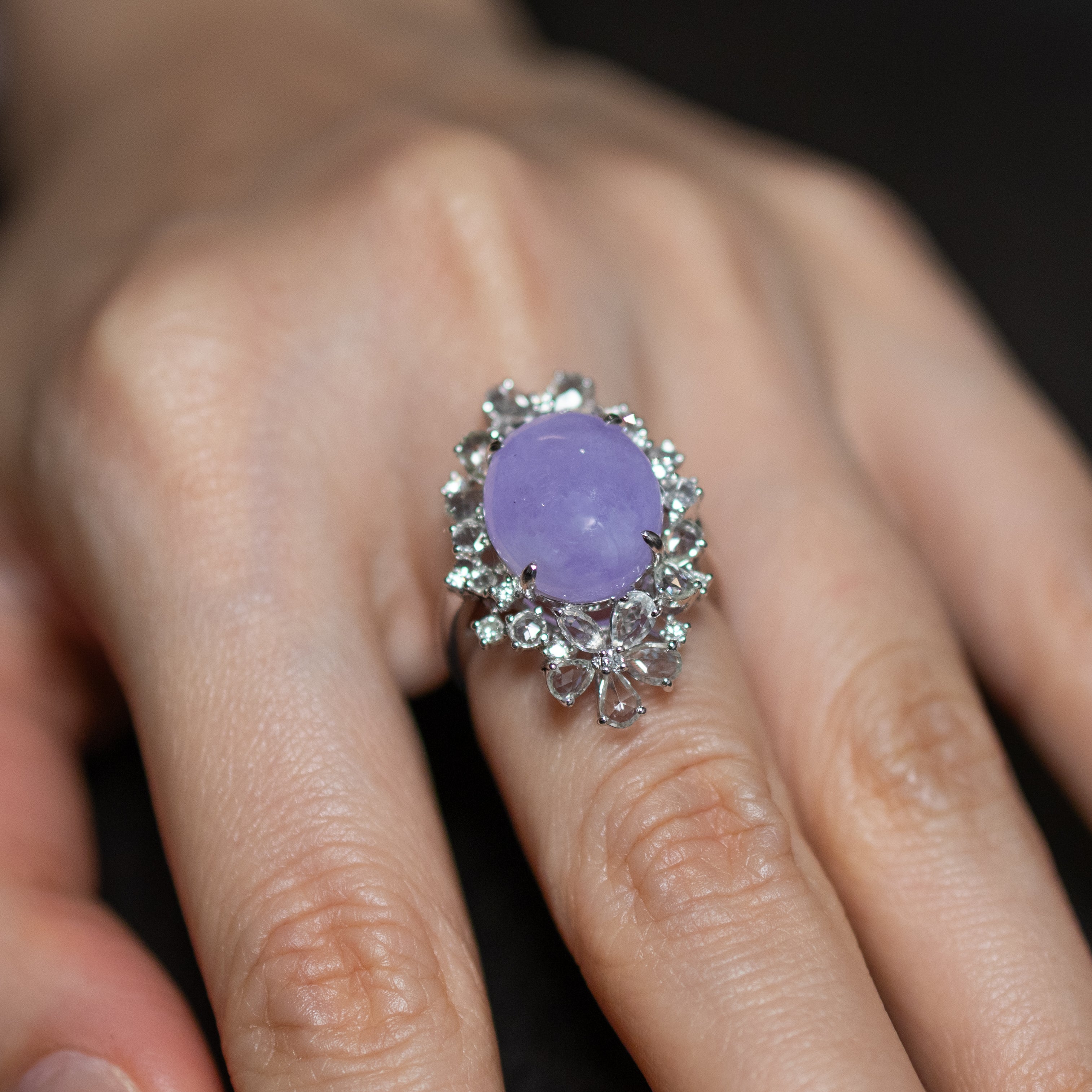 18K White Gold Diamonds Rare Purple Jade Ring - GRANSKY X KATHERINE Design